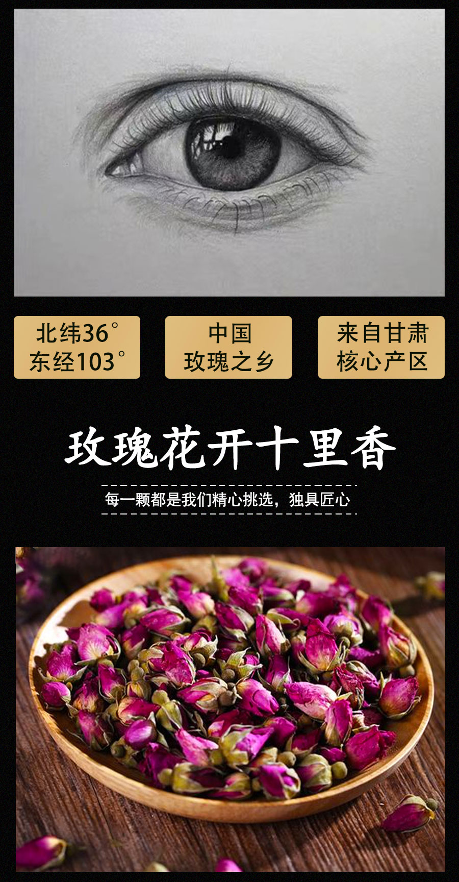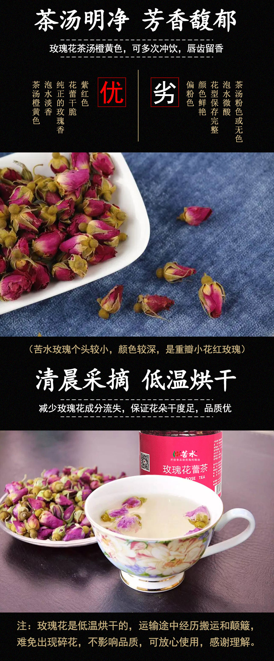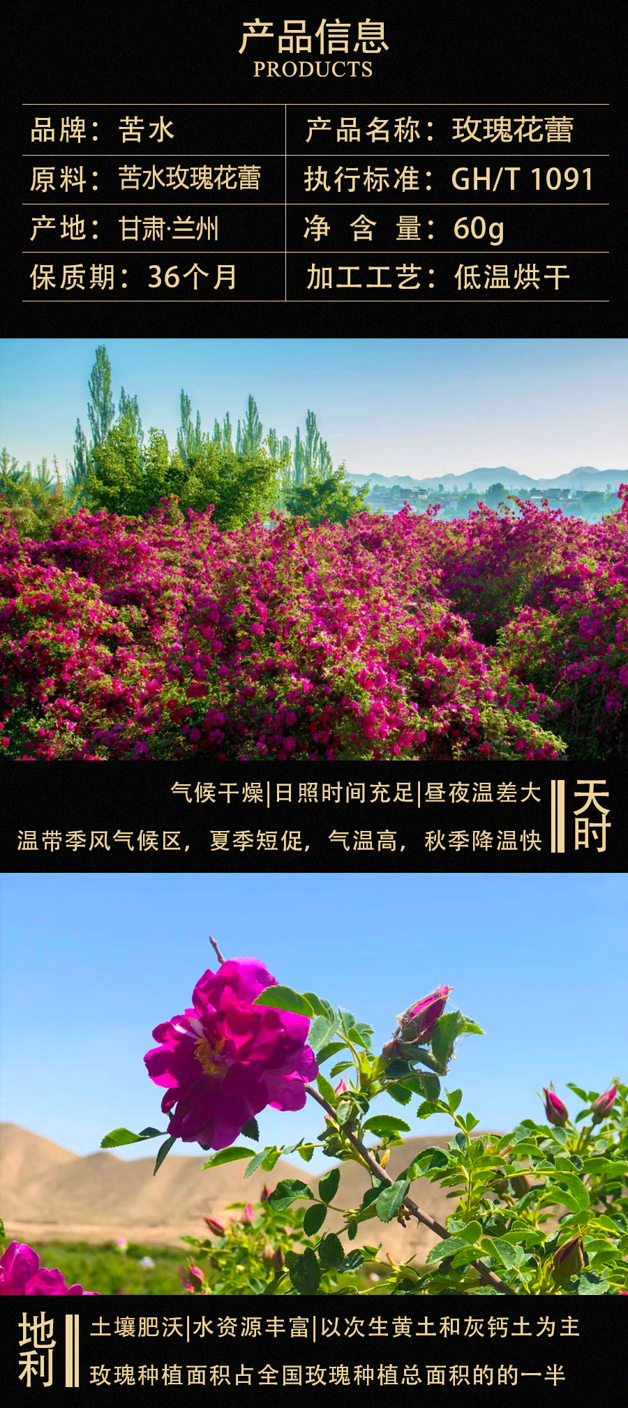 苦水牌烘干玫瑰花蕾60g甘肃苦水核心产区玫瑰养生泡水花草茶