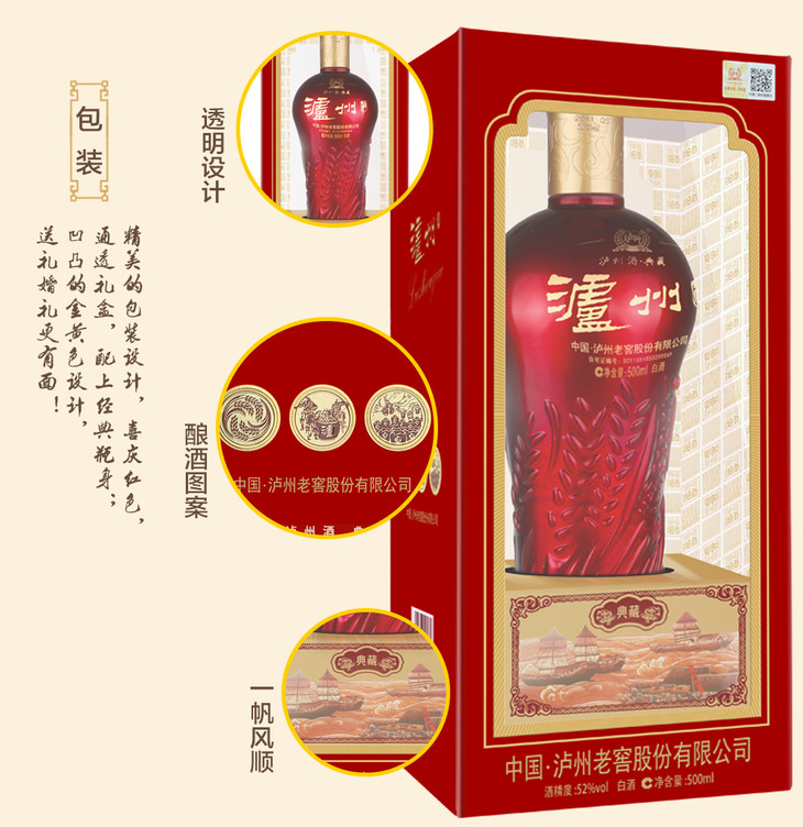 【推荐】泸州老窖股份 泸州酒典藏 52度 500ml*6瓶