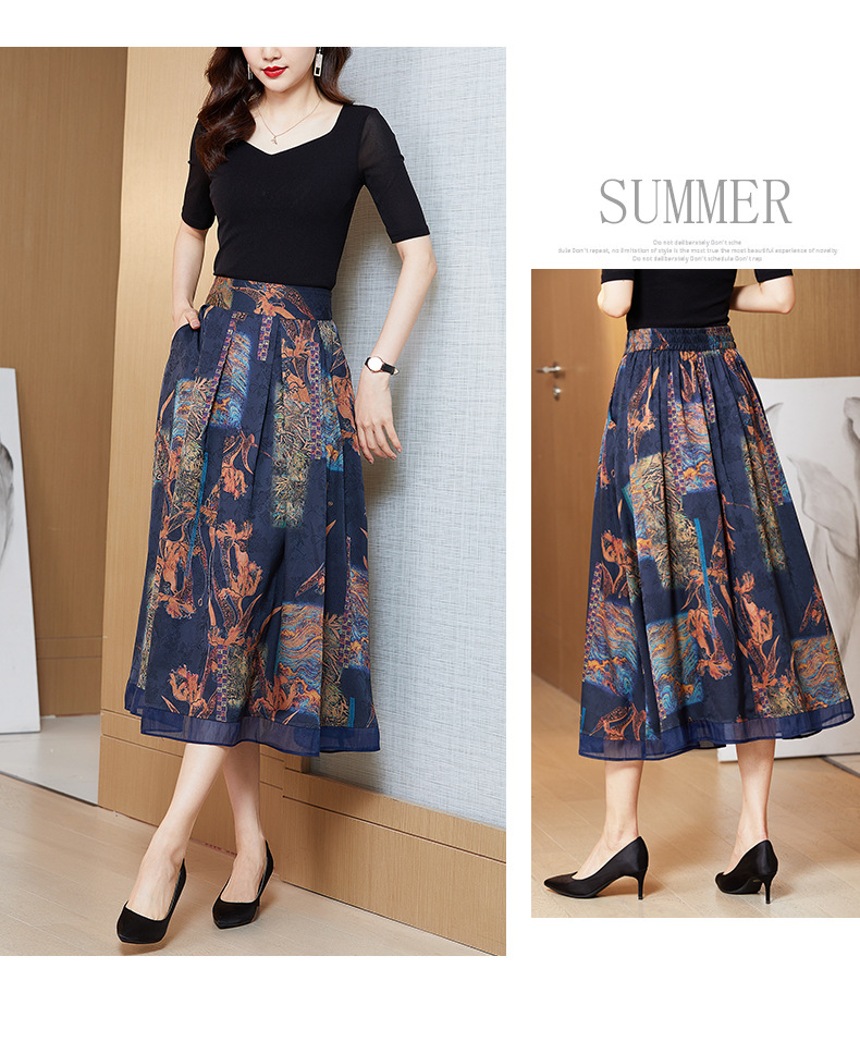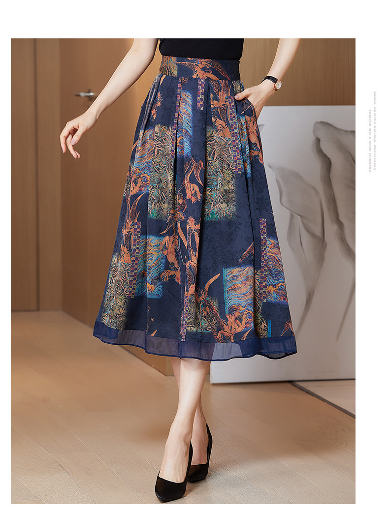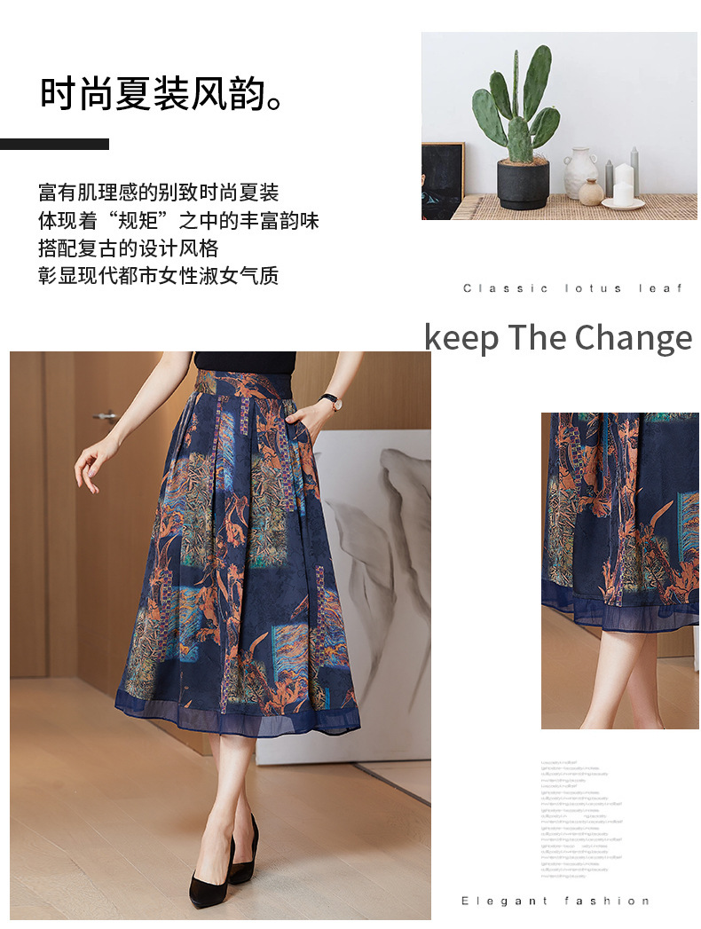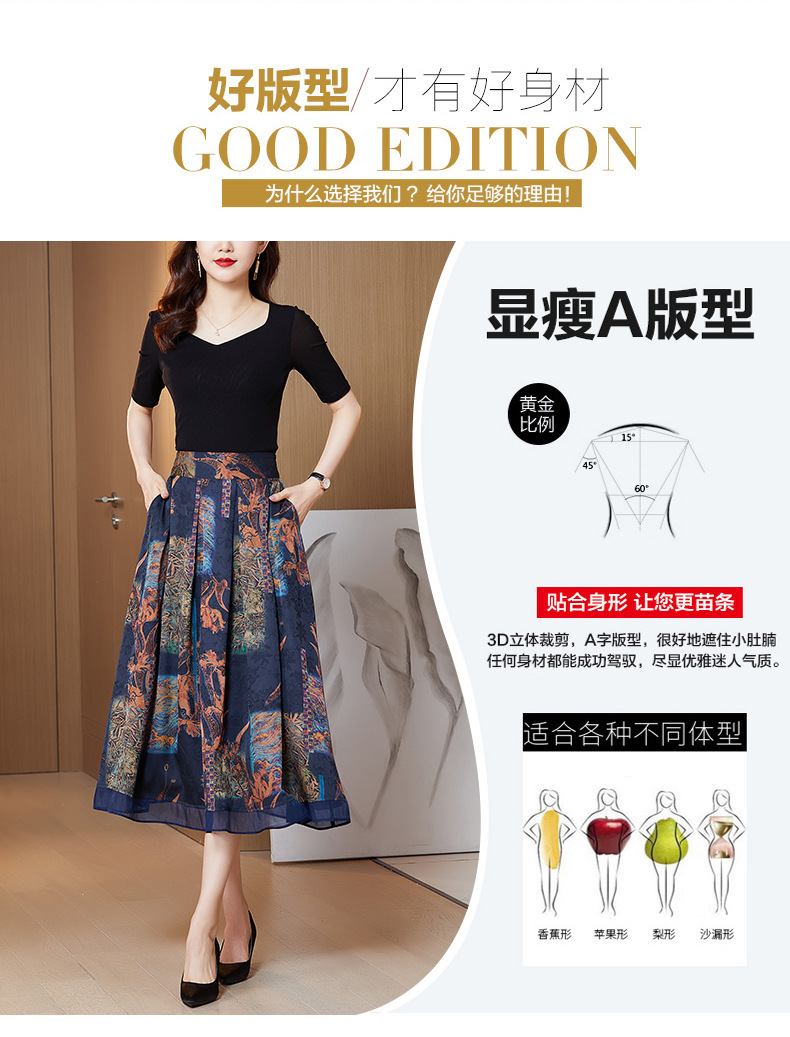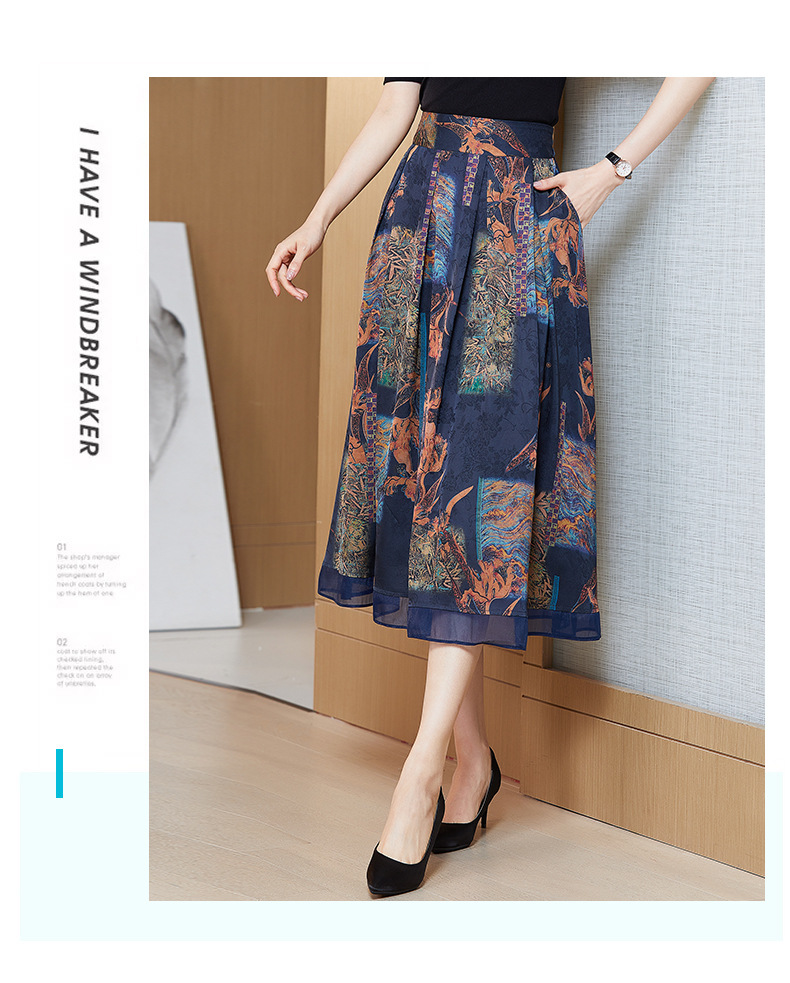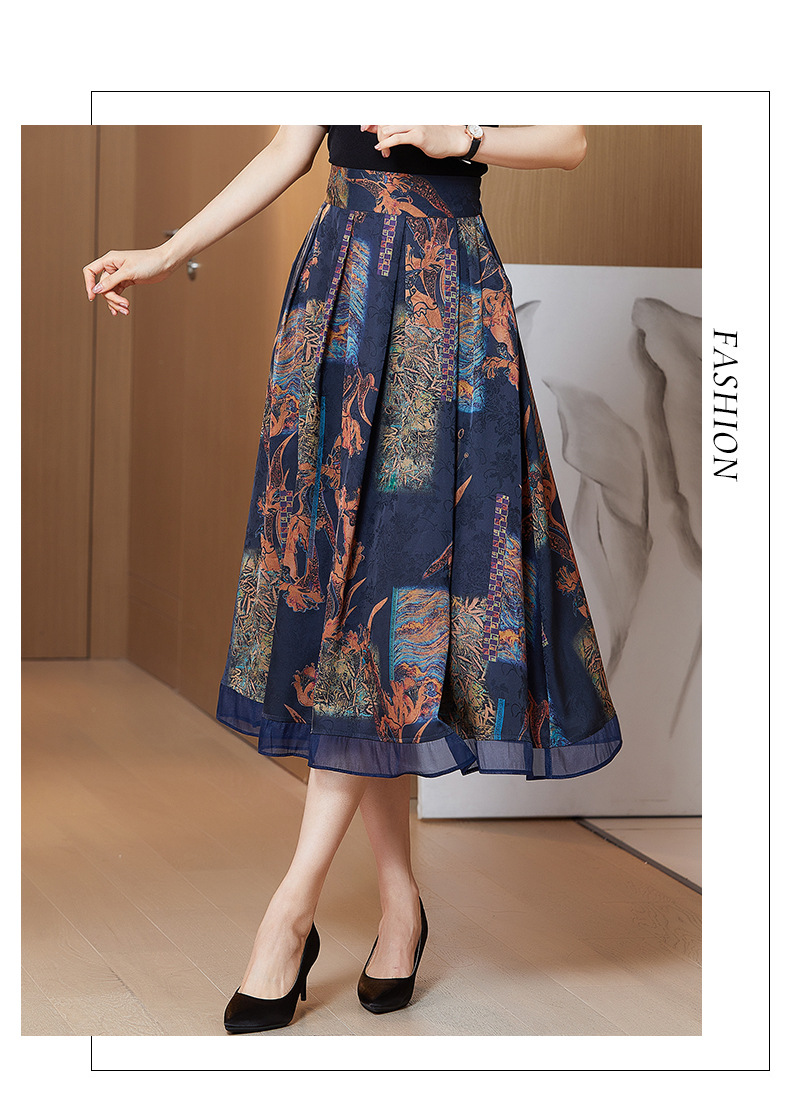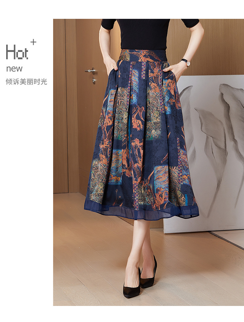 春季新款,花萝仿真丝香云纱提花中长款高腰A字半身裙KQL-422H1210