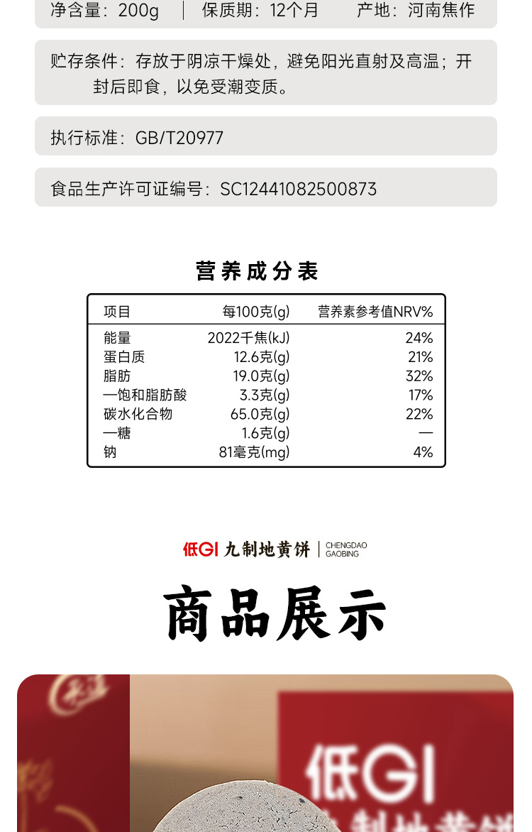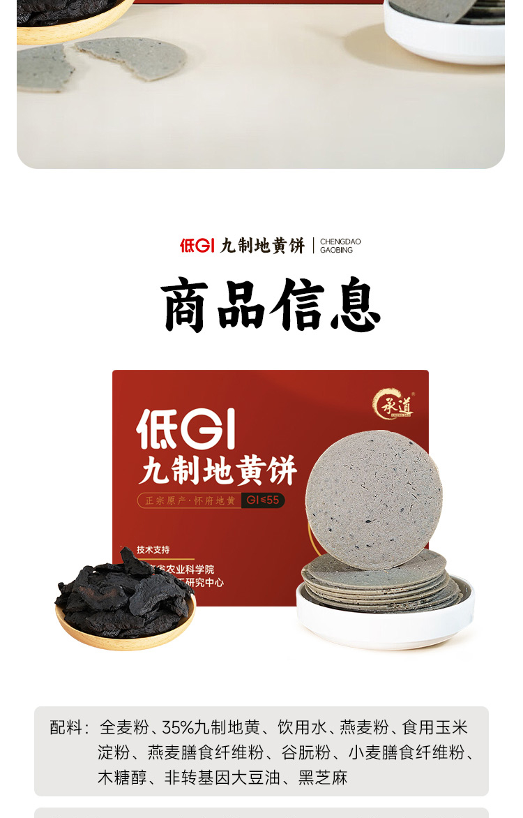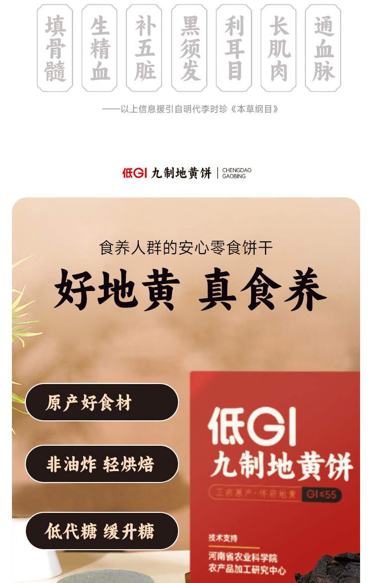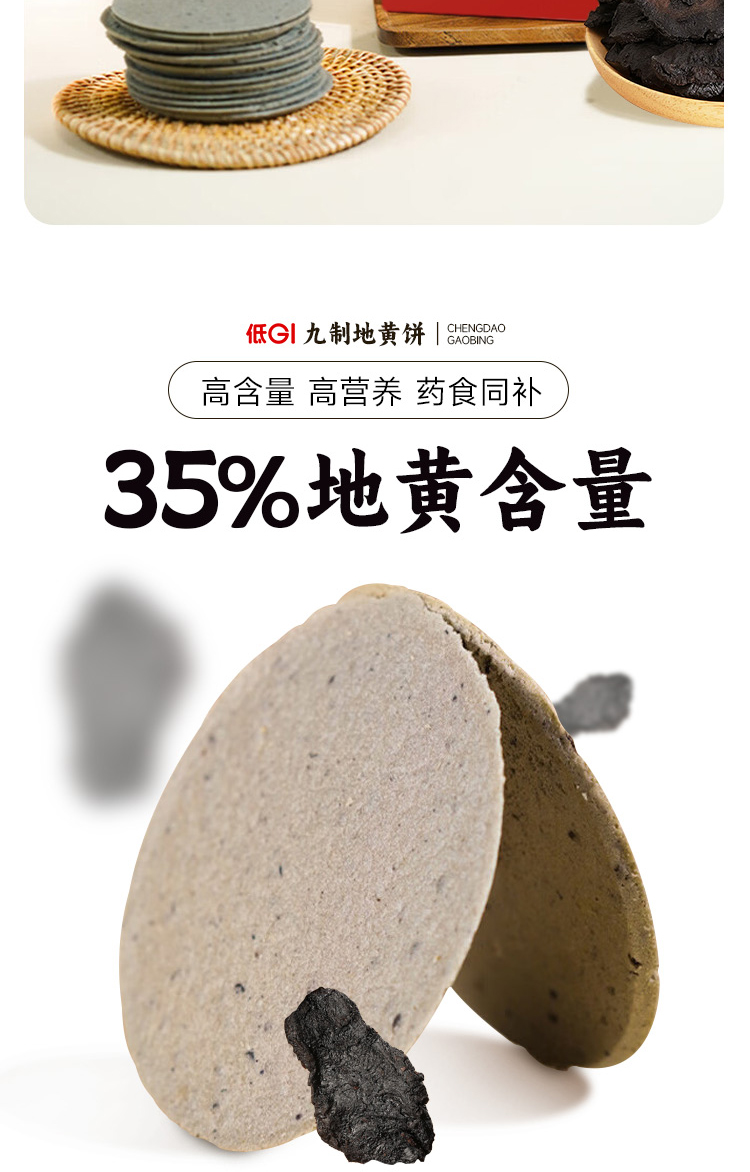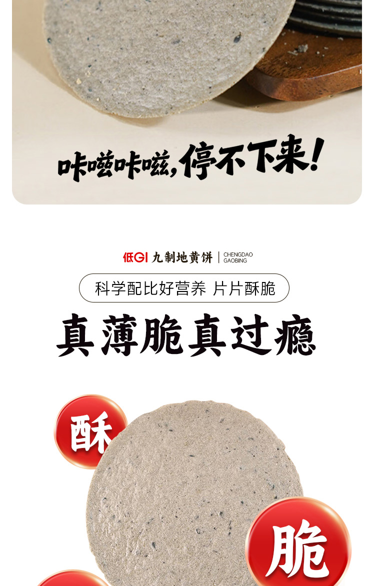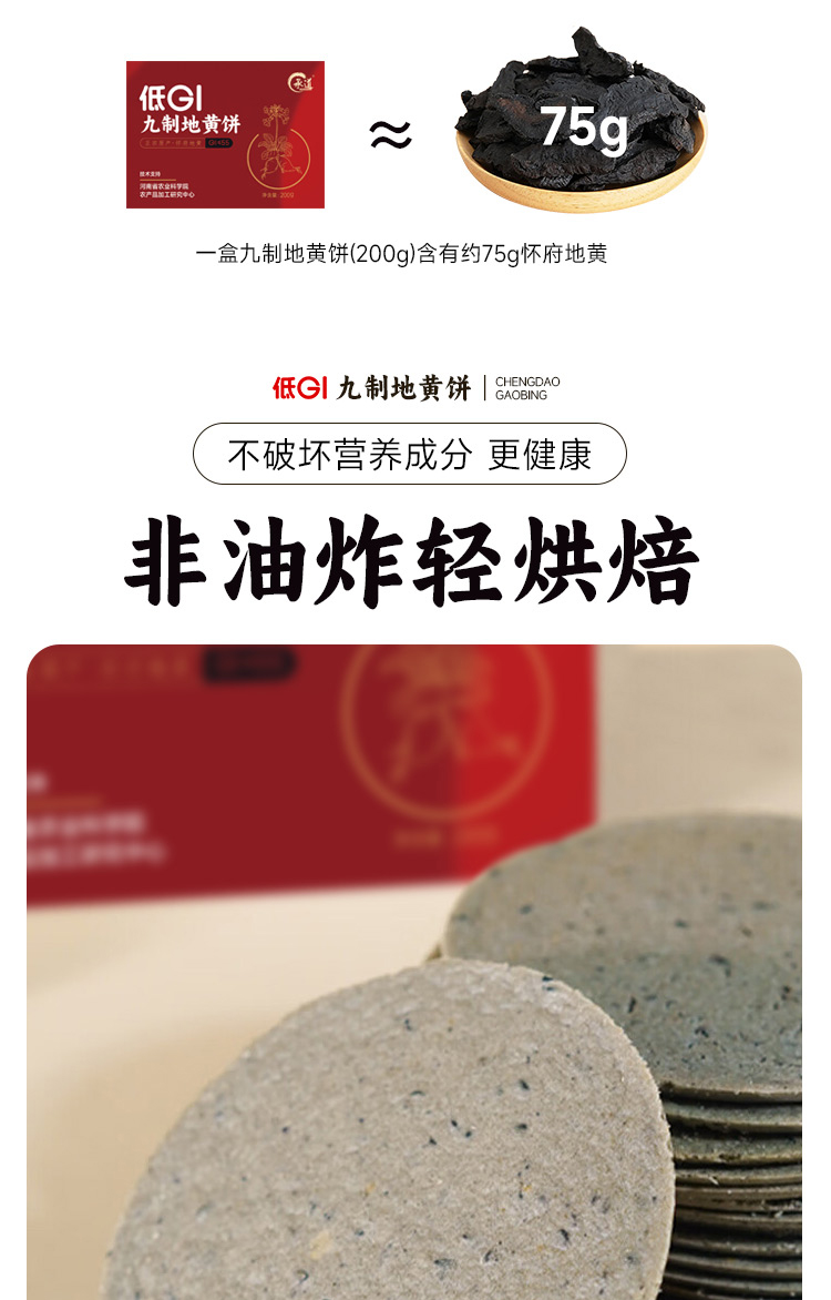 低GI九制地黄饼 甄选健康食材饼干 焦作特产休闲小零食 酥脆轻薄配料干净