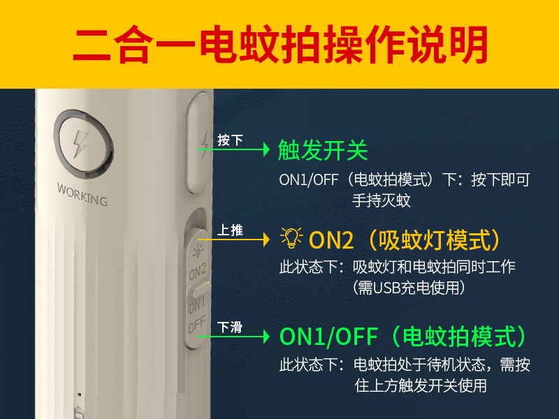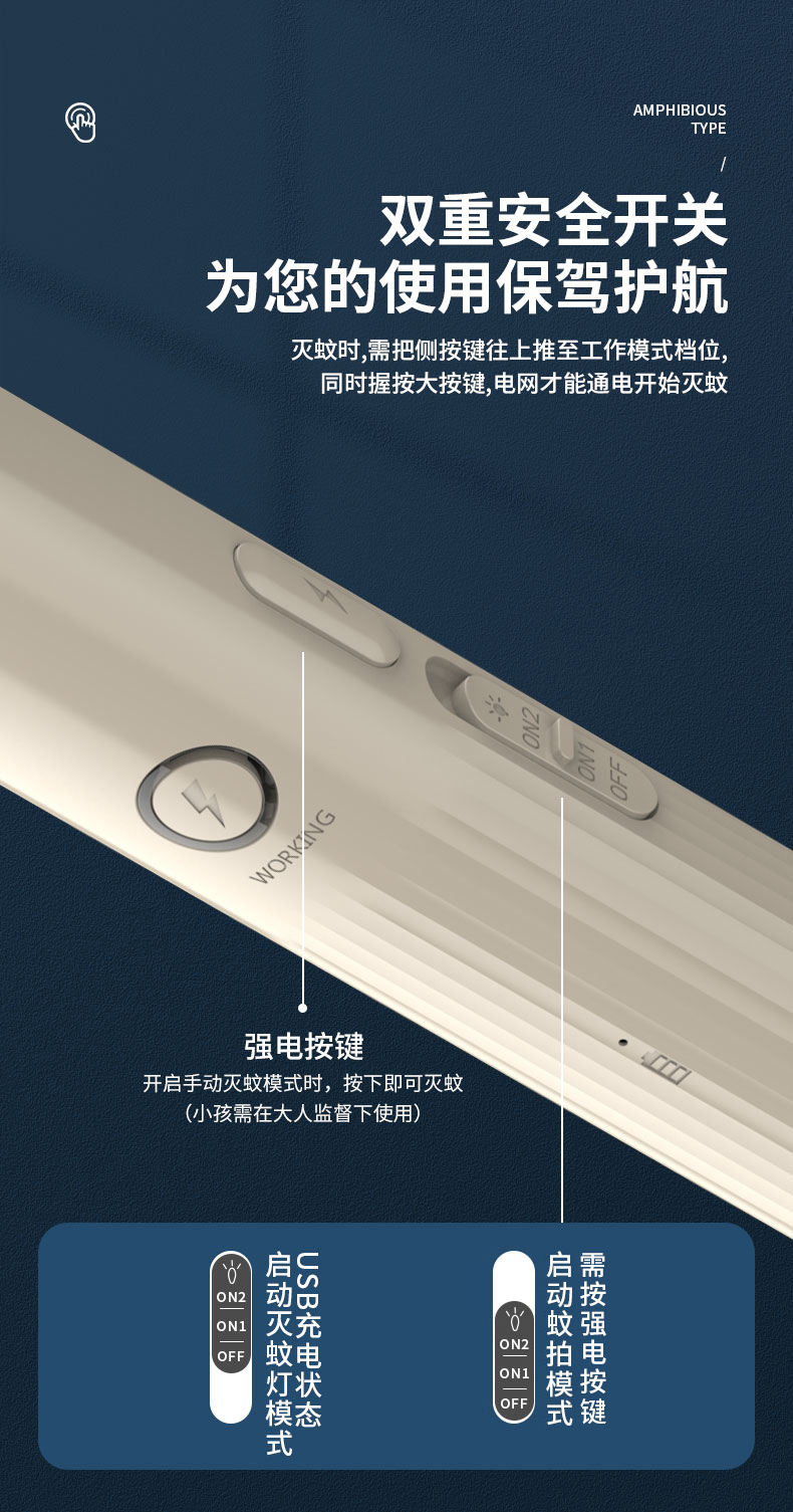 【既是电蚊拍,也是灭蚊灯】二合一电蚊拍,USB充电,比蚊香、驱蚊液好用10000倍,高效的2合1灭蚊神器,双重杀伤力,灭蚊一击即中夜晚终于可以睡个好觉!