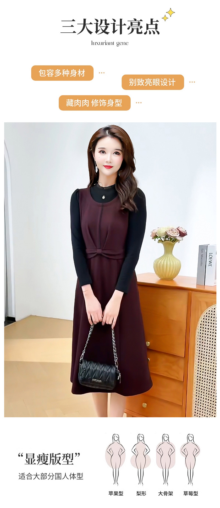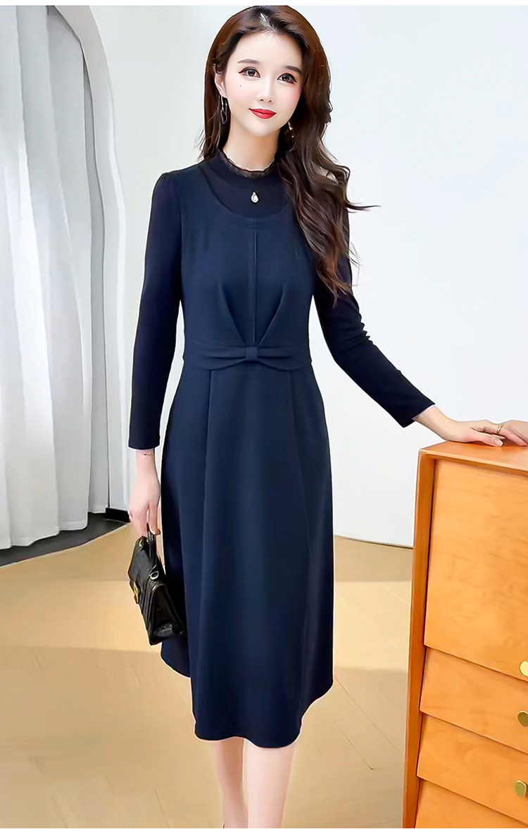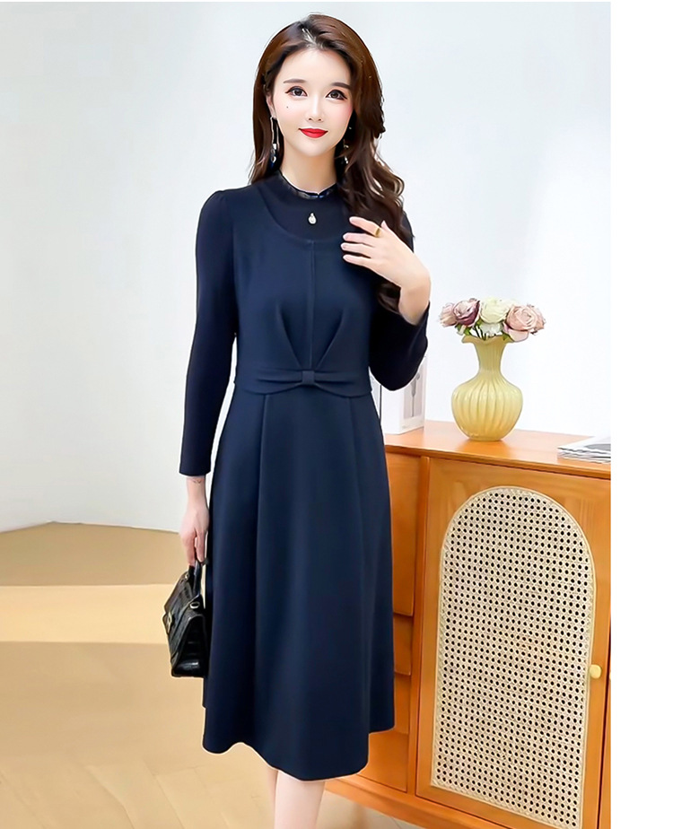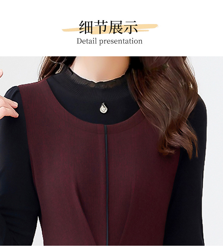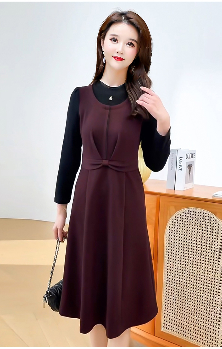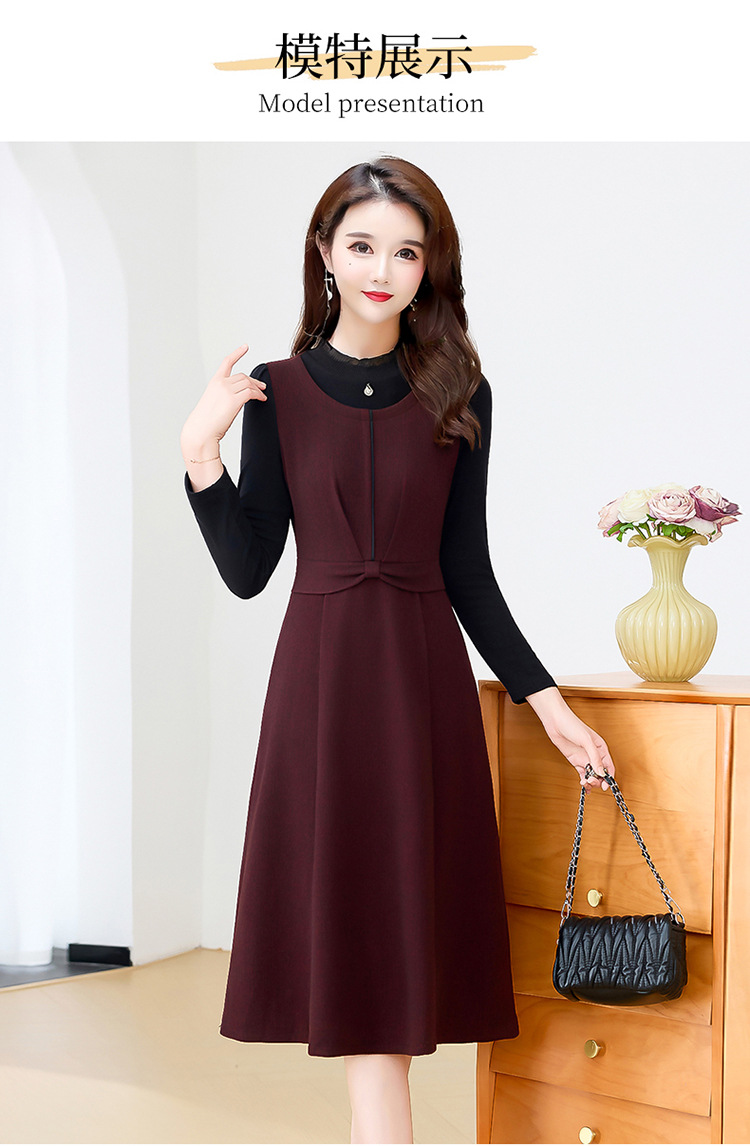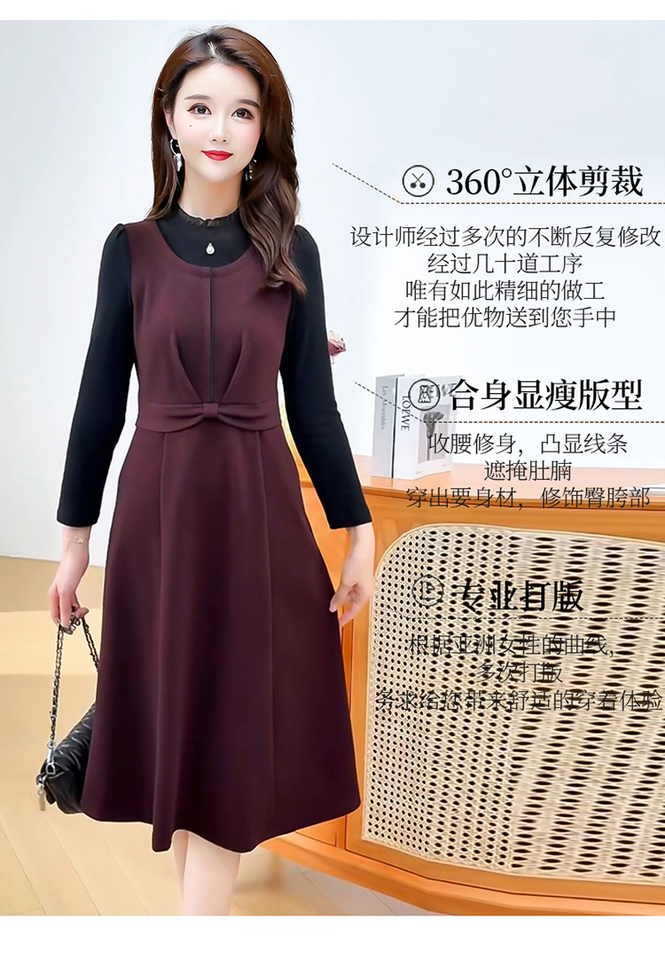QYM 25S28-Y假两件长袖连衣裙妈妈装中长款A字裙 商品图4