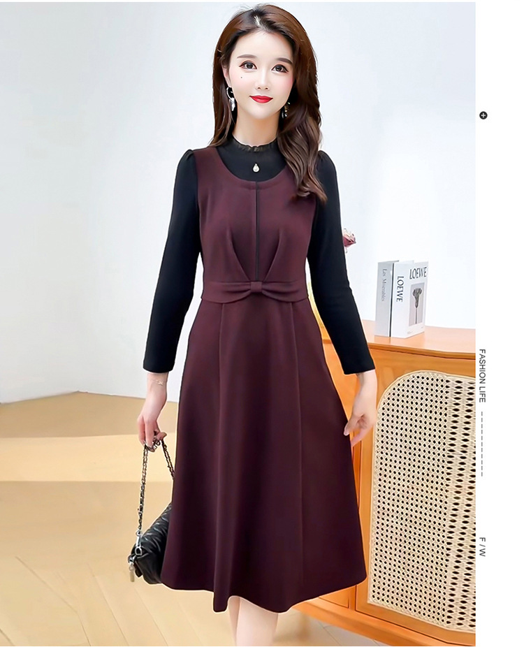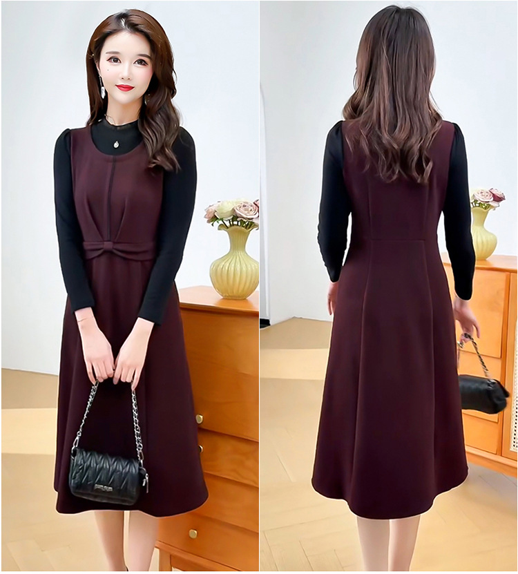 QYM 25S28-Y假两件长袖连衣裙妈妈装中长款A字裙 商品图1