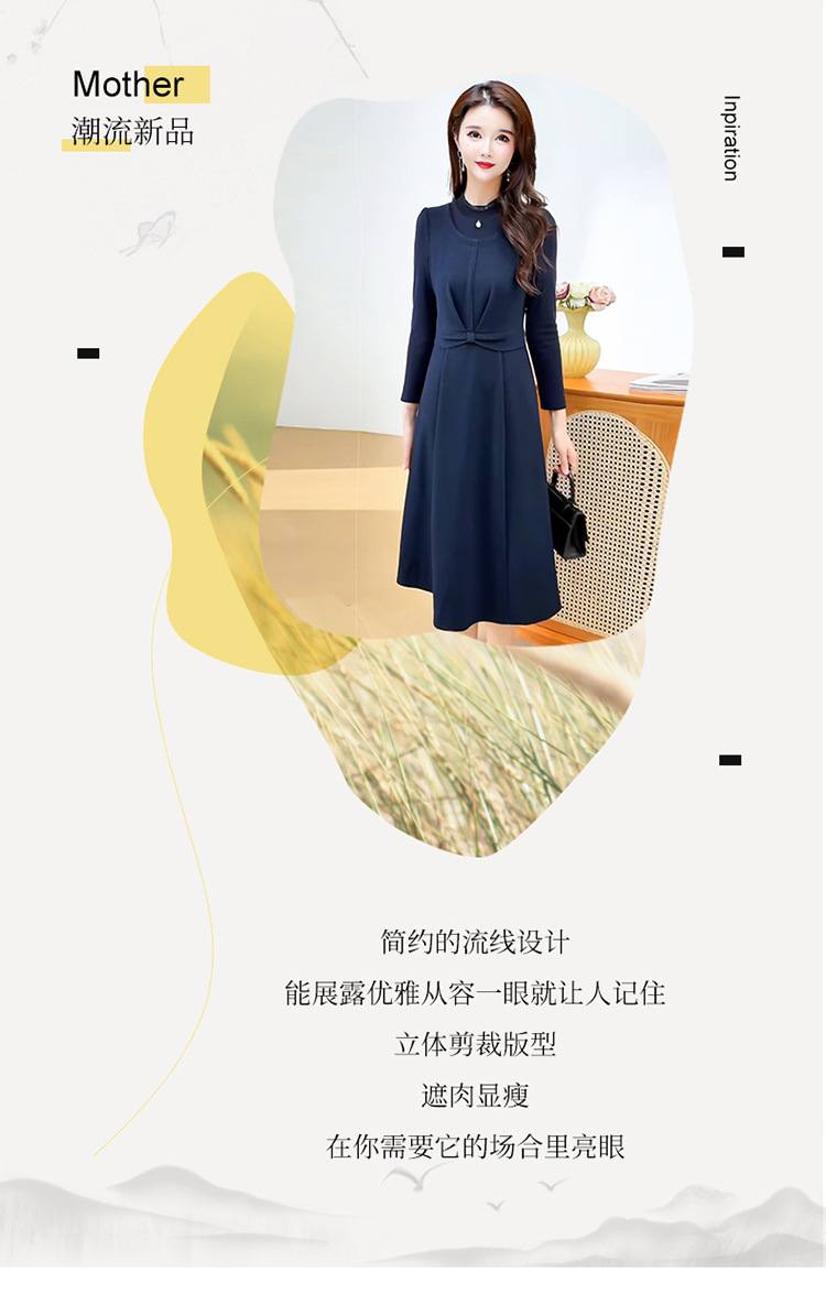 QYM 25S28-Y假两件长袖连衣裙妈妈装中长款A字裙 商品图3