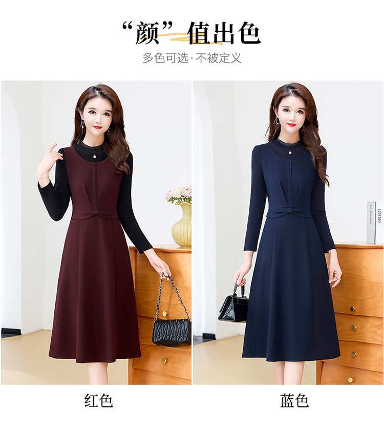 QYM 25S28-Y假两件长袖连衣裙妈妈装中长款A字裙 商品图2