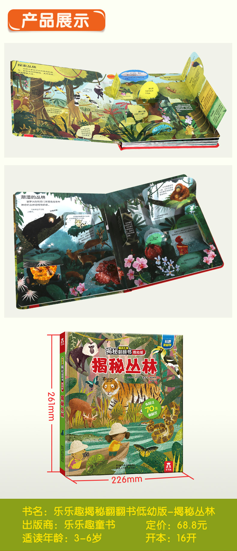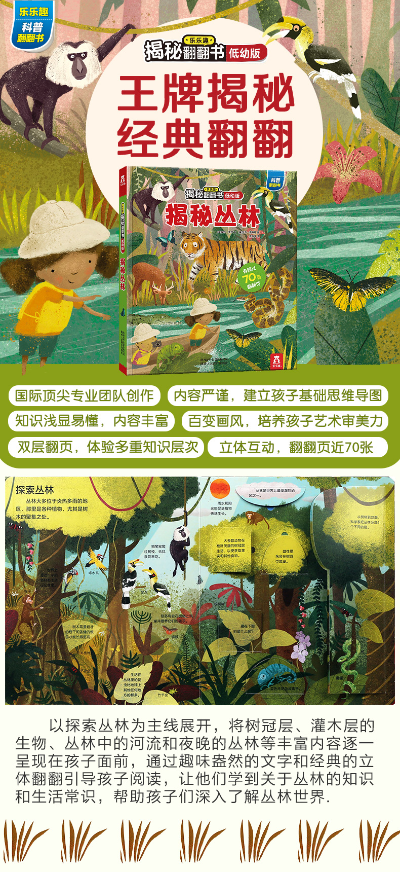 乐乐趣揭秘翻翻书低幼版第二辑(4册) 揭秘丛林 少儿