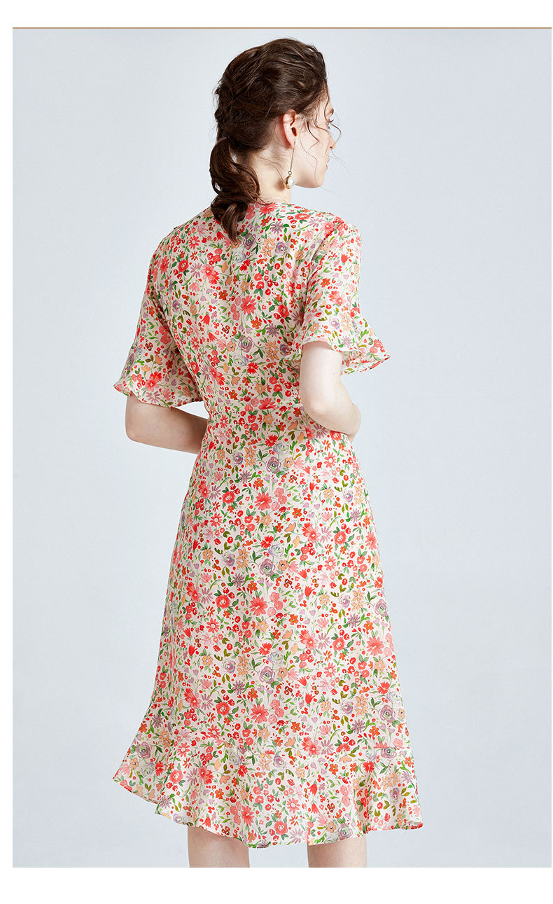 「高货kbnq」全新升级【铂金会员477/天猫639/差价162】(04309)洛诗琳法式桑蚕丝连衣裙2025夏季修身显瘦真丝碎花A字裙