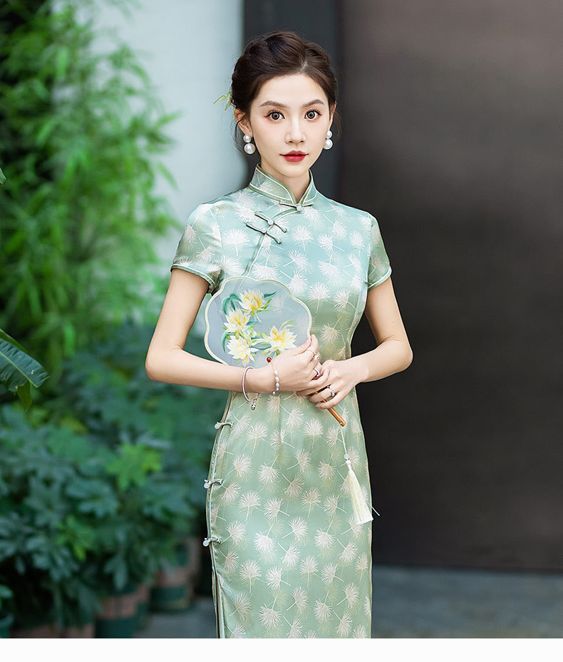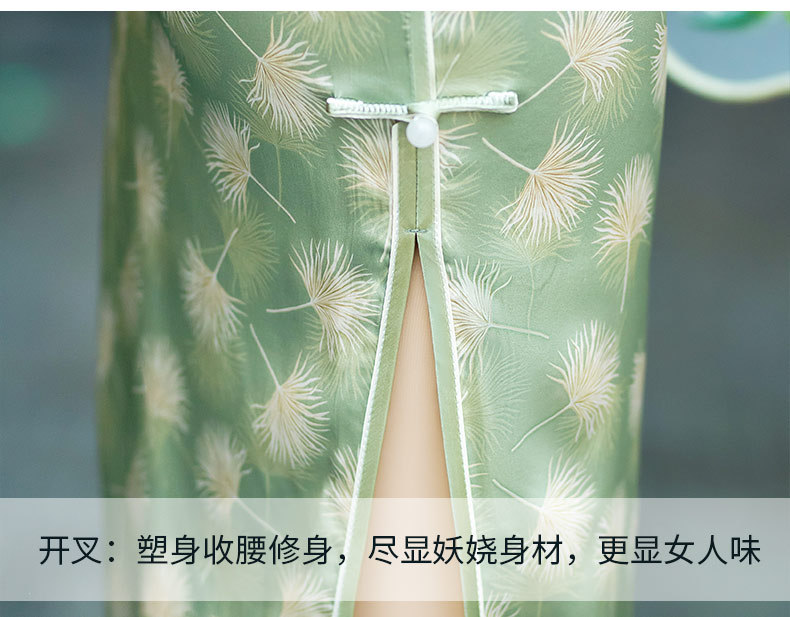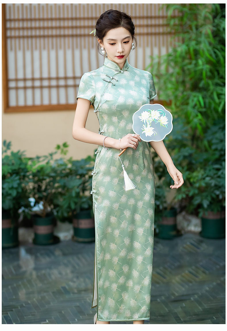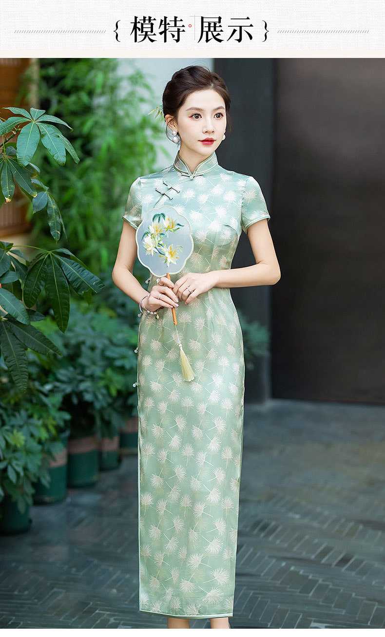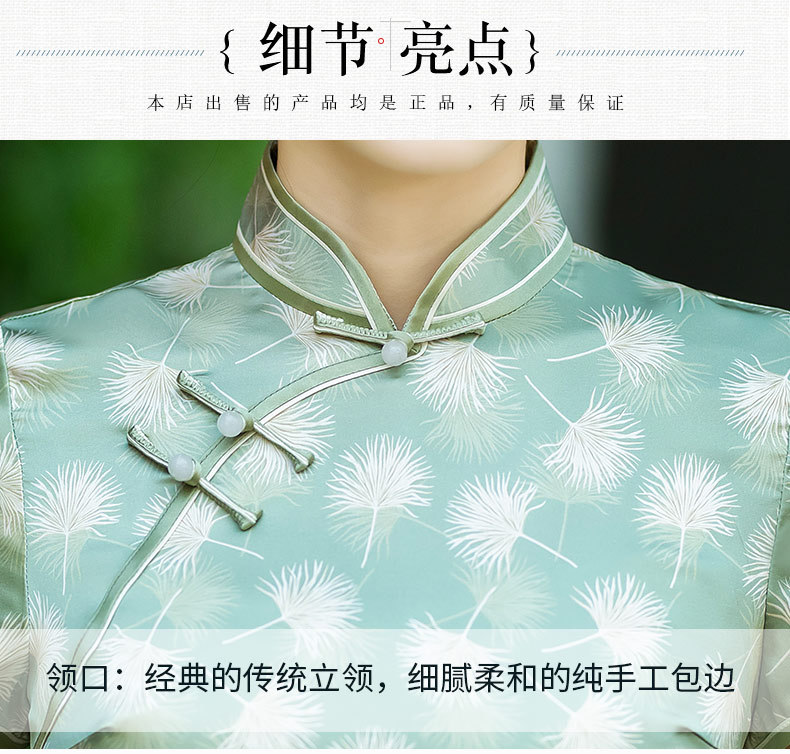 WX-春季新款真丝旗袍中式桑蚕丝连衣裙手工缝制宴席日常可穿