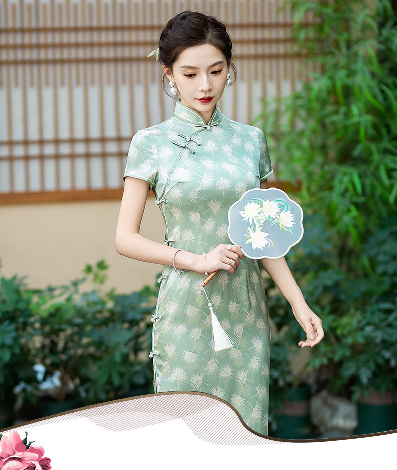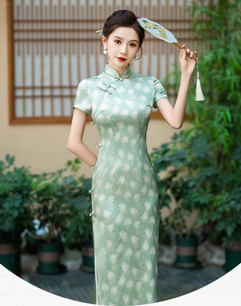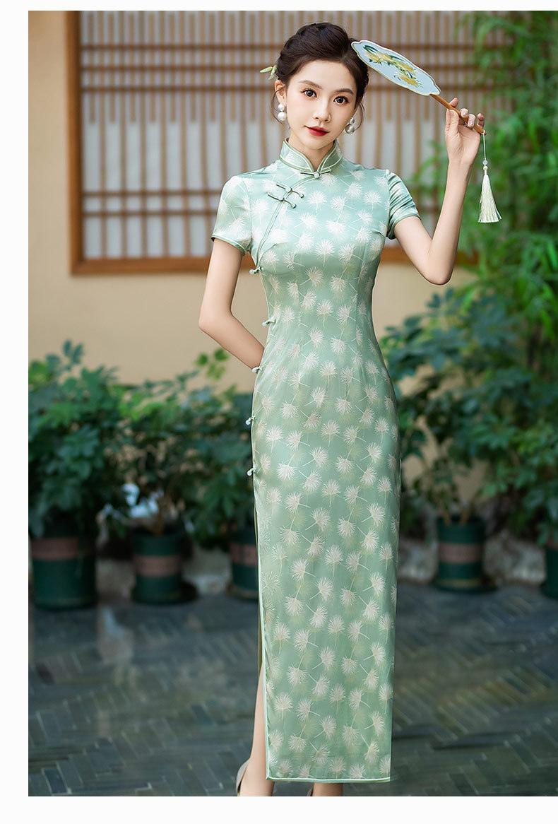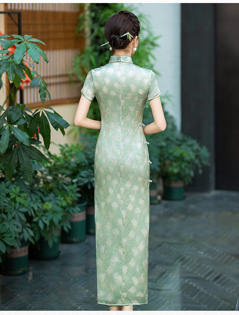 WX-春季新款真丝旗袍中式桑蚕丝连衣裙手工缝制宴席日常可穿