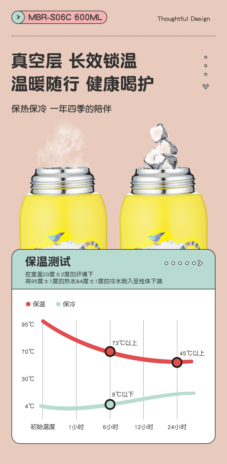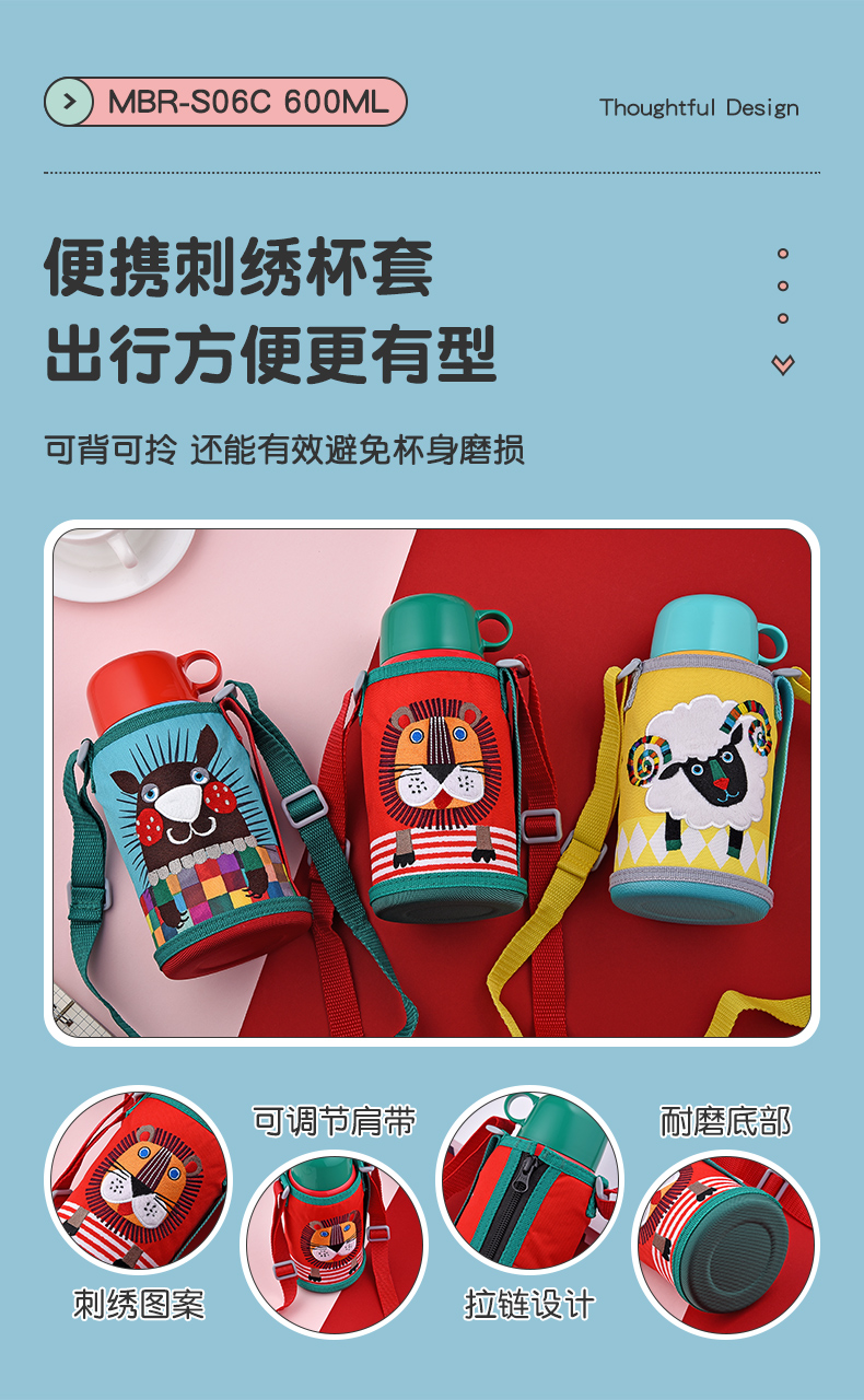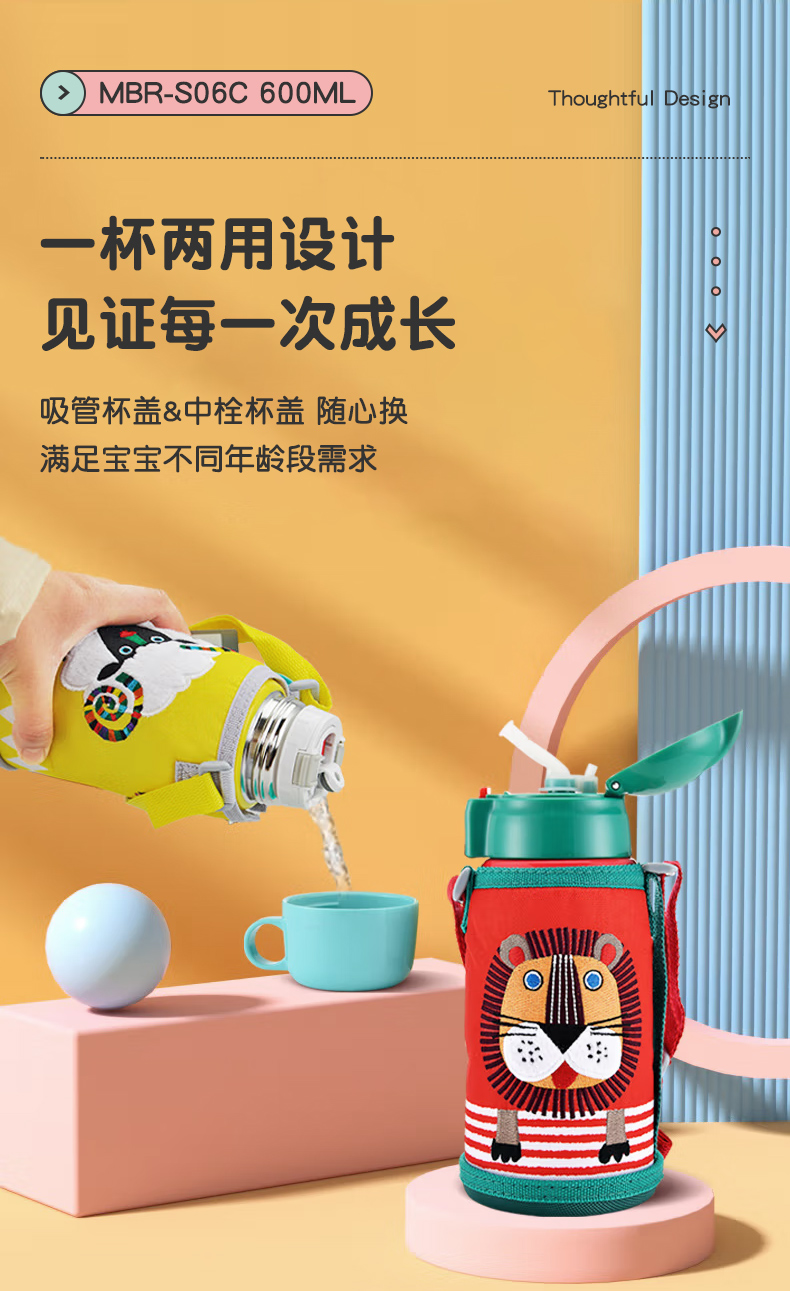 TIGER/虎牌 儿童保温杯MBR-S06C保冷便携吸管杯600ML两用小学生可爱