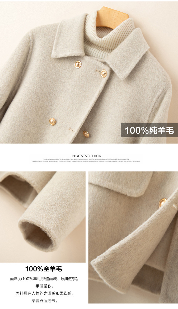 「自」全新升级【铂金会员413/天猫559/差价146】(20214)洛诗琳小香风翻领双面羊毛外套2025秋冬小个子羊毛呢短外套