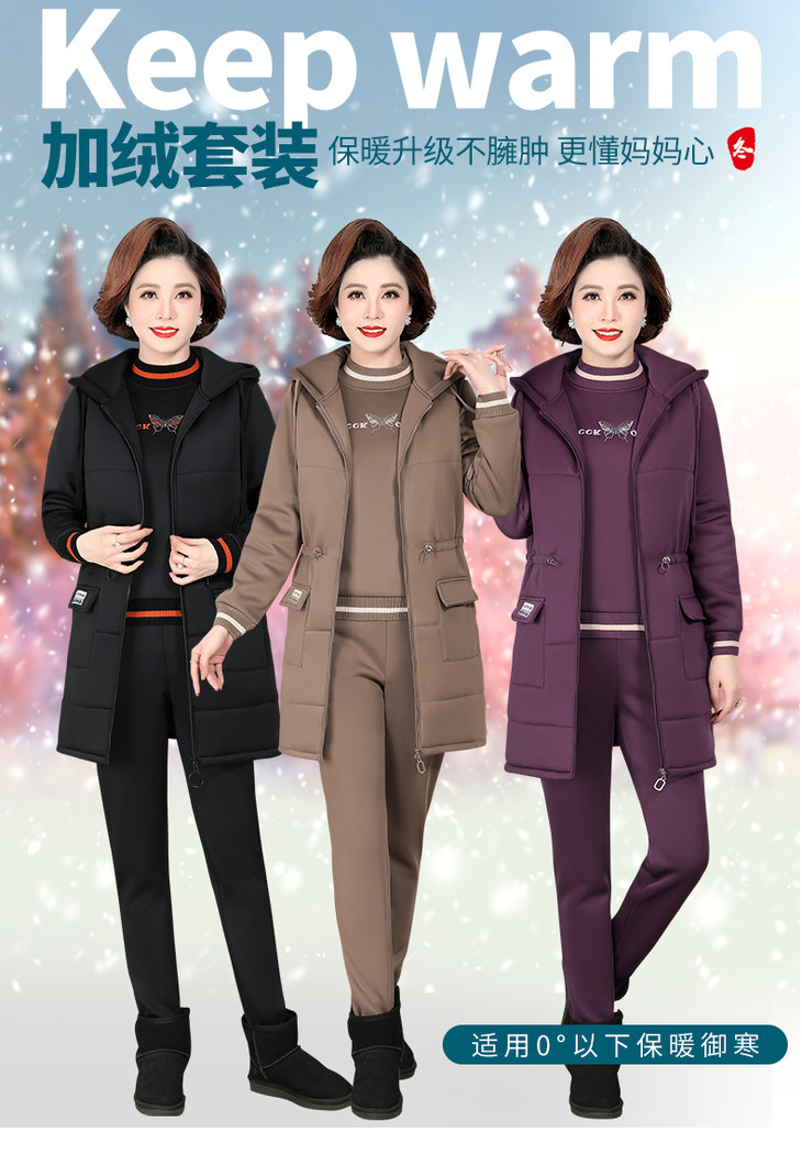 SP-552586冬新款时尚宽松休闲三件套加绒运动套装