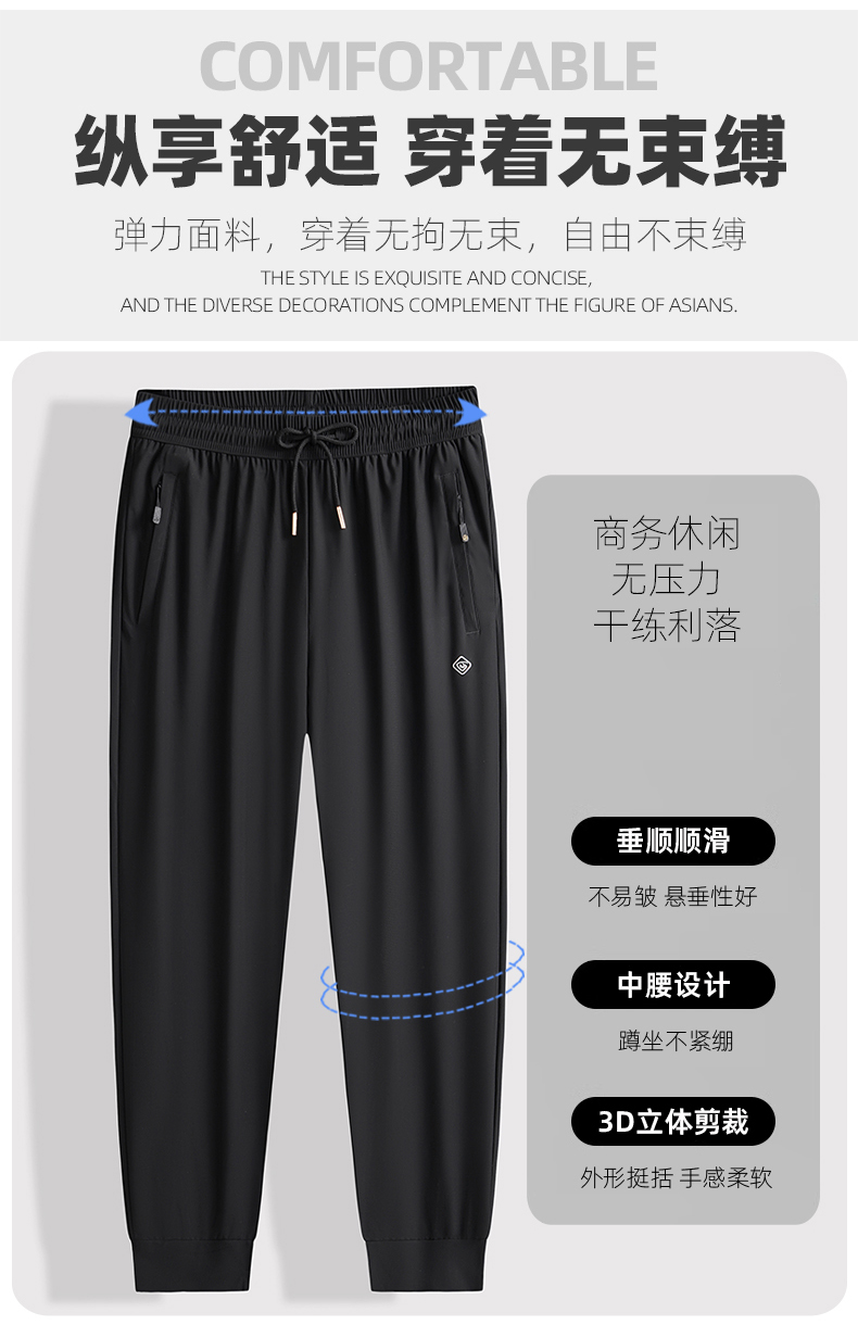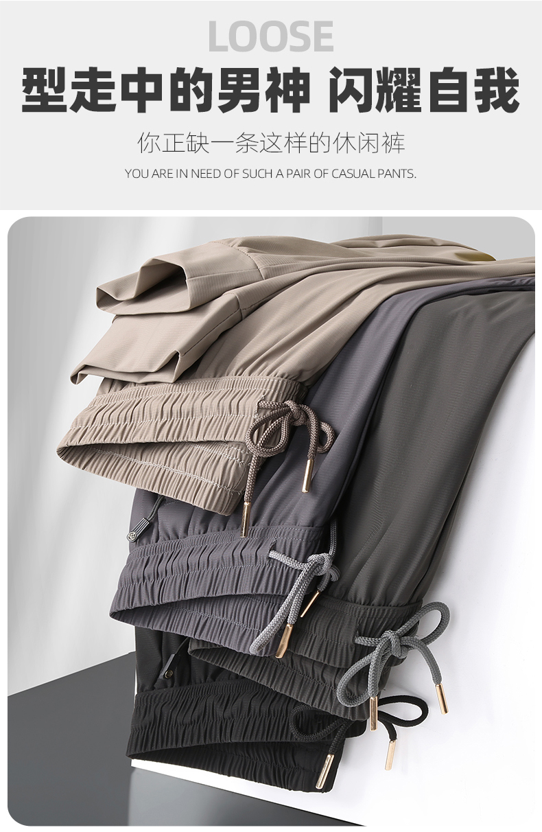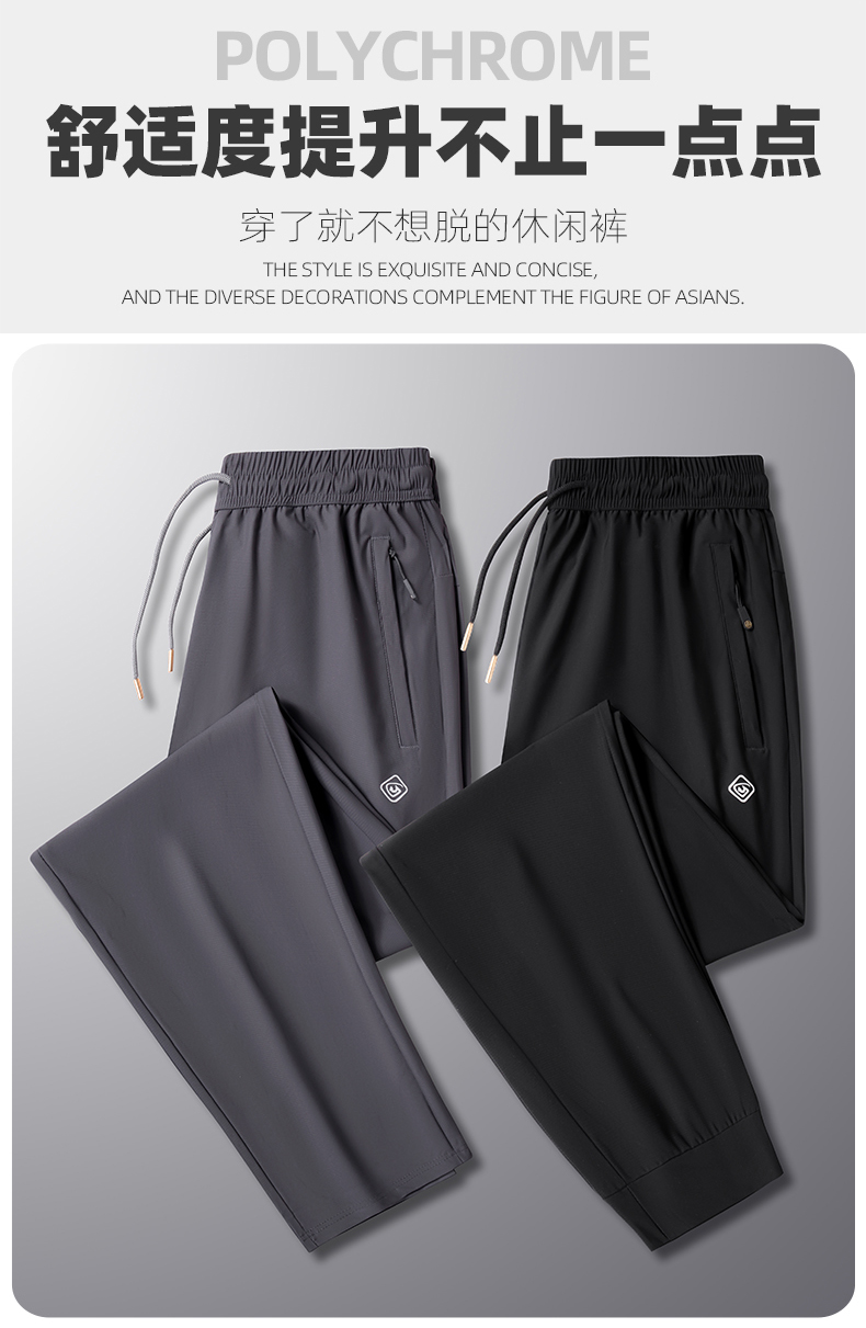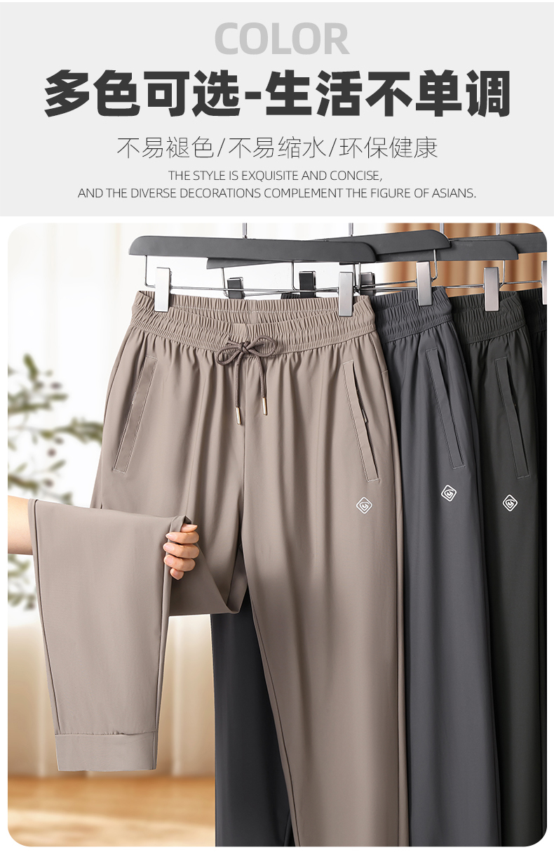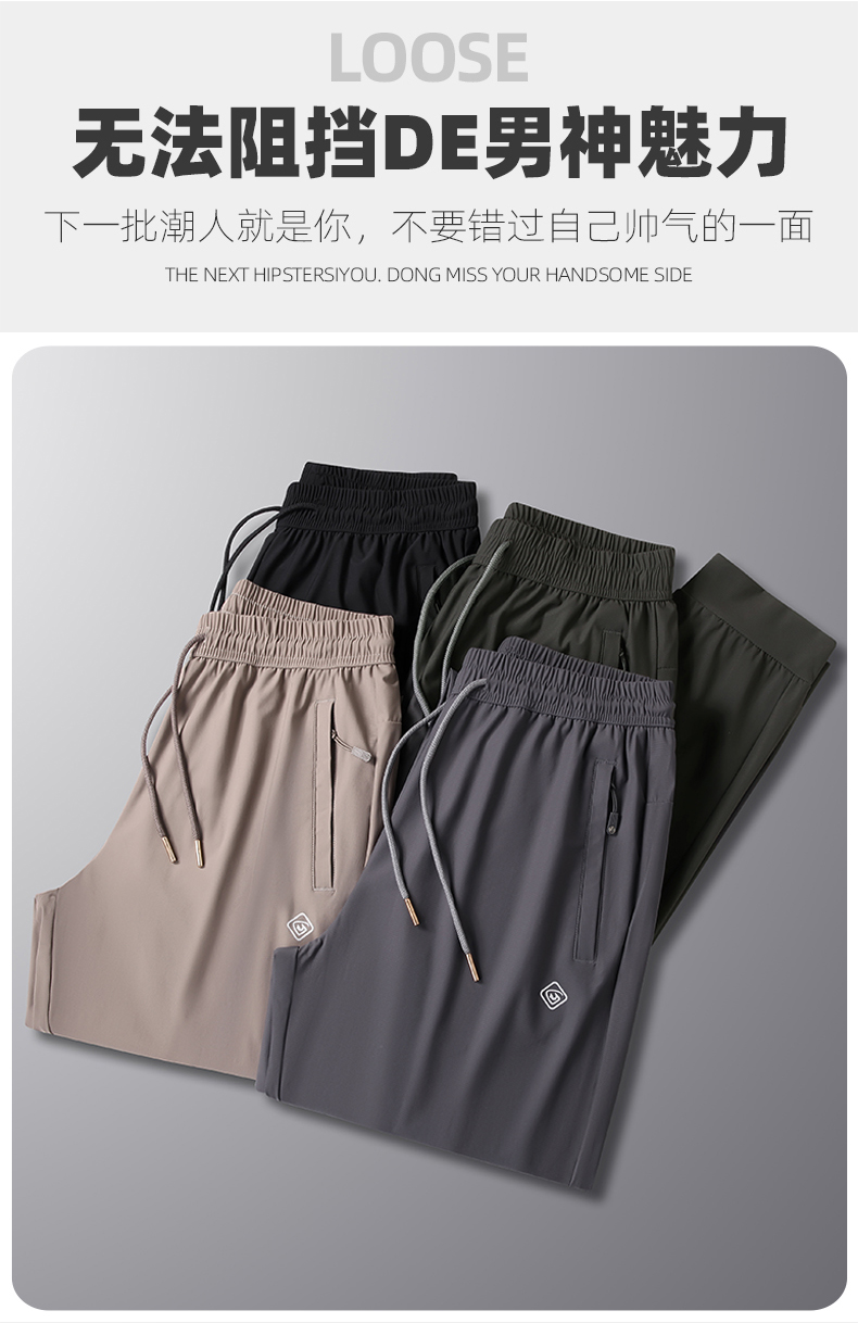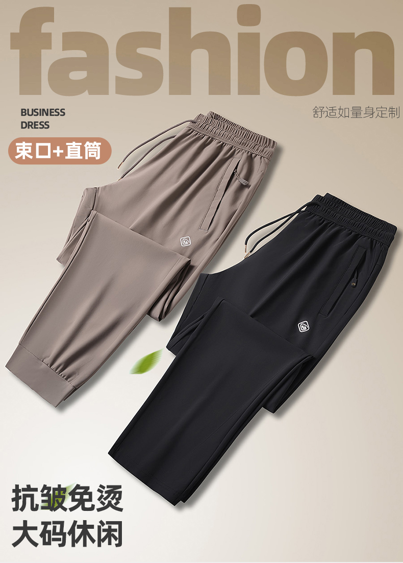 【DK】大依优型大码冰丝裤松紧腰直口束口休闲运动裤直筒卫裤休闲裤加肥加大长裤胖子裤子夏季