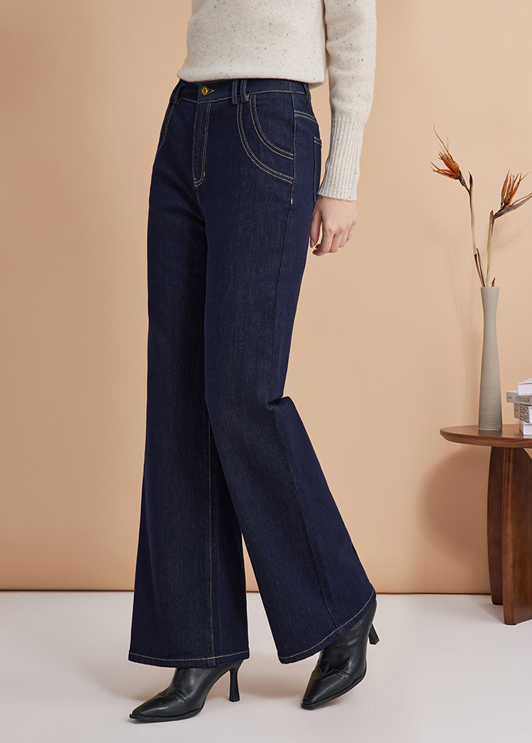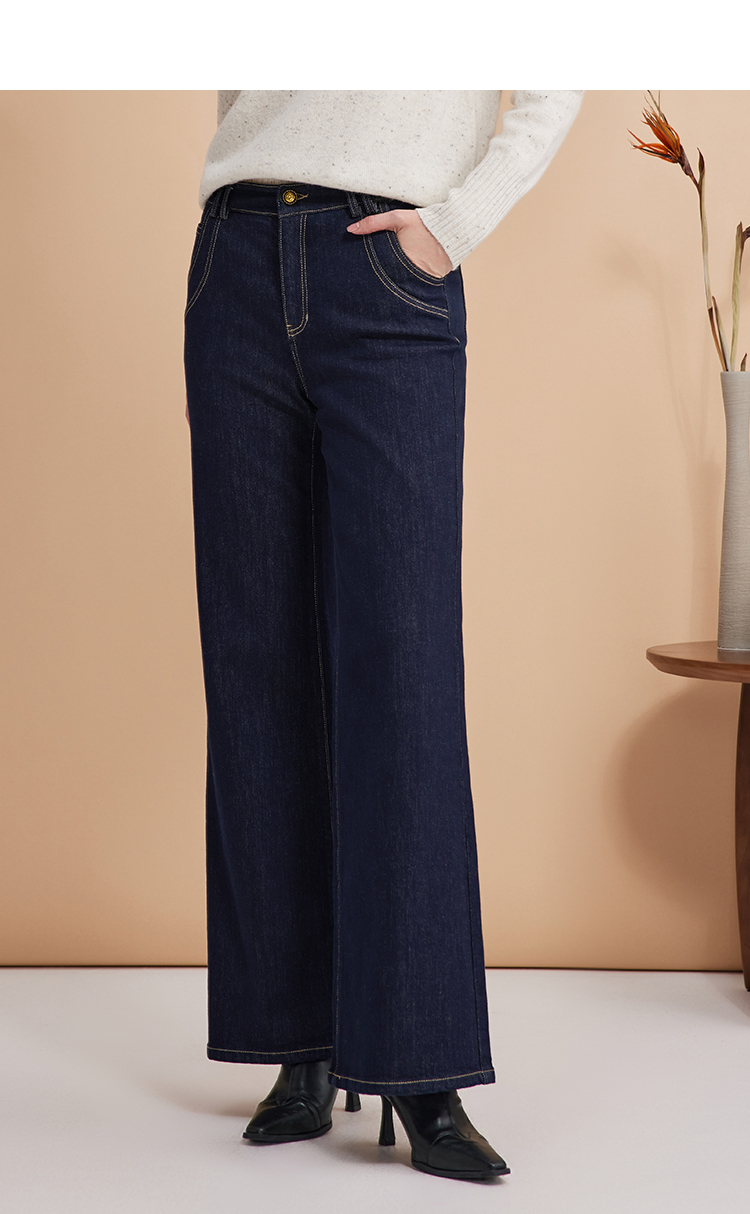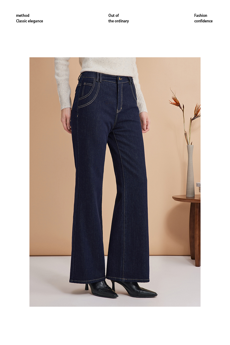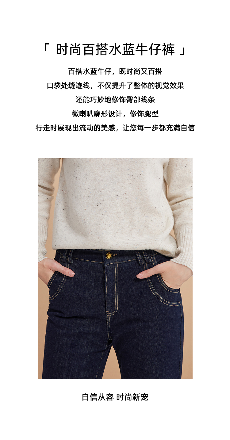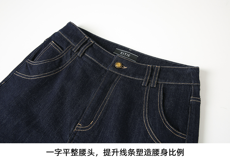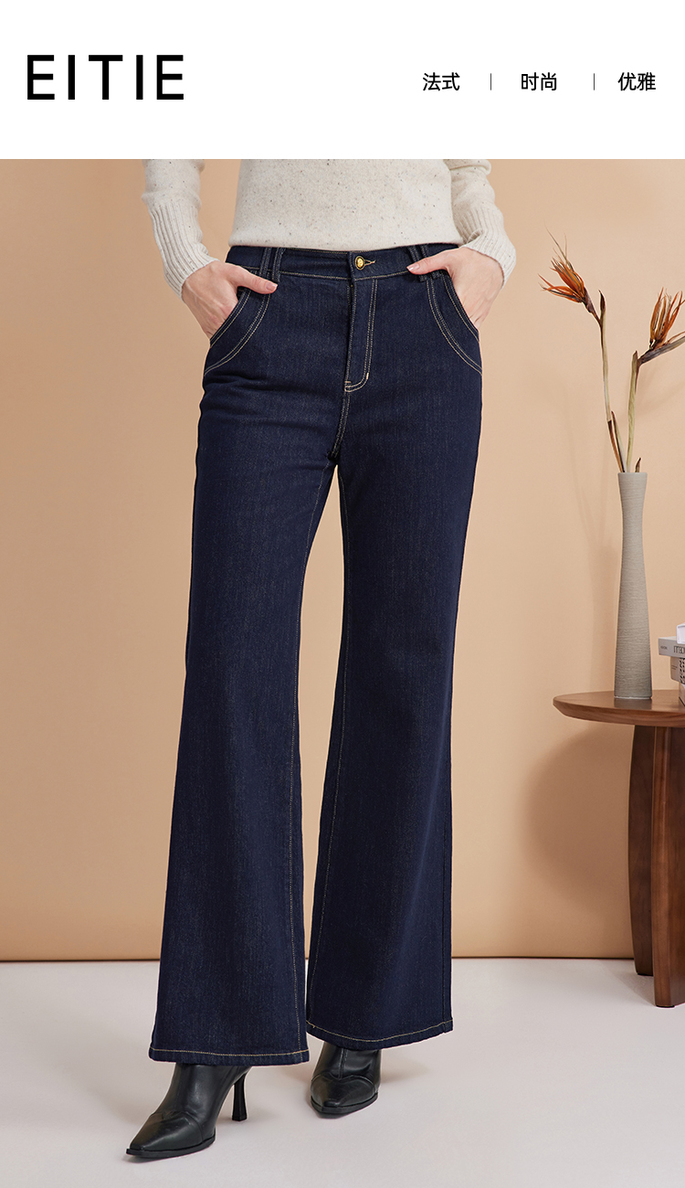 EITIE爱特爱高腰复古深蓝色微喇显瘦加绒保暖牛仔裤冬季新款D2405405
