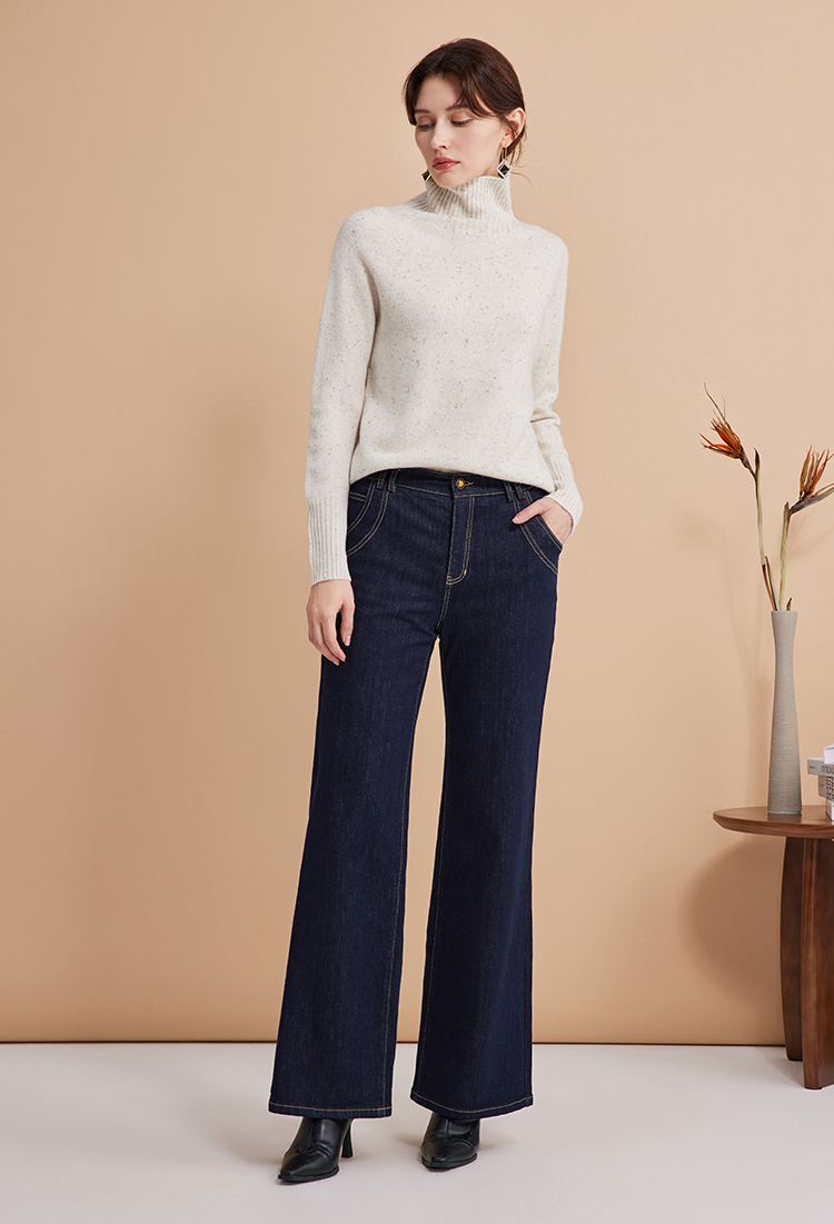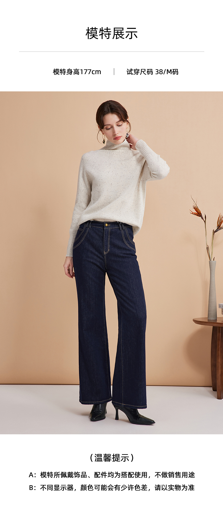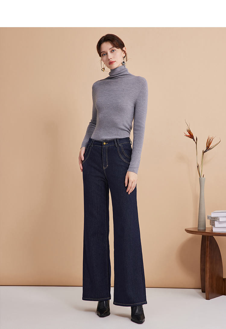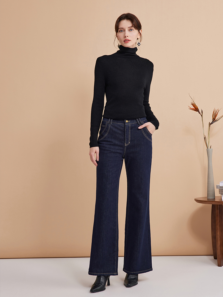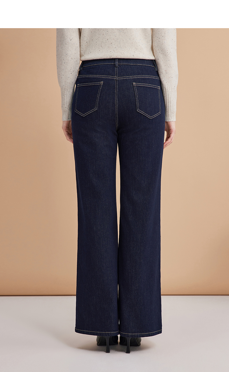 EITIE爱特爱高腰复古深蓝色微喇显瘦加绒保暖牛仔裤冬季新款D2405405