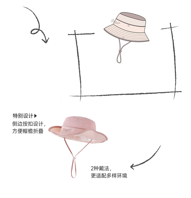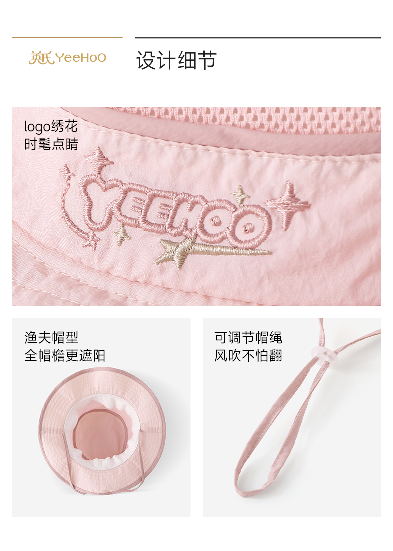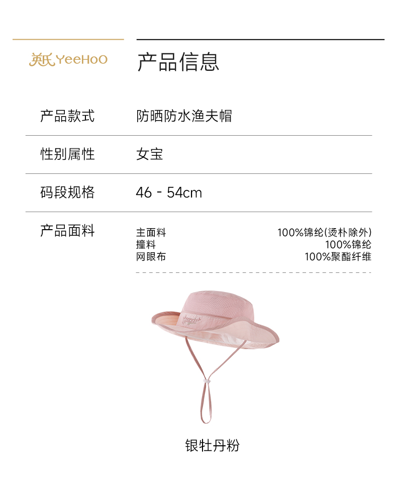 【商场同款】英氏儿童帽子女童夏季休闲户外防水帽防晒透气渔夫帽