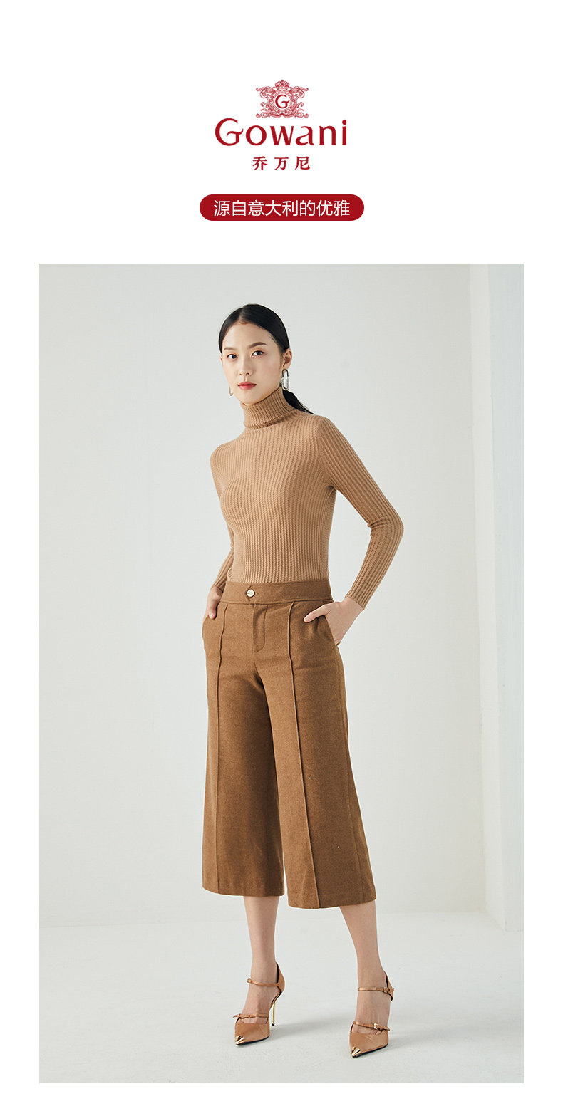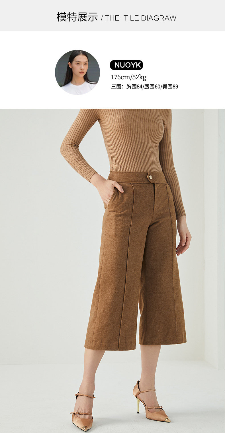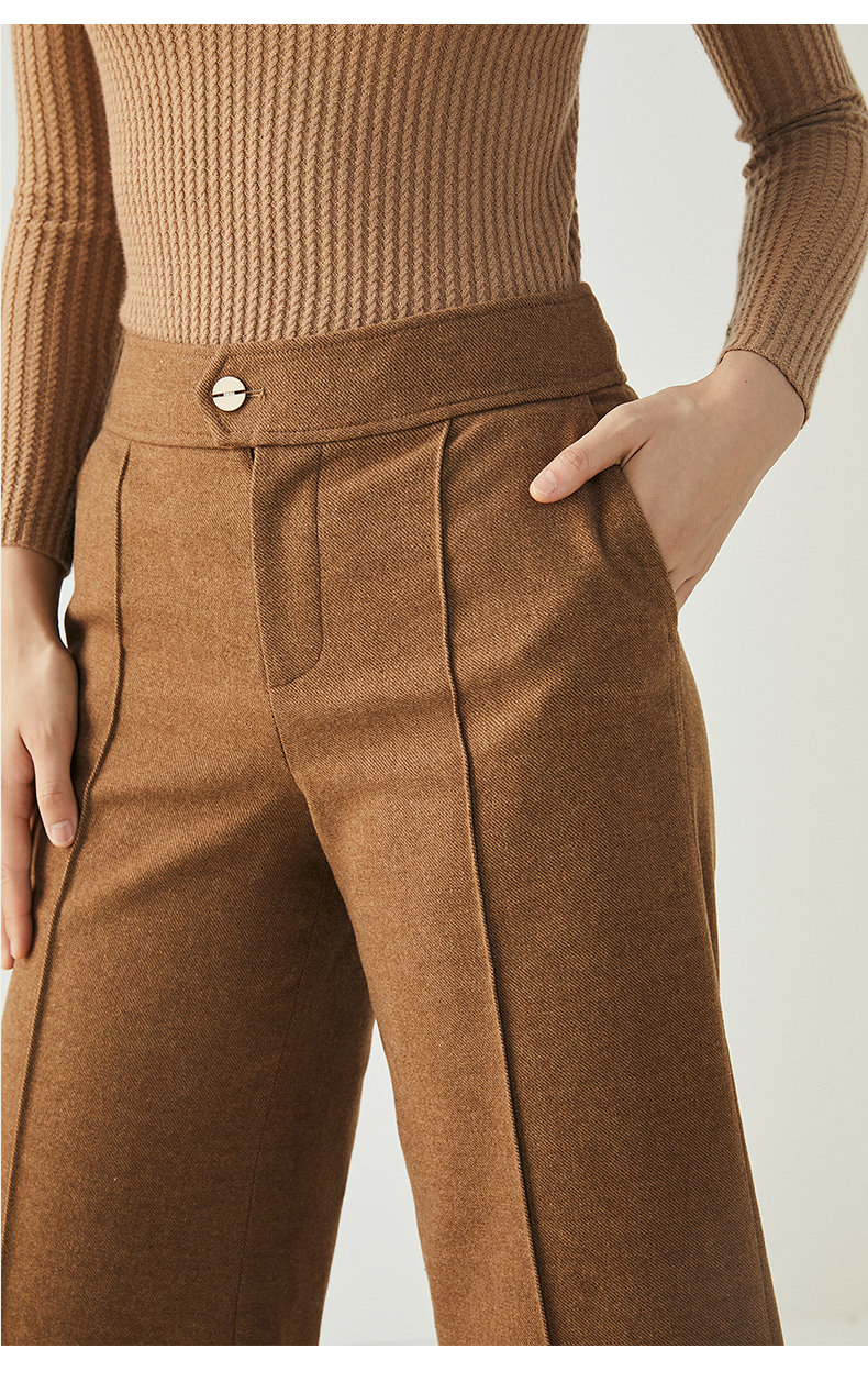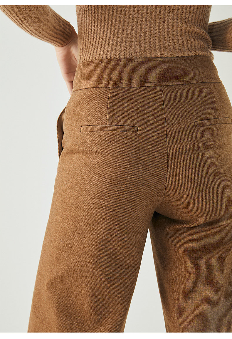 乔万尼复古斜纹简约精致高级感修饰腿型羊毛休闲阔腿裤ES4F450