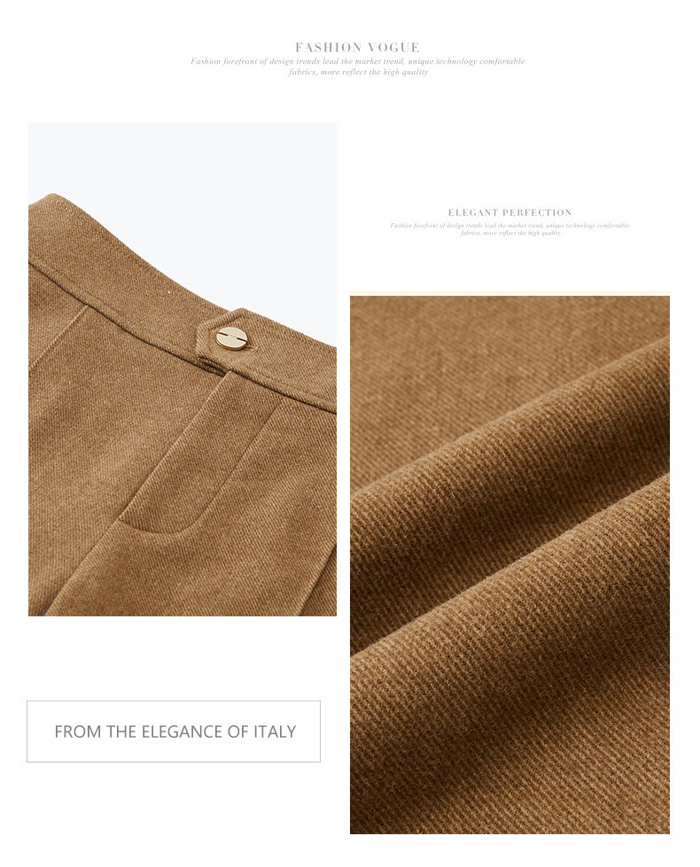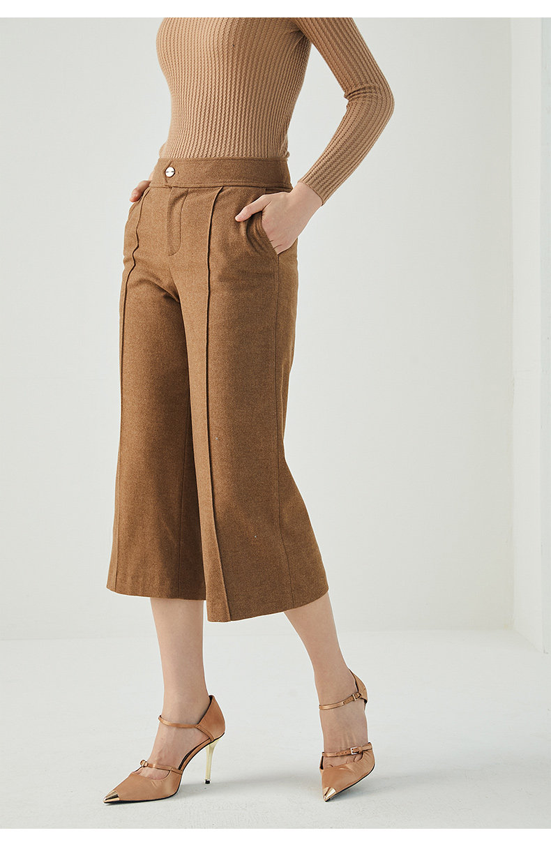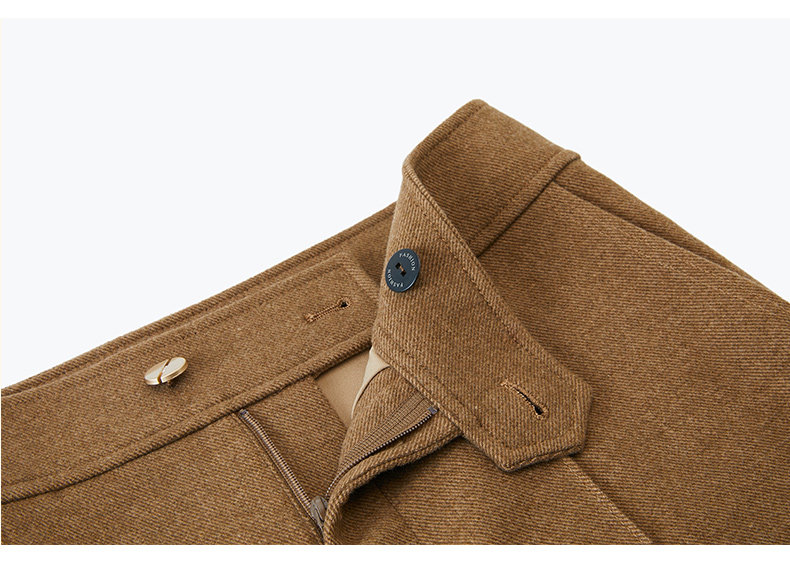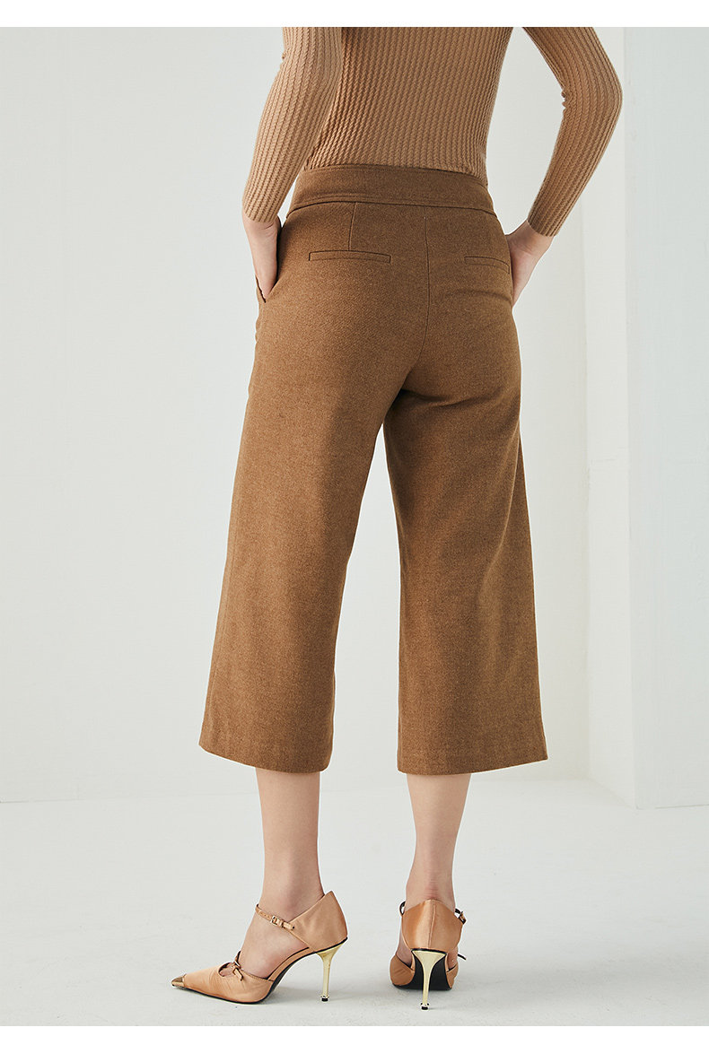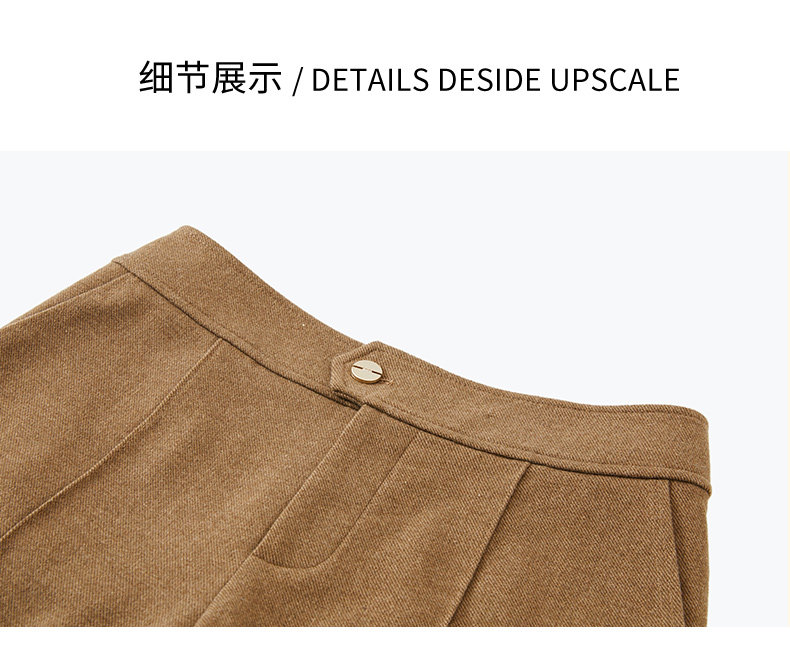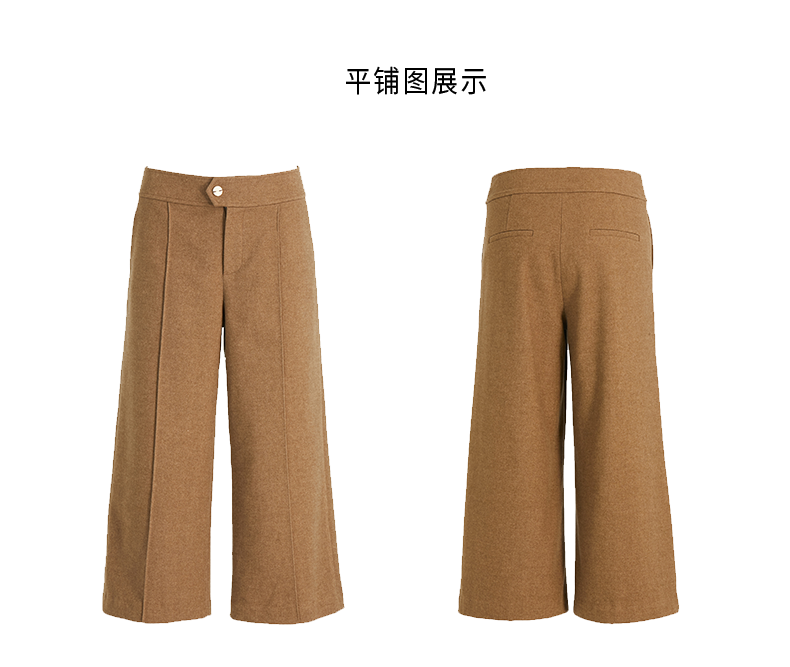 乔万尼复古斜纹简约精致高级感修饰腿型羊毛休闲阔腿裤ES4F450