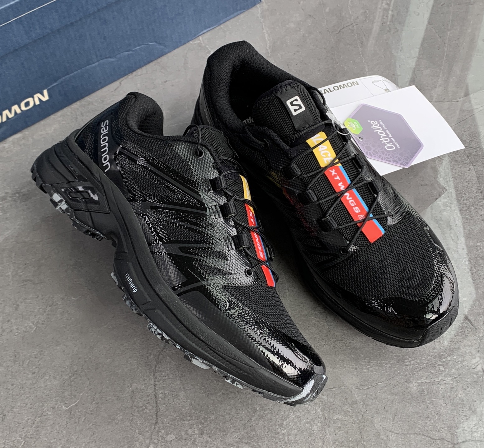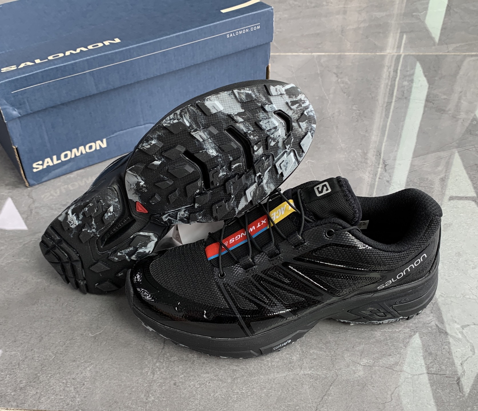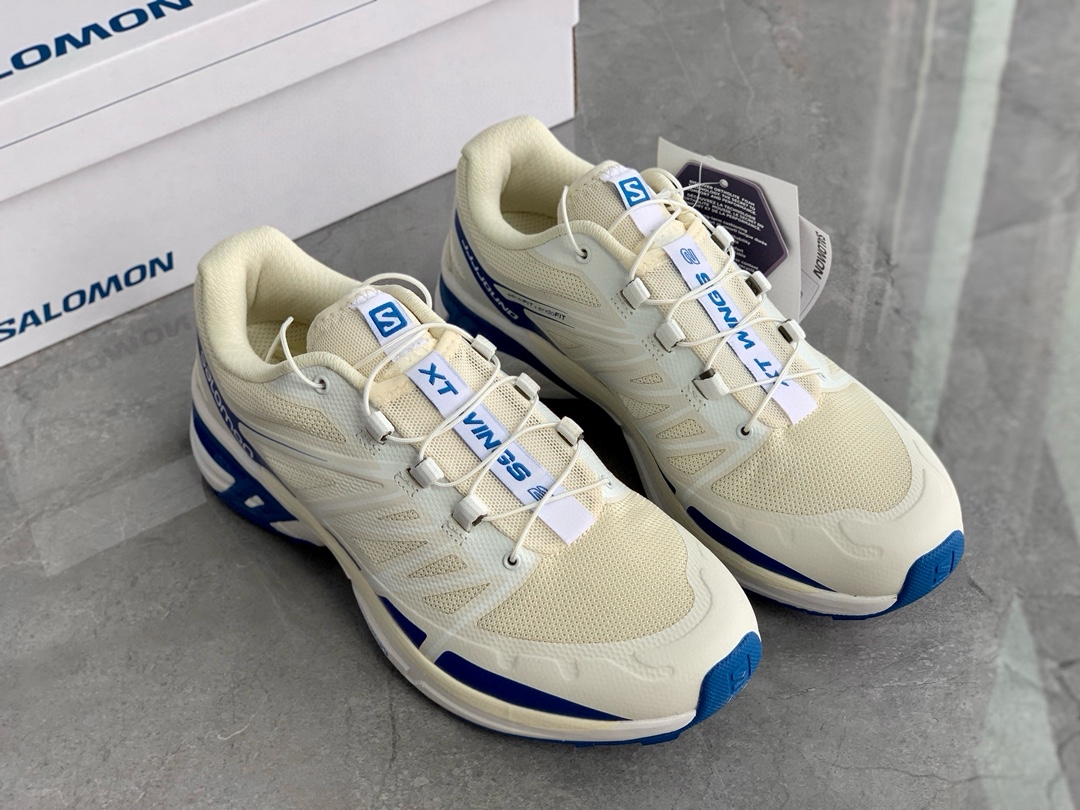 萨&蒙 PAL*ACE x SALOMON 联名款 XT-Wings 2 户外运动鞋‼️偏小一码鞋面采用SENSIFIT贴合技术 全方位贴合包裹双脚,鞋带也是延续传统的快速系蒂抽绳系统,通过抽拉来实现收紧和放松,方便穿脱,中底搭载Agile Chassis System 科技,具有缓震,与稳定功能,组合的橡胶科技大底,稳定性强更耐磨,日常生活 户外越野功能性与搭配性完全匹配!