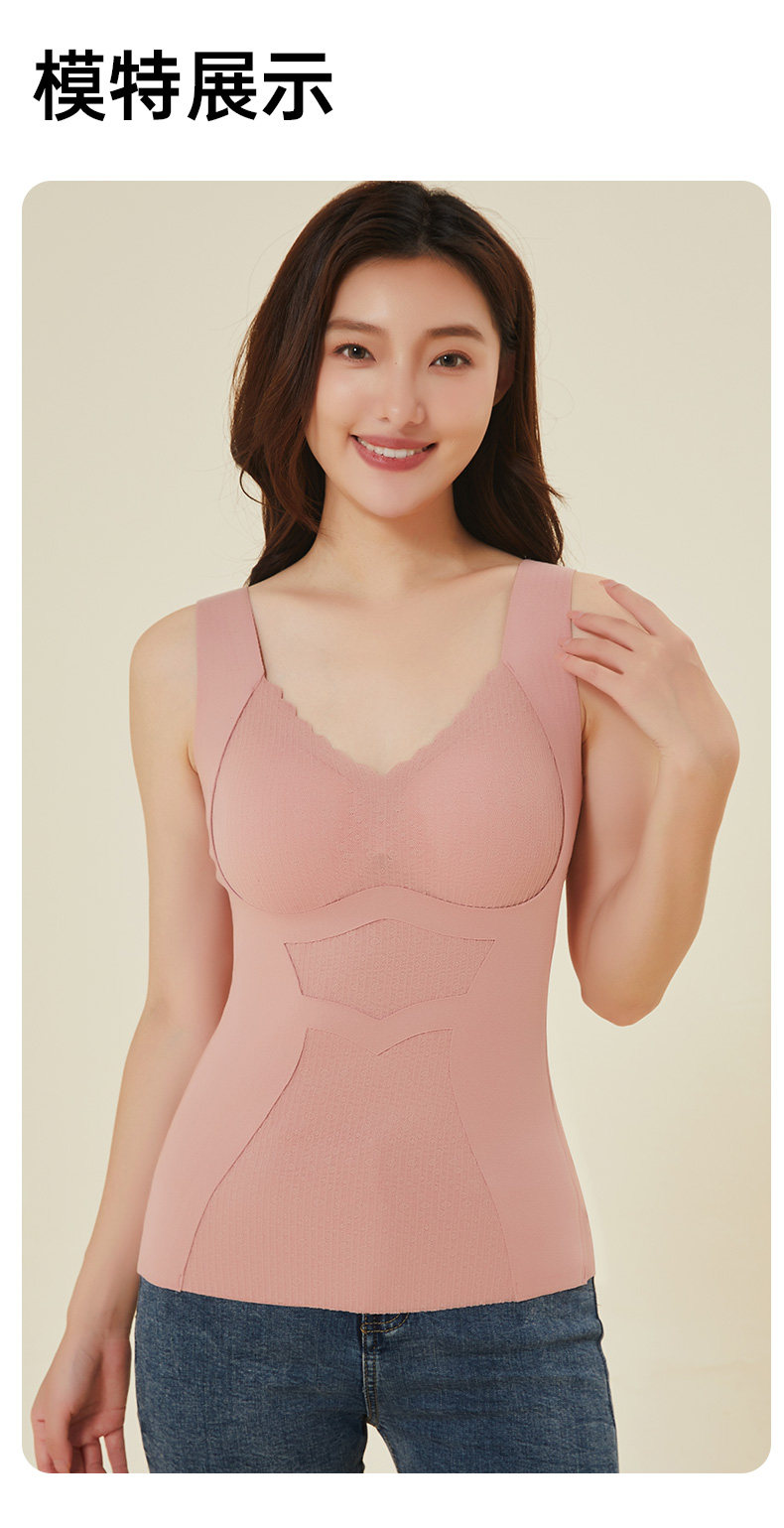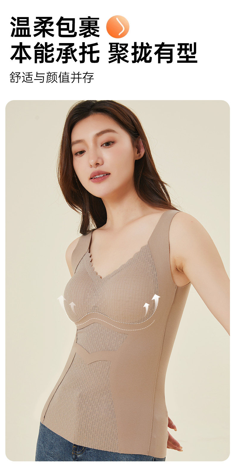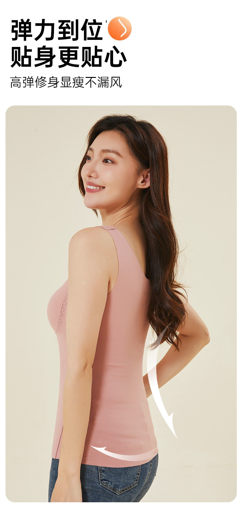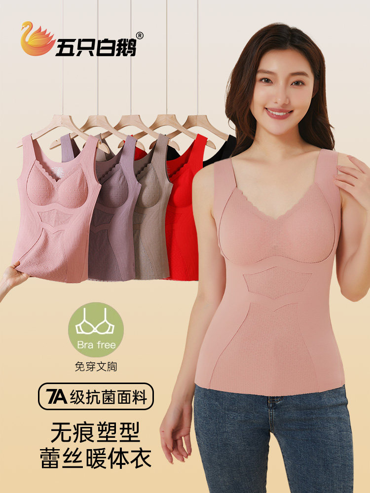 五只白鹅—蕾丝无痕背心一体式免穿文胸双层磨毛抗菌暖体衣73516