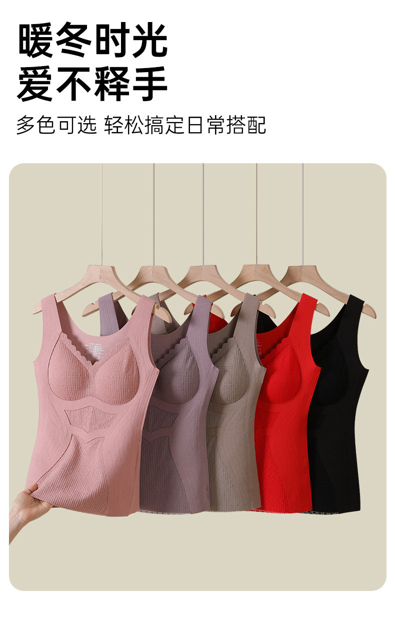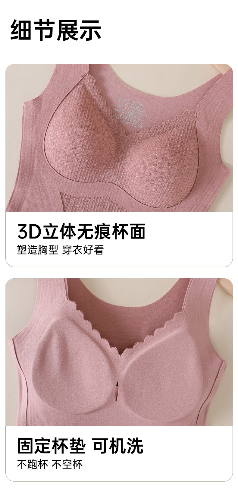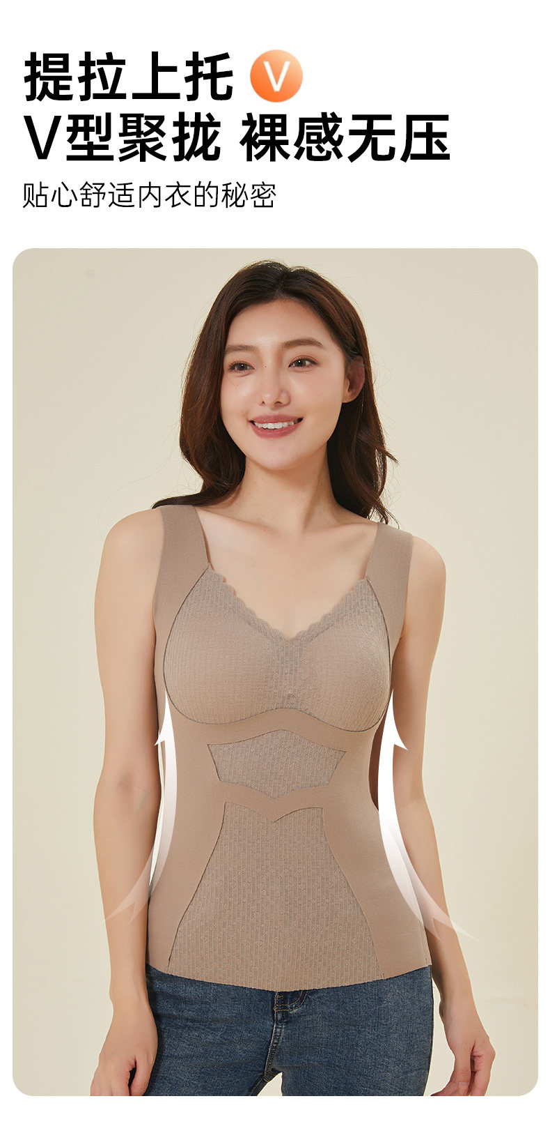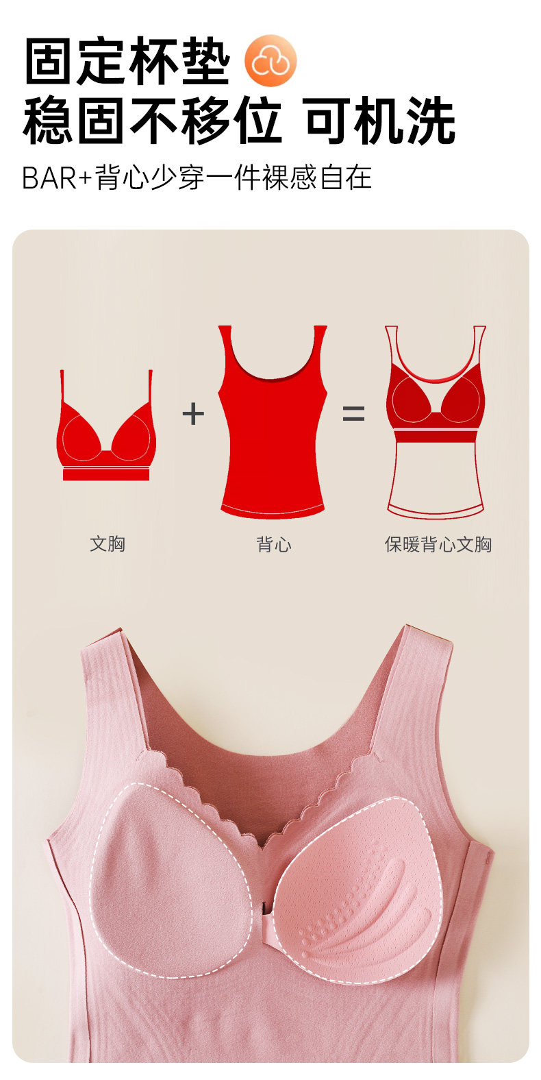 五只白鹅—蕾丝无痕背心一体式免穿文胸双层磨毛抗菌暖体衣73516
