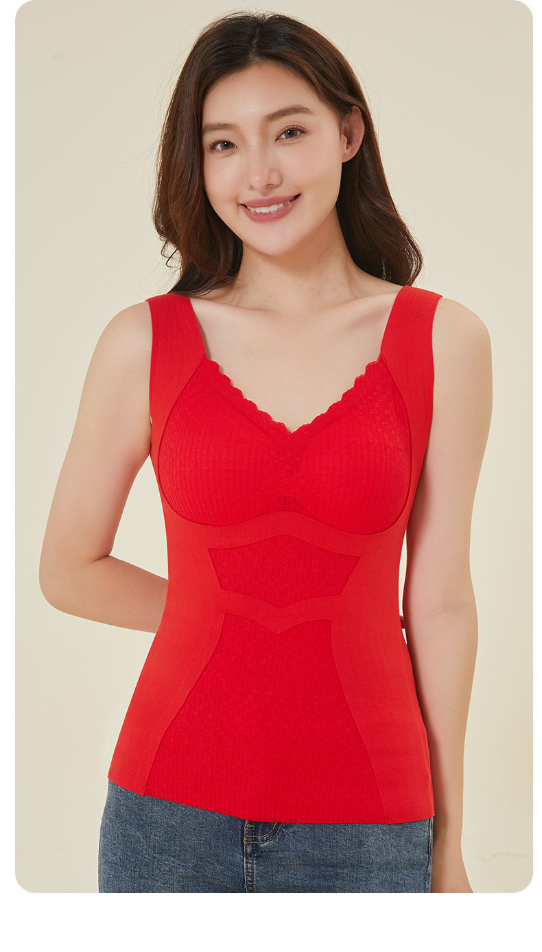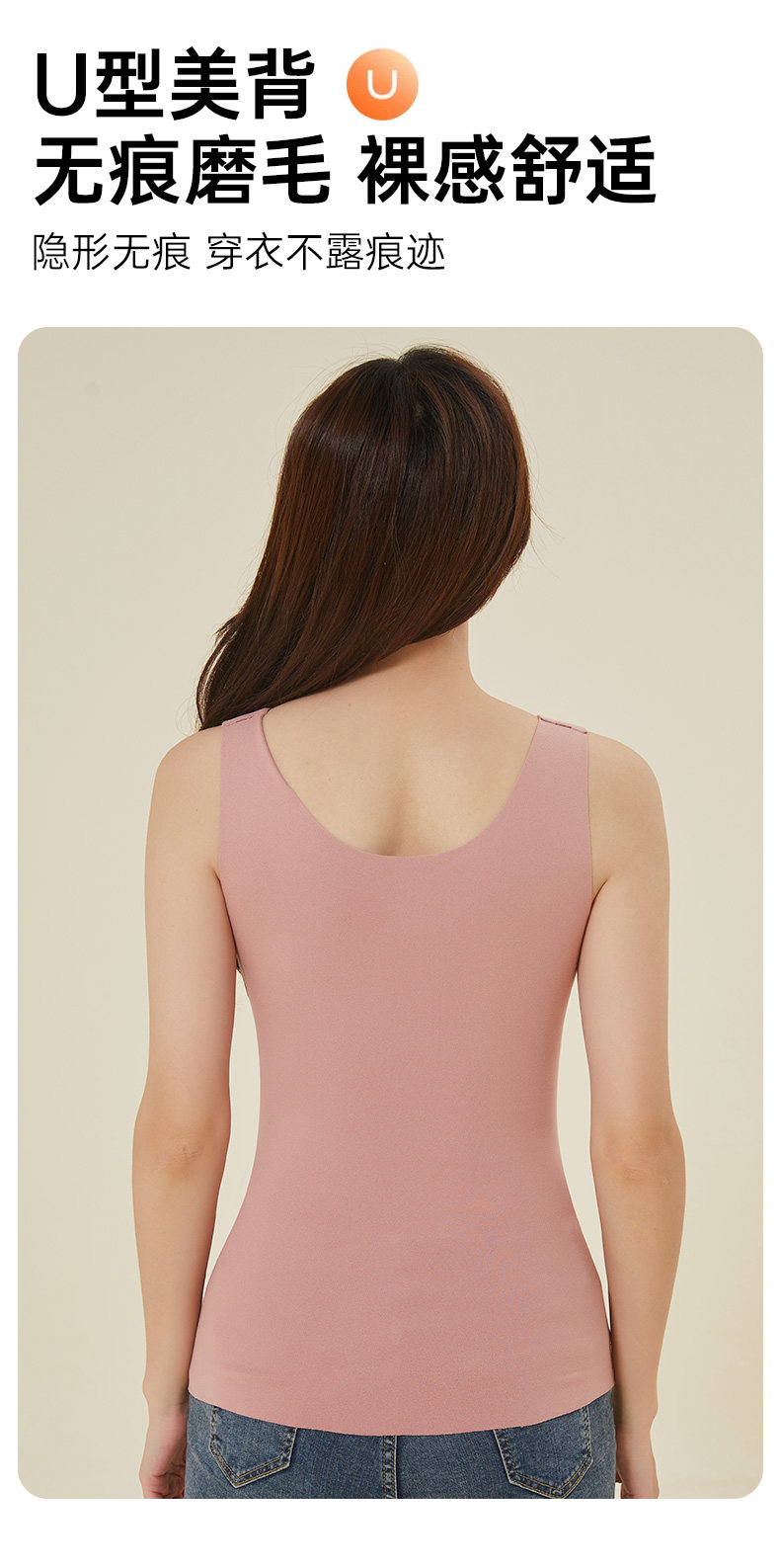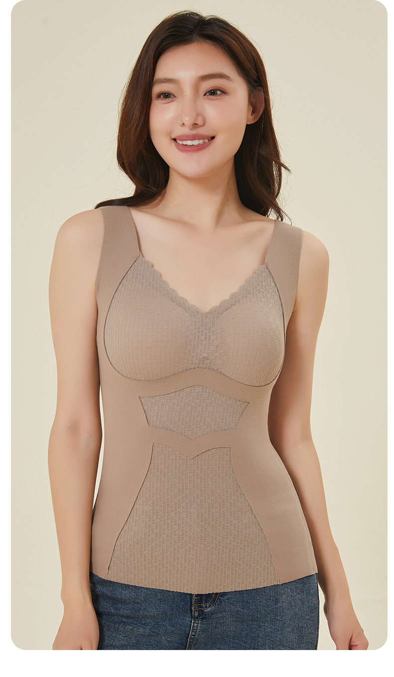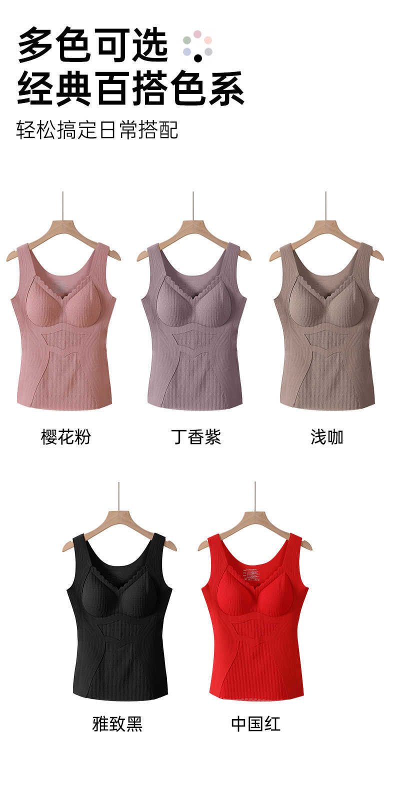 五只白鹅—蕾丝无痕背心一体式免穿文胸双层磨毛抗菌暖体衣73516