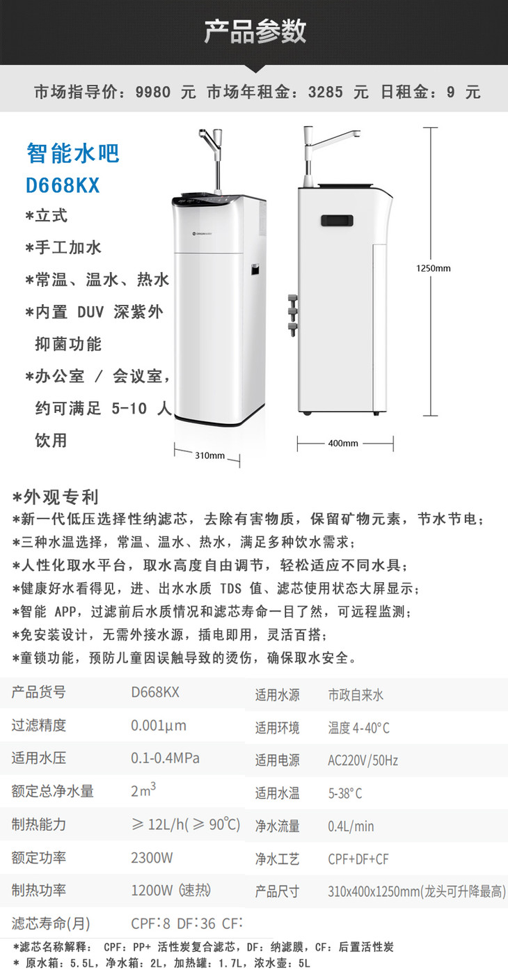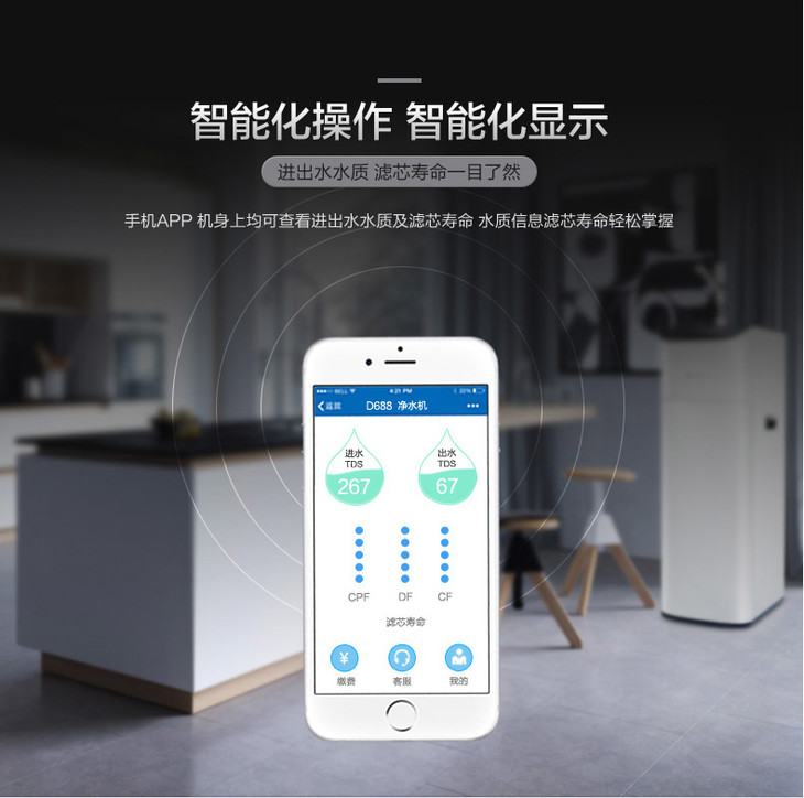 碧水源家用客厅卧室直饮立式纳滤净水器 免安装 智能WIFI D668KX
