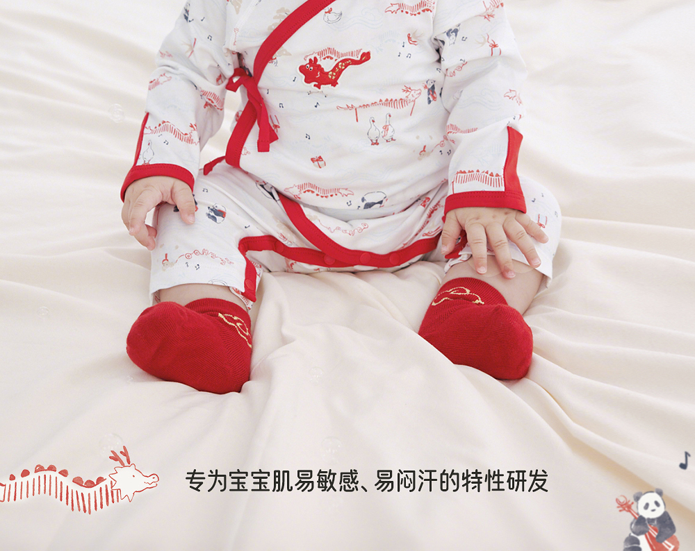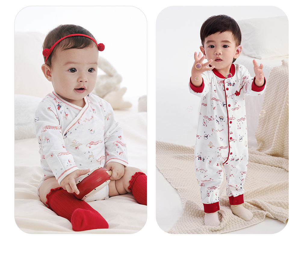 【商场同款】英氏初生婴儿连体衣新生儿宝宝长袖国风满月百天服