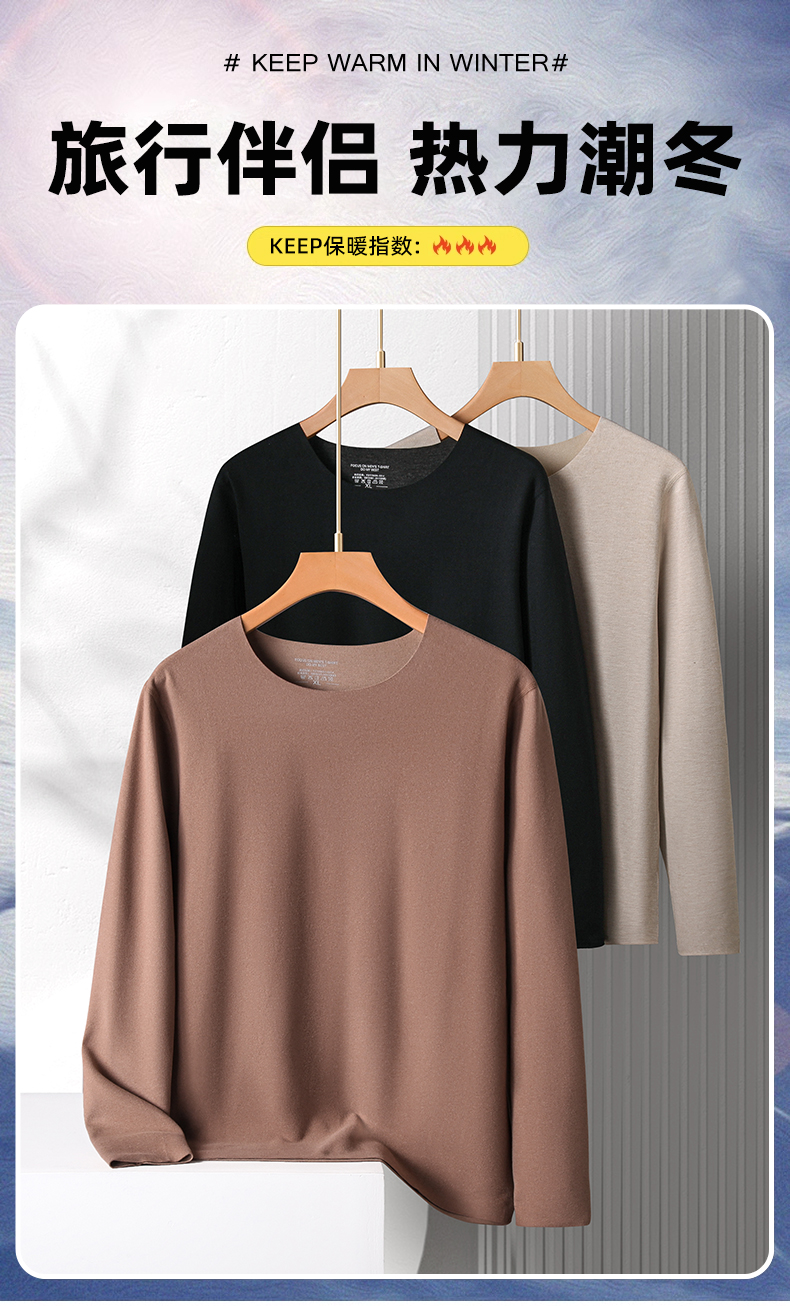 【羊绒保暖】【新款DSF】大依优型大码男装羊绒保暖上衣内衣弹力加绒舒适保暖秋衣