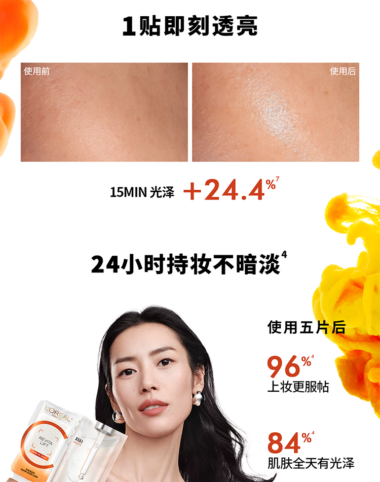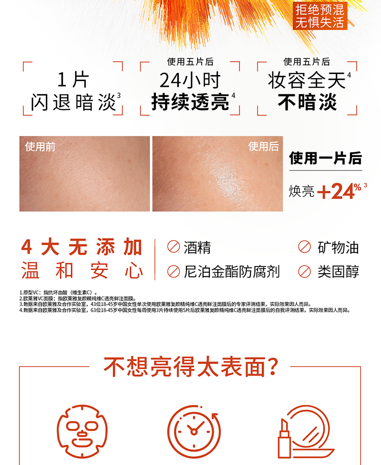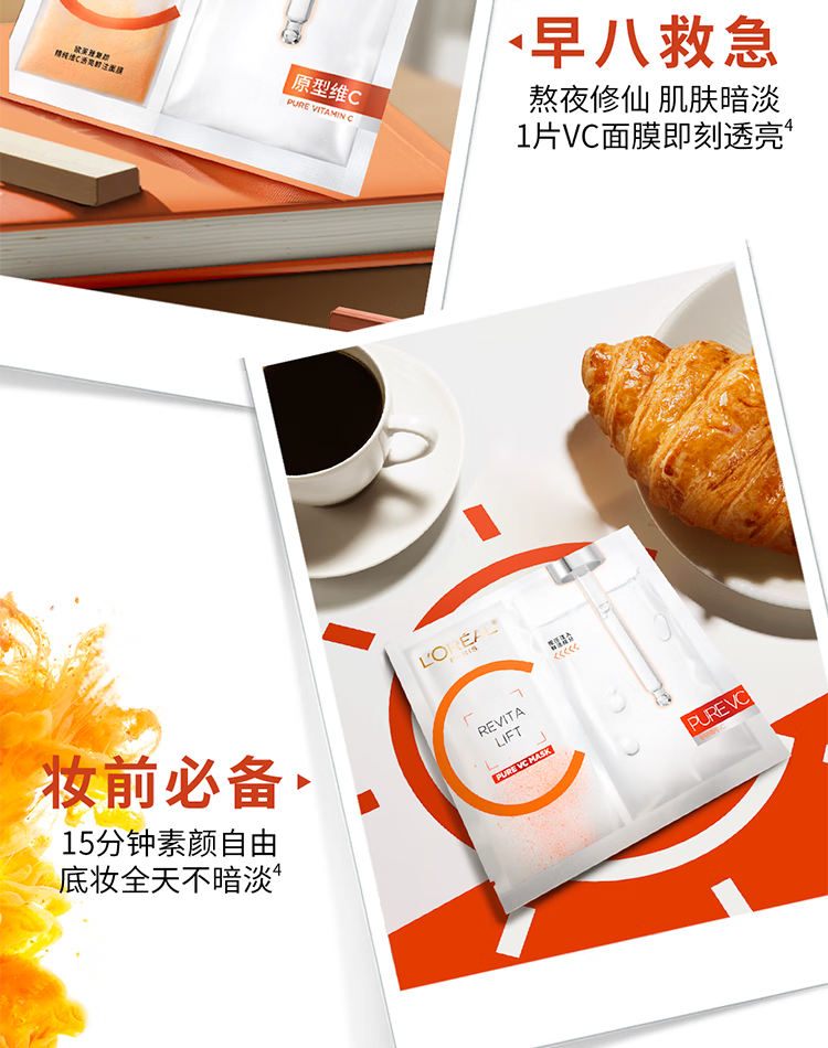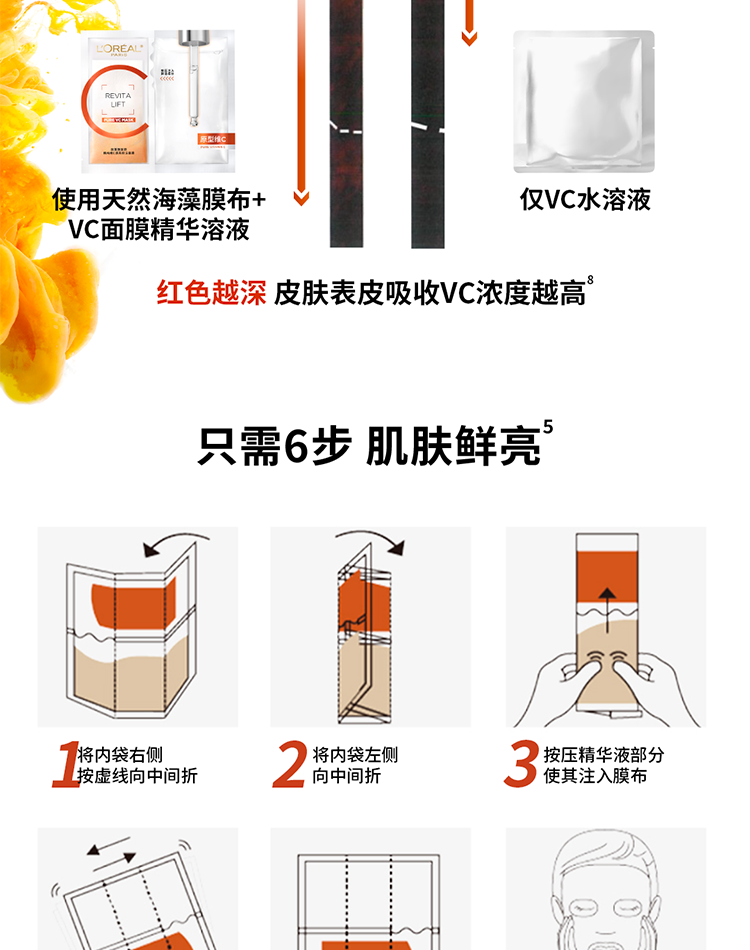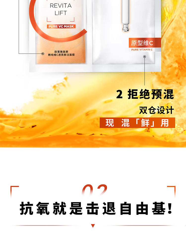 欧莱雅复颜精纯维C透亮鲜注面膜5片提亮肤色