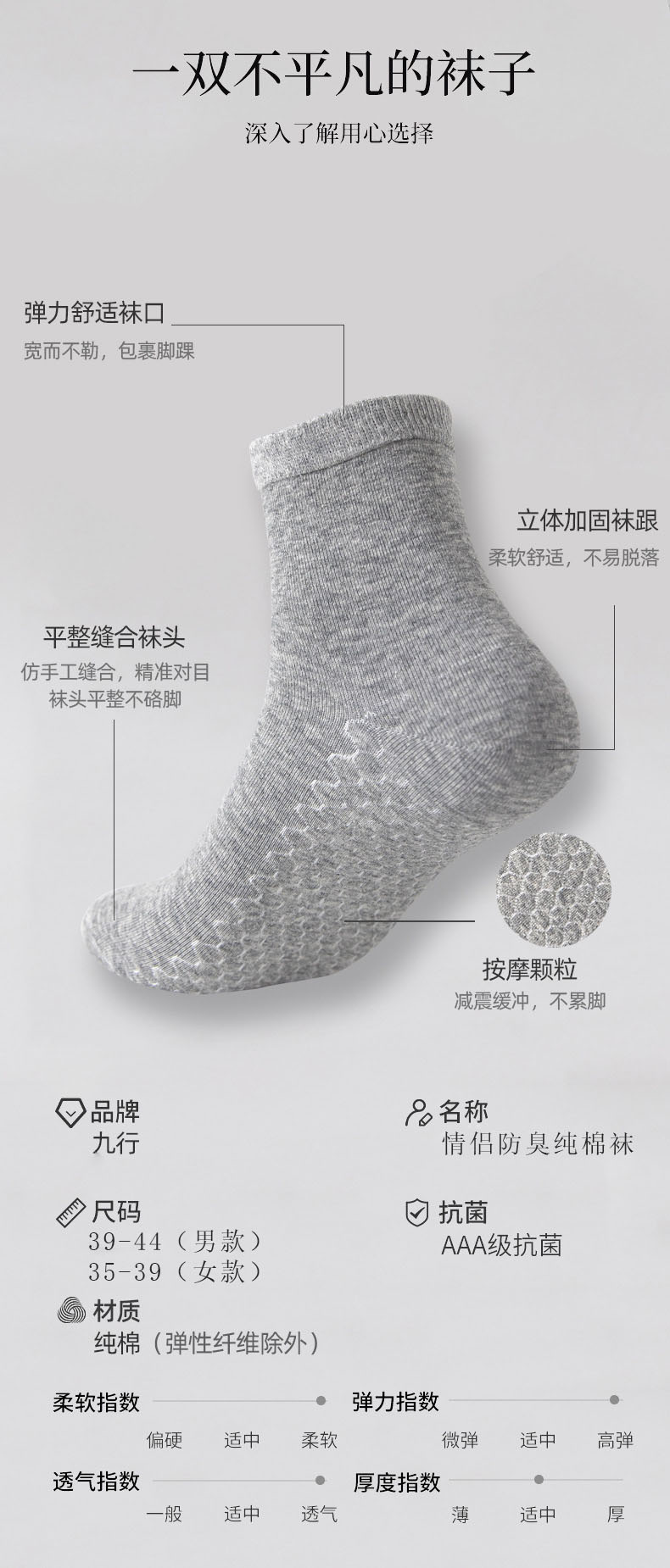 艾草纯棉情侣袜精选新疆长绒精梳棉天然艾草纤维击菌祛味40支200针密实耐磨不变形脚底按摩颗粒编织减震缓冲释放压力舒适贴合脚型