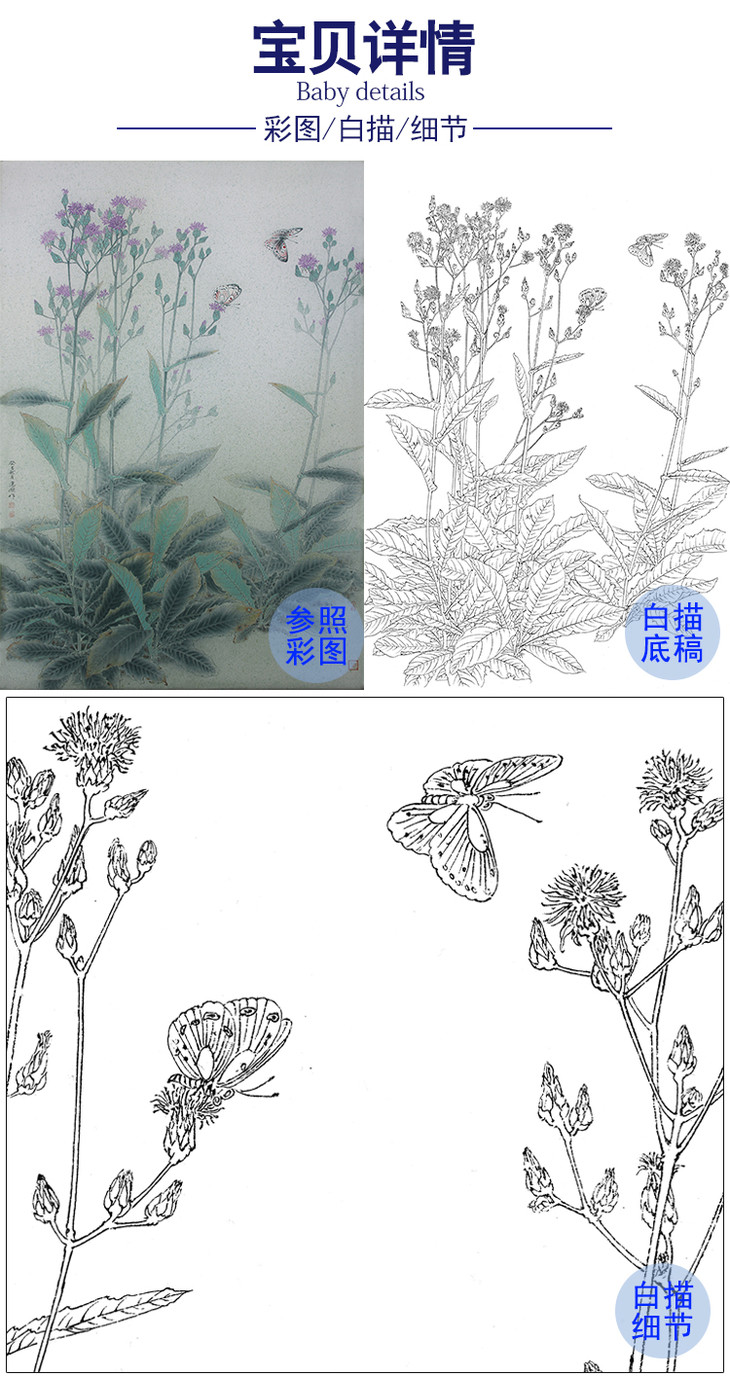 竖幅工笔画白描底稿 盘虎杰 花鸟HJ23
