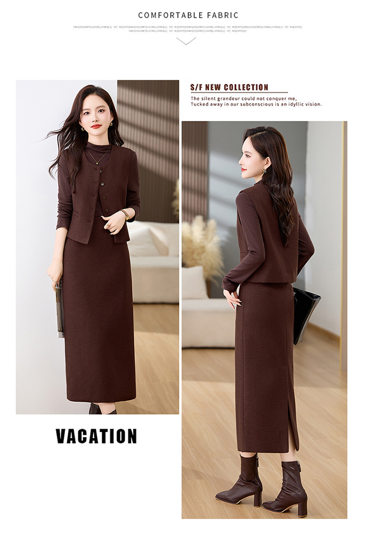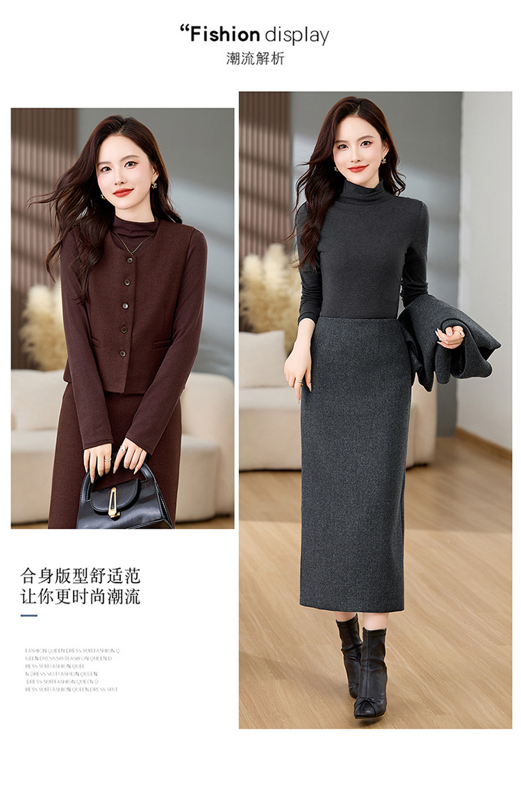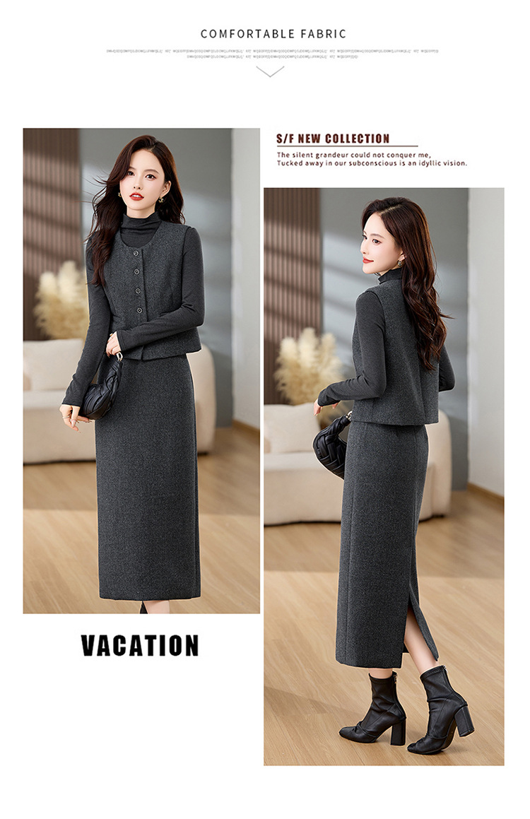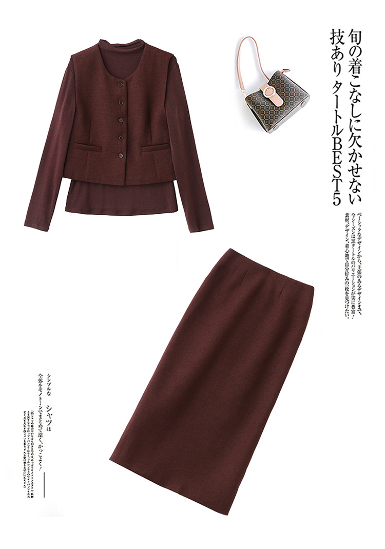 HR MEIQIN1833知性风时尚三件套裙洋气百搭马甲t恤半身裙套装 商品图0
