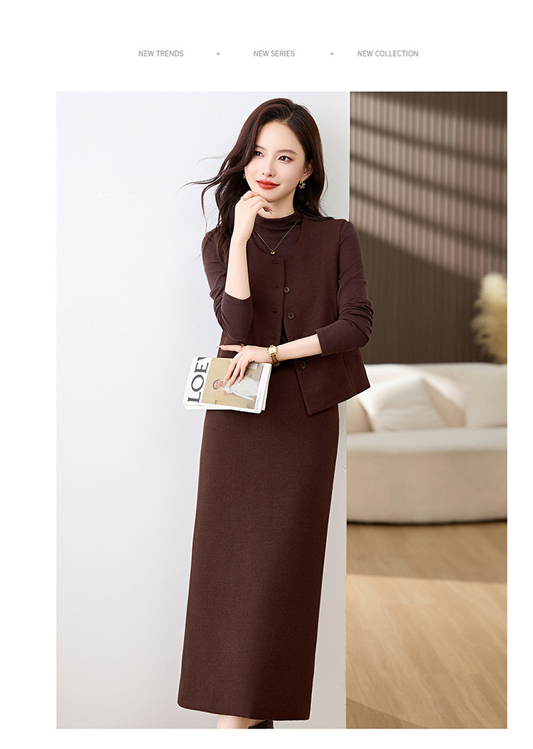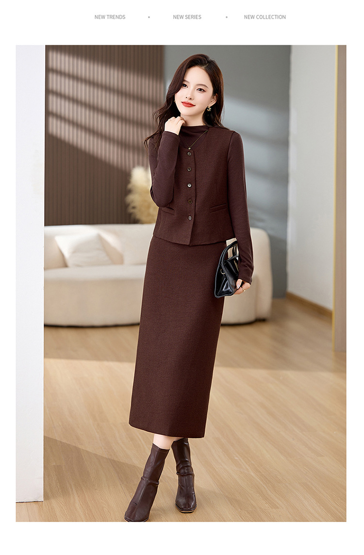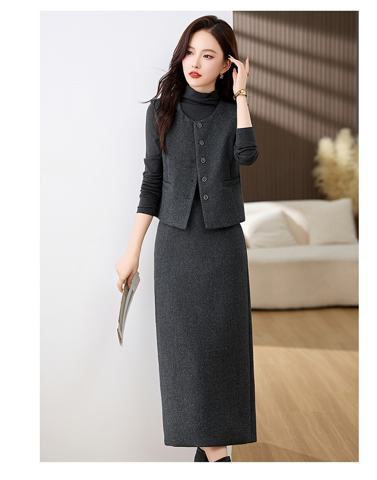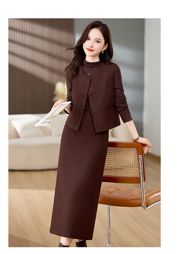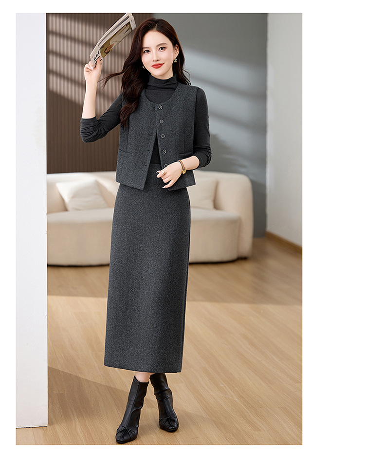 HR MEIQIN1833知性风时尚三件套裙洋气百搭马甲t恤半身裙套装 商品图0