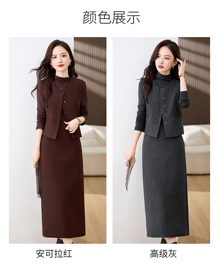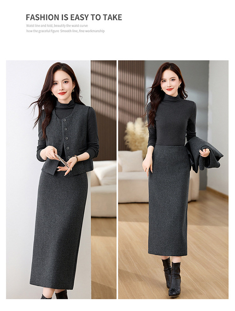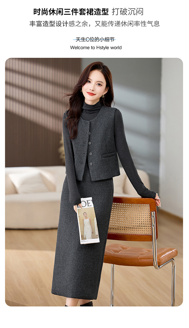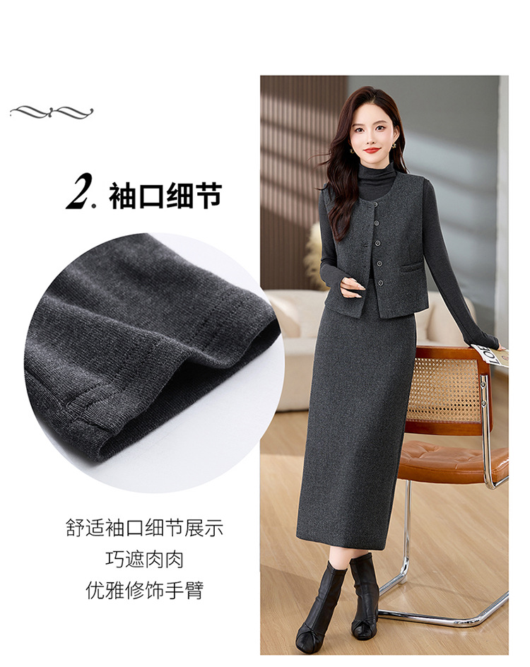 HR MEIQIN1833知性风时尚三件套裙洋气百搭马甲t恤半身裙套装 商品图4