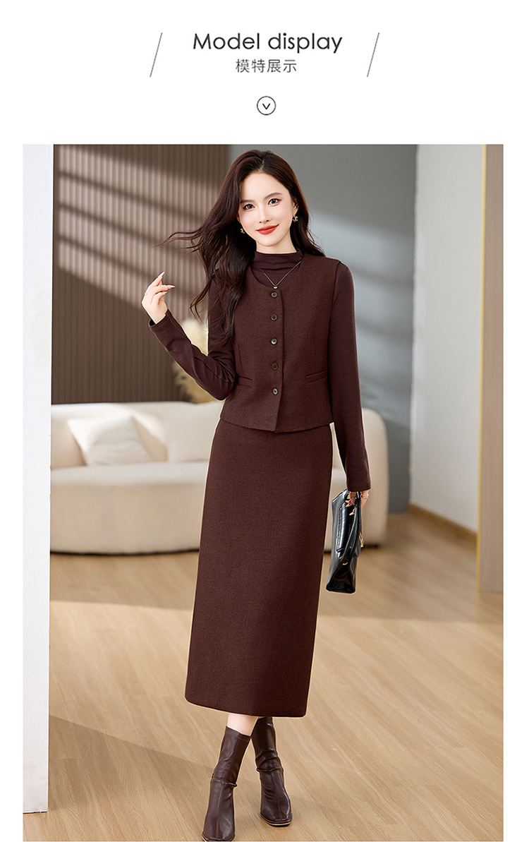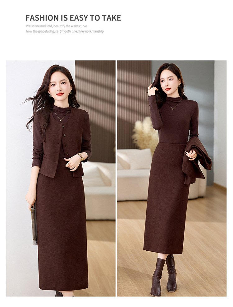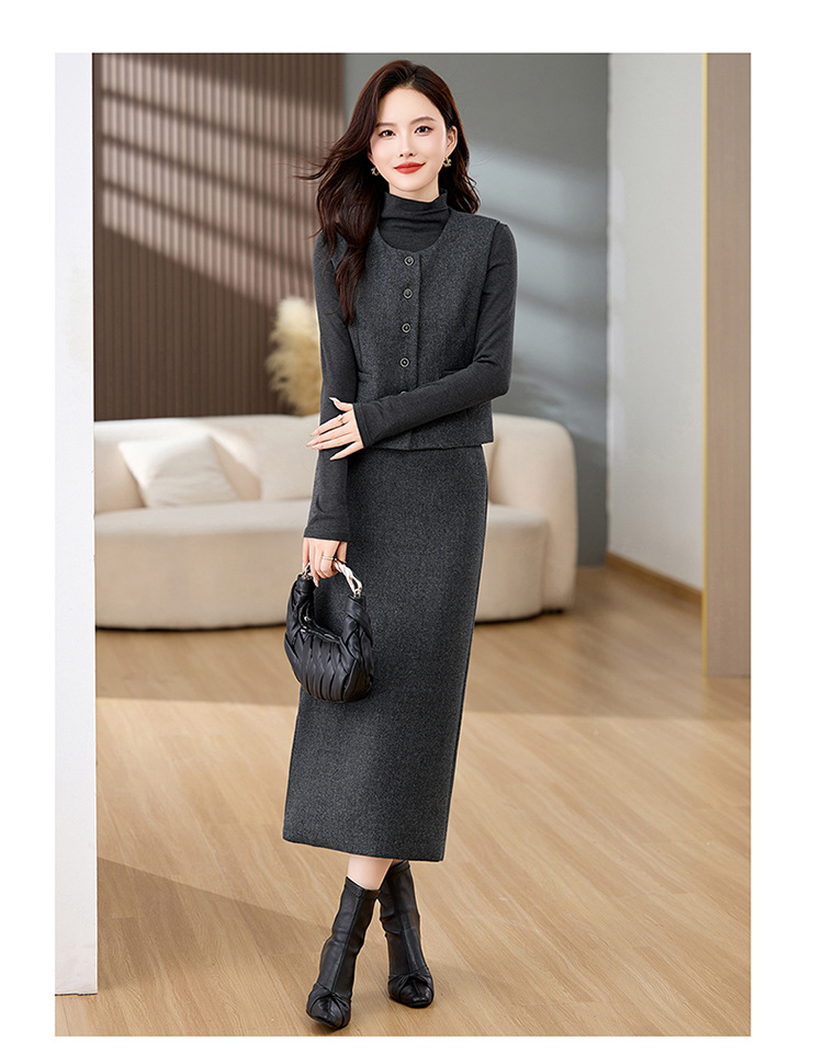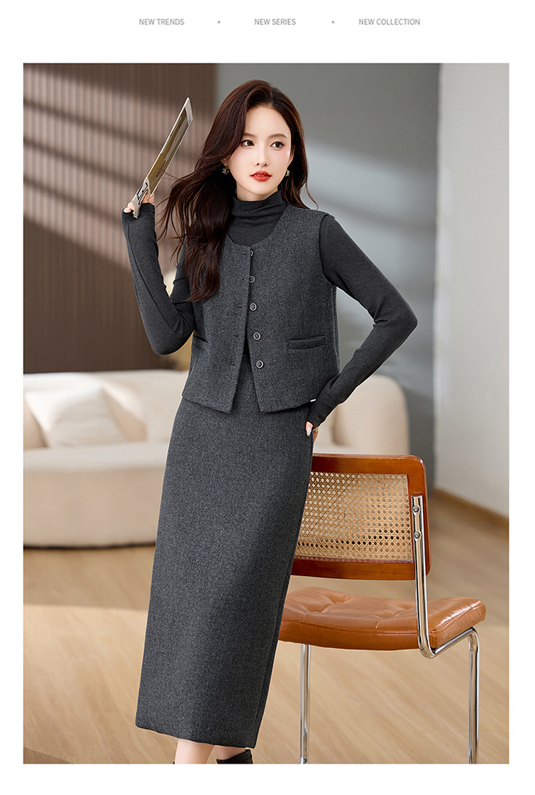 HR MEIQIN1833知性风时尚三件套裙洋气百搭马甲t恤半身裙套装 商品图4
