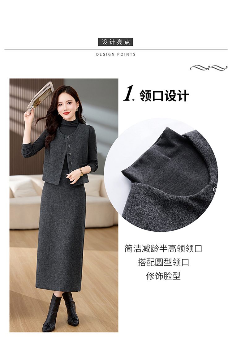 HR MEIQIN1833知性风时尚三件套裙洋气百搭马甲t恤半身裙套装 商品图5