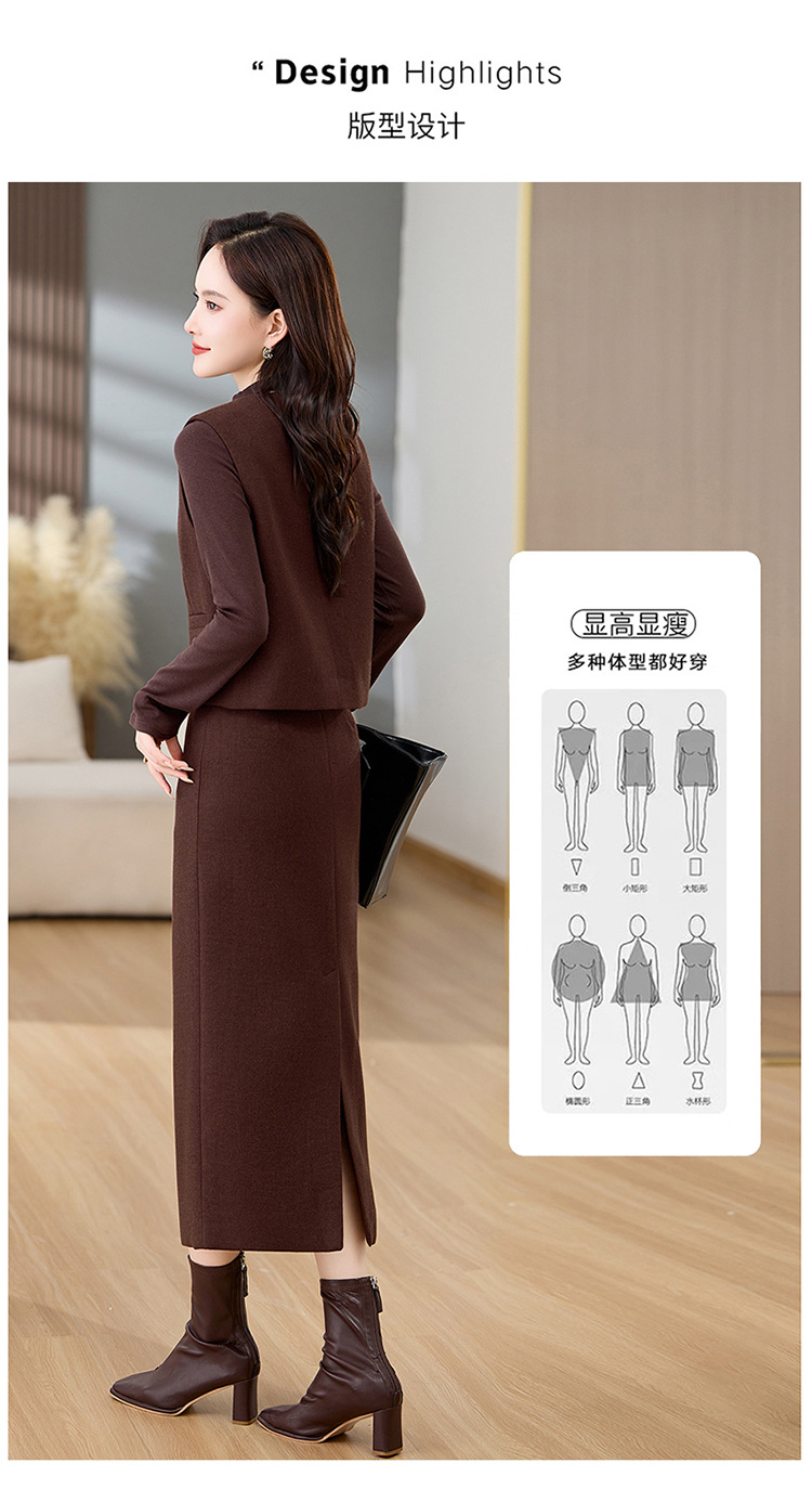HR MEIQIN1833知性风时尚三件套裙洋气百搭马甲t恤半身裙套装 商品图6