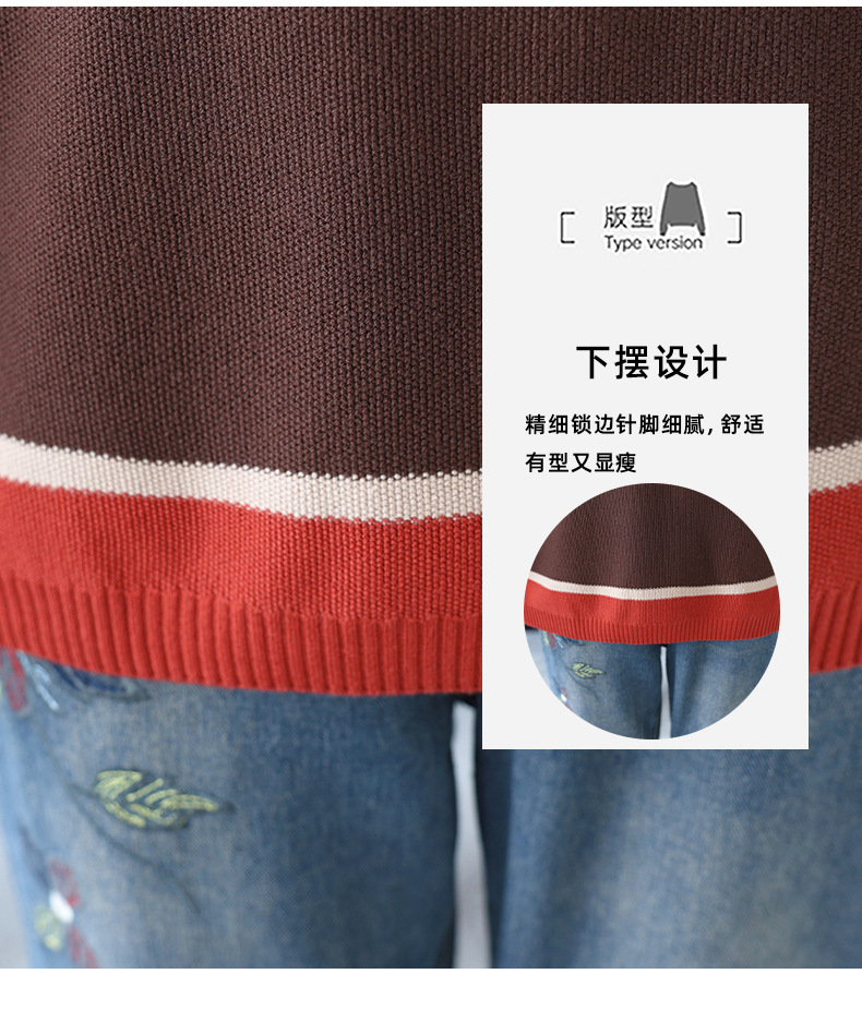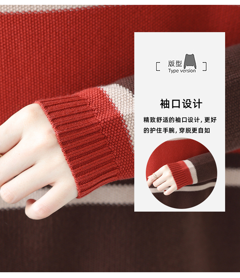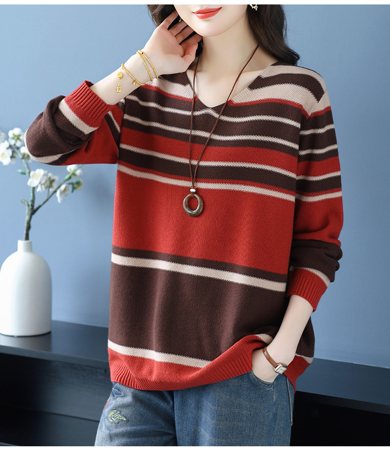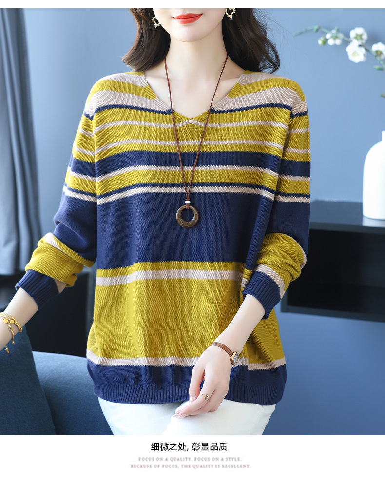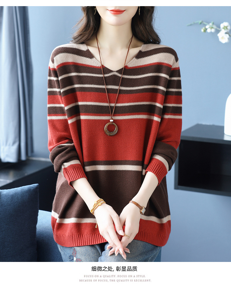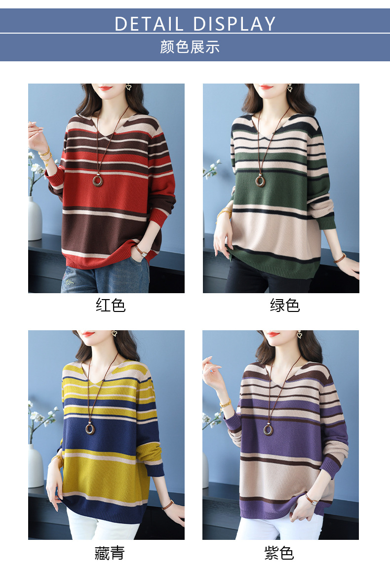 CC 37-3126大码洋气v领针织衫显瘦条纹长袖上衣