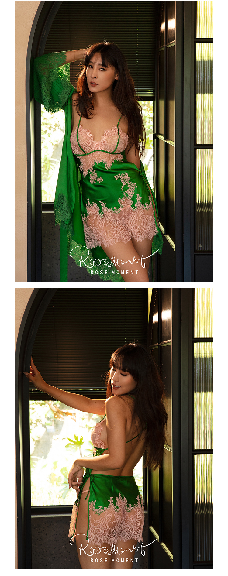 情人节礼盒丨性感蕾丝侧开叉露背真丝中裙 A241112