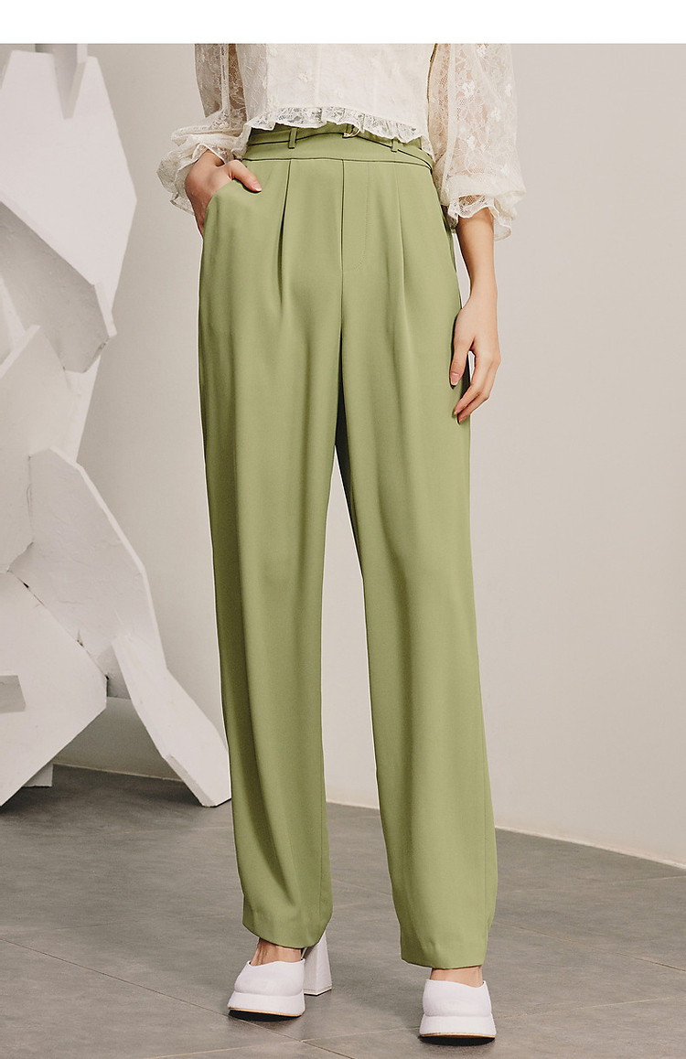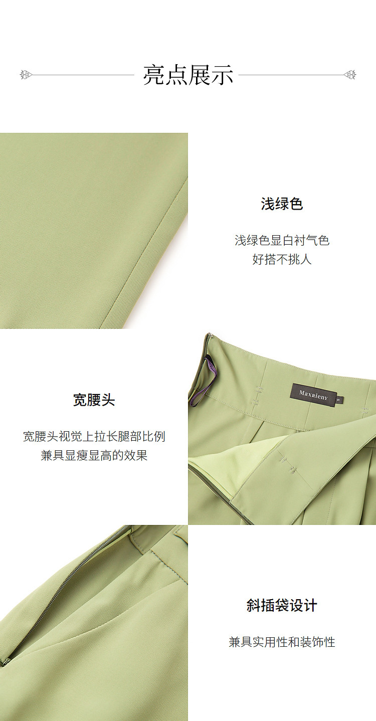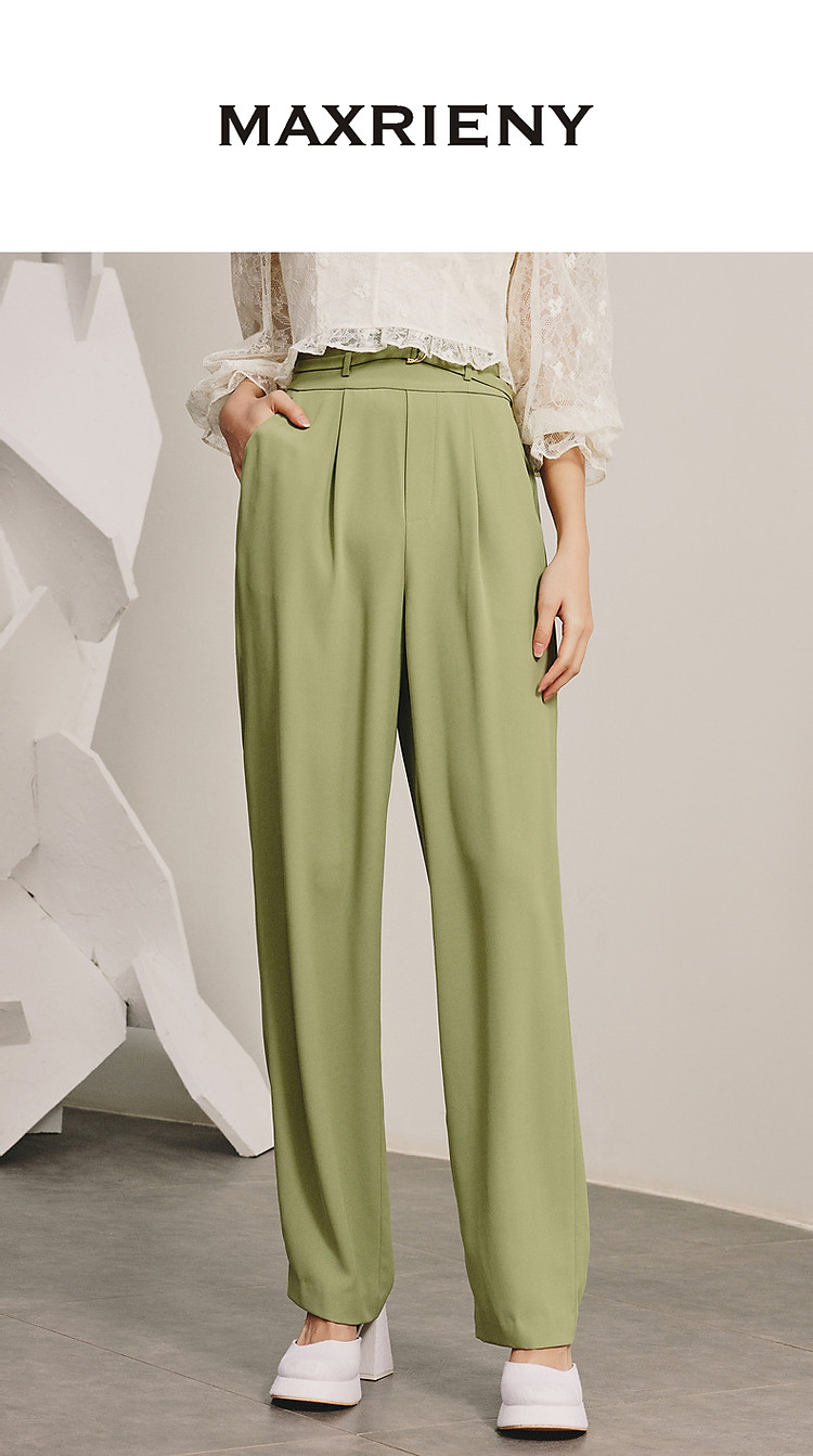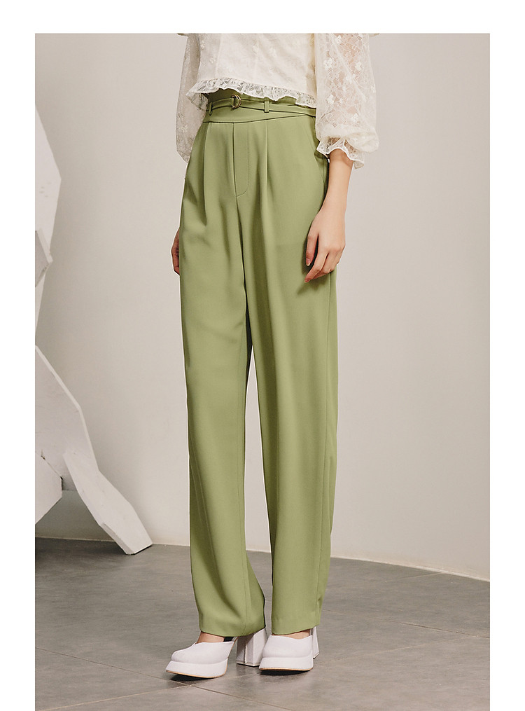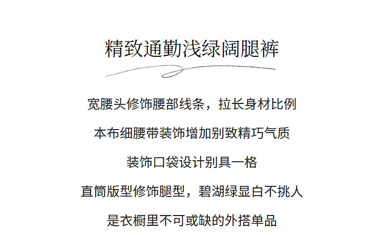 百搭通勤风阔腿裤西装裤碧湖绿宽腰直筒长裤MC88PA043G30