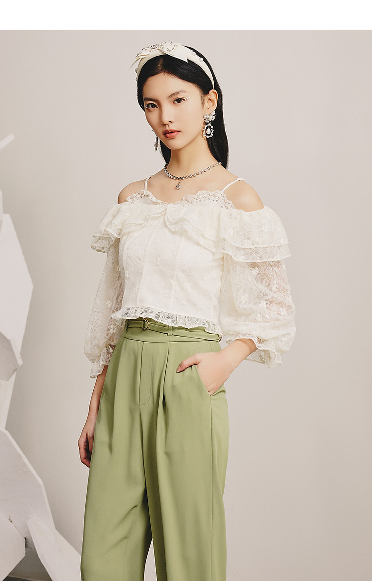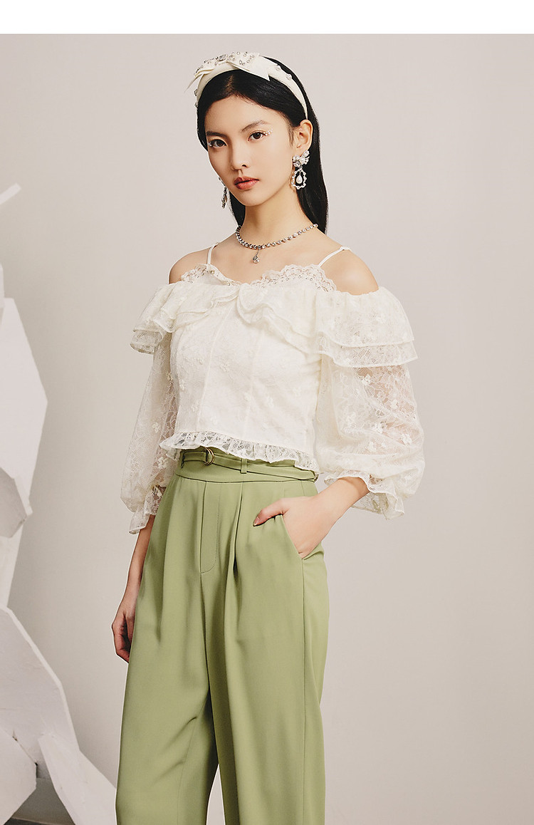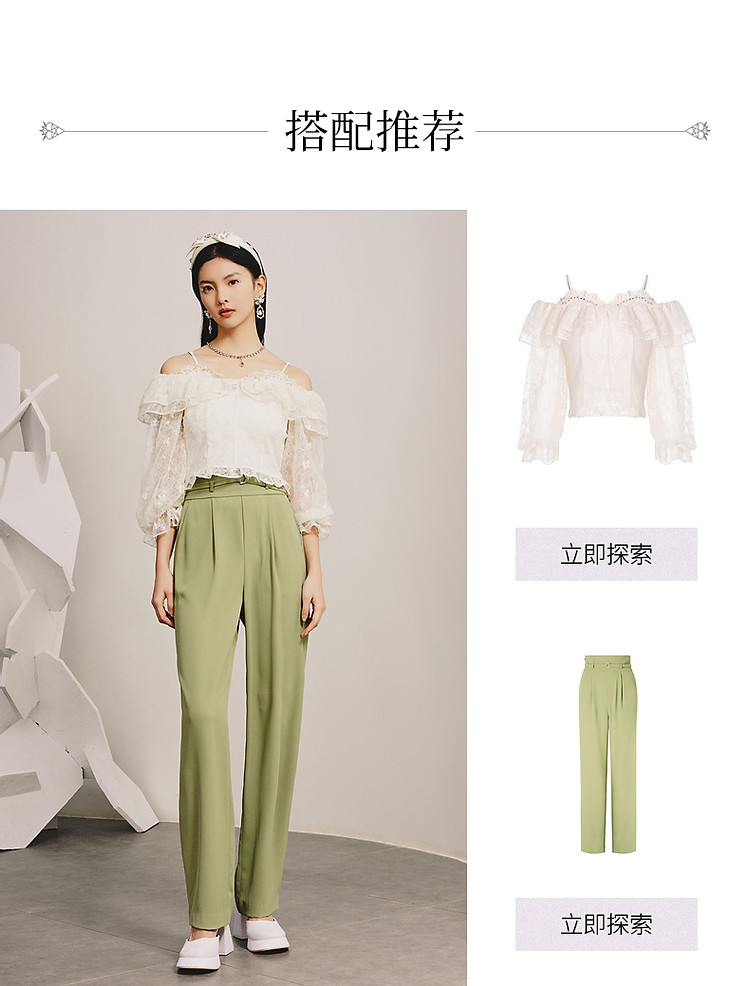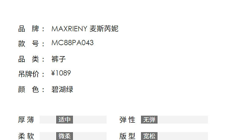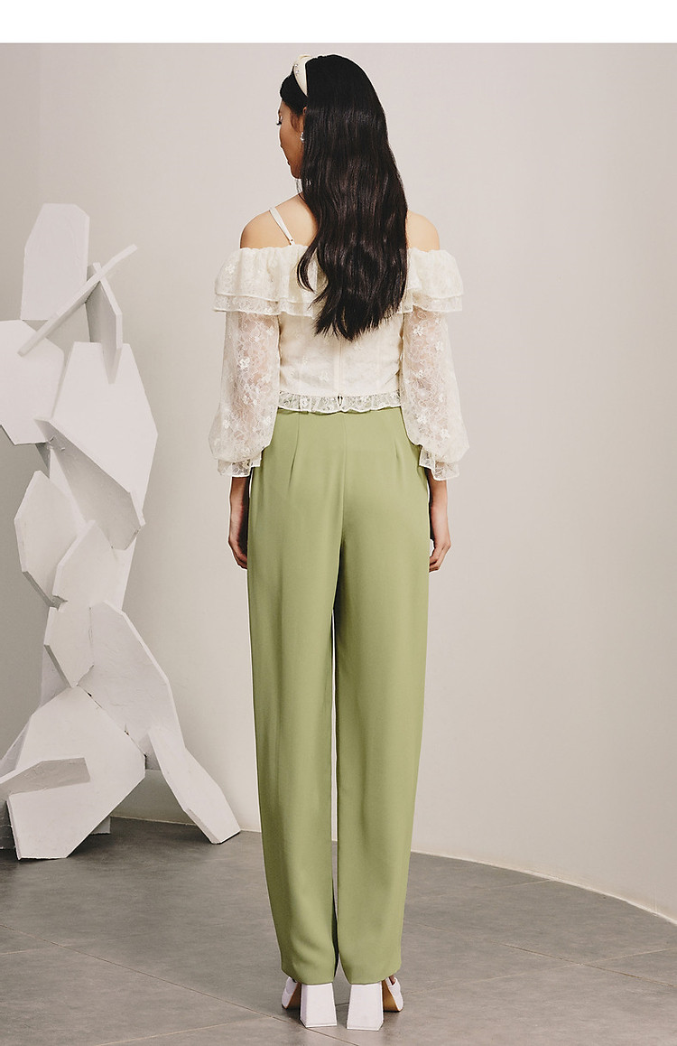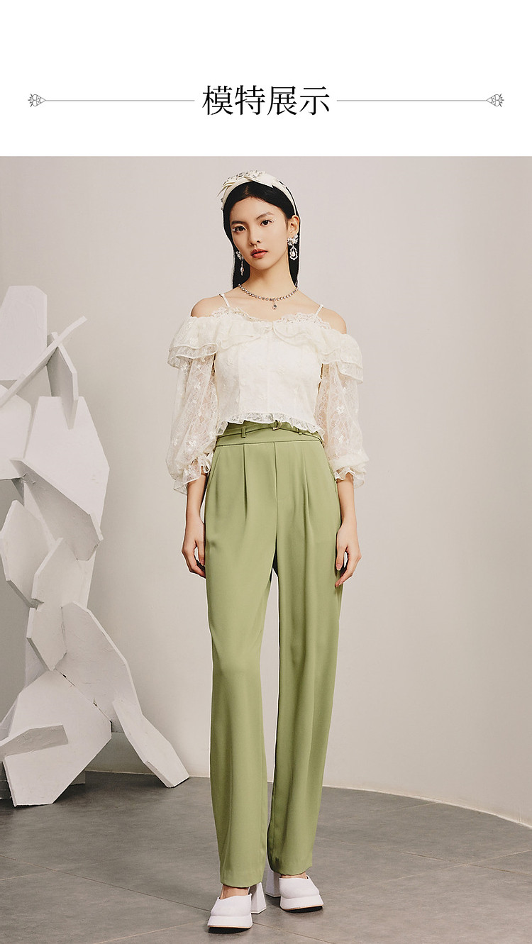 百搭通勤风阔腿裤西装裤碧湖绿宽腰直筒长裤MC88PA043G30