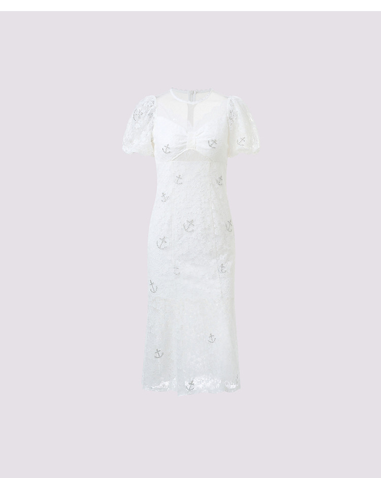 MAXRIENY新中式镂空设计感小白裙国风连衣裙女