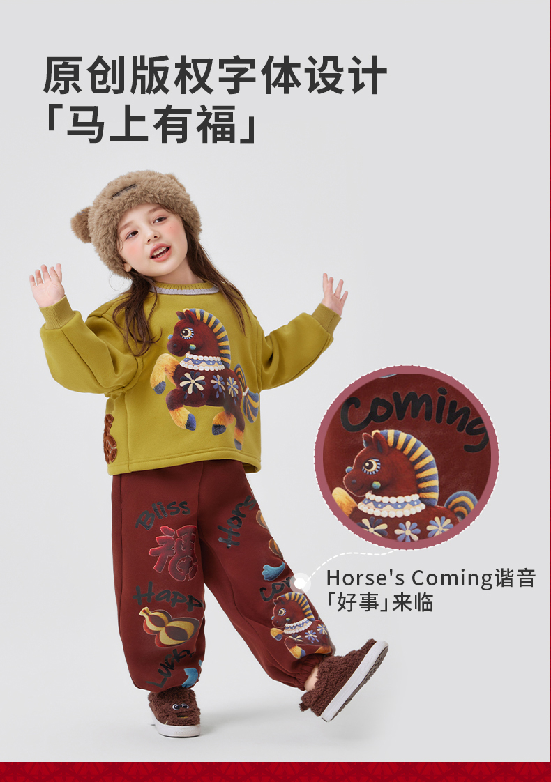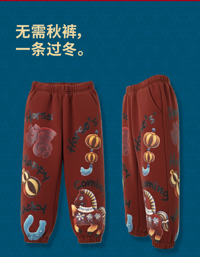 年衣童装儿童裤子冬新款男女童加绒长裤国风运动裤休闲马上有福长裤