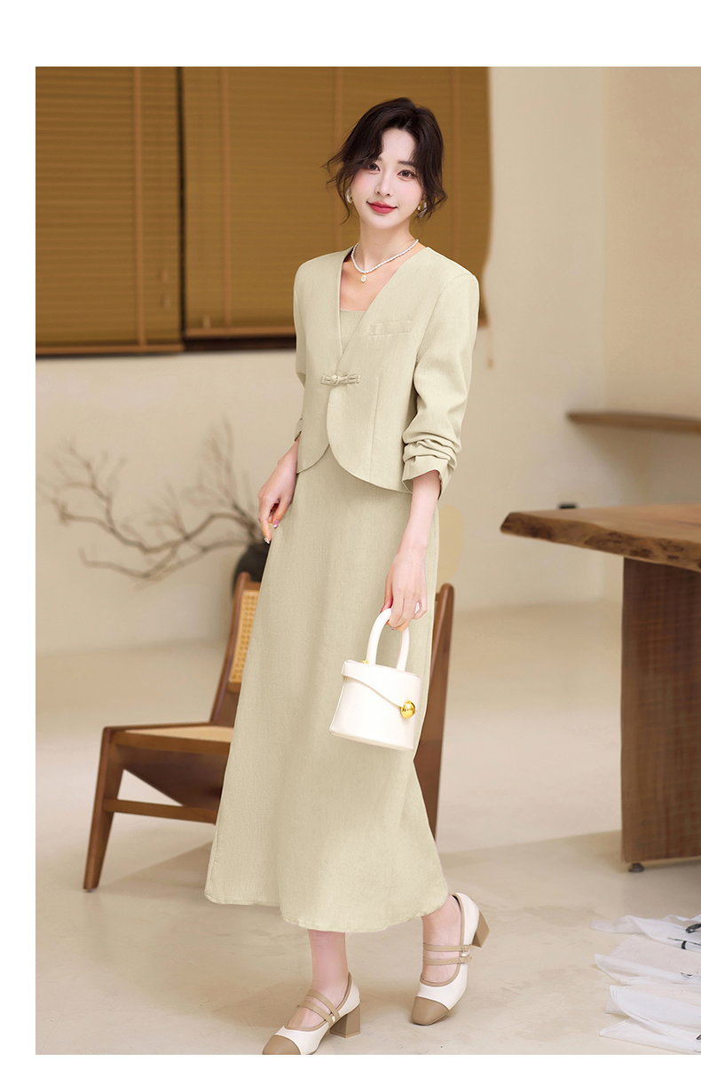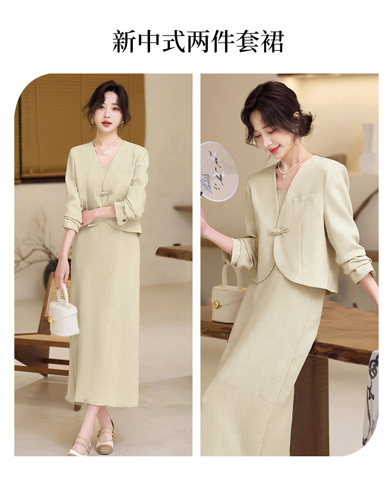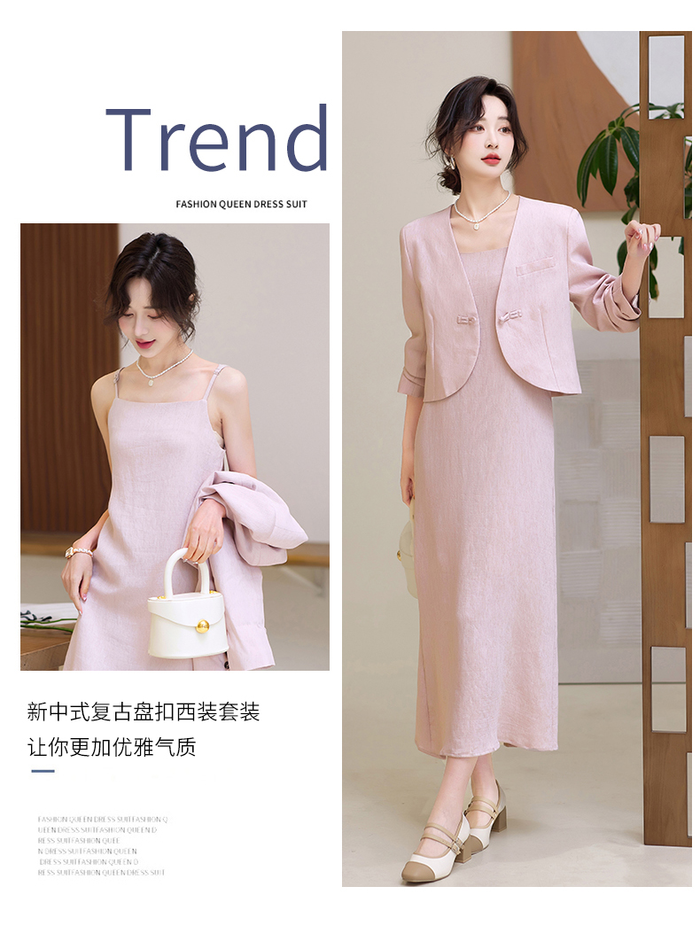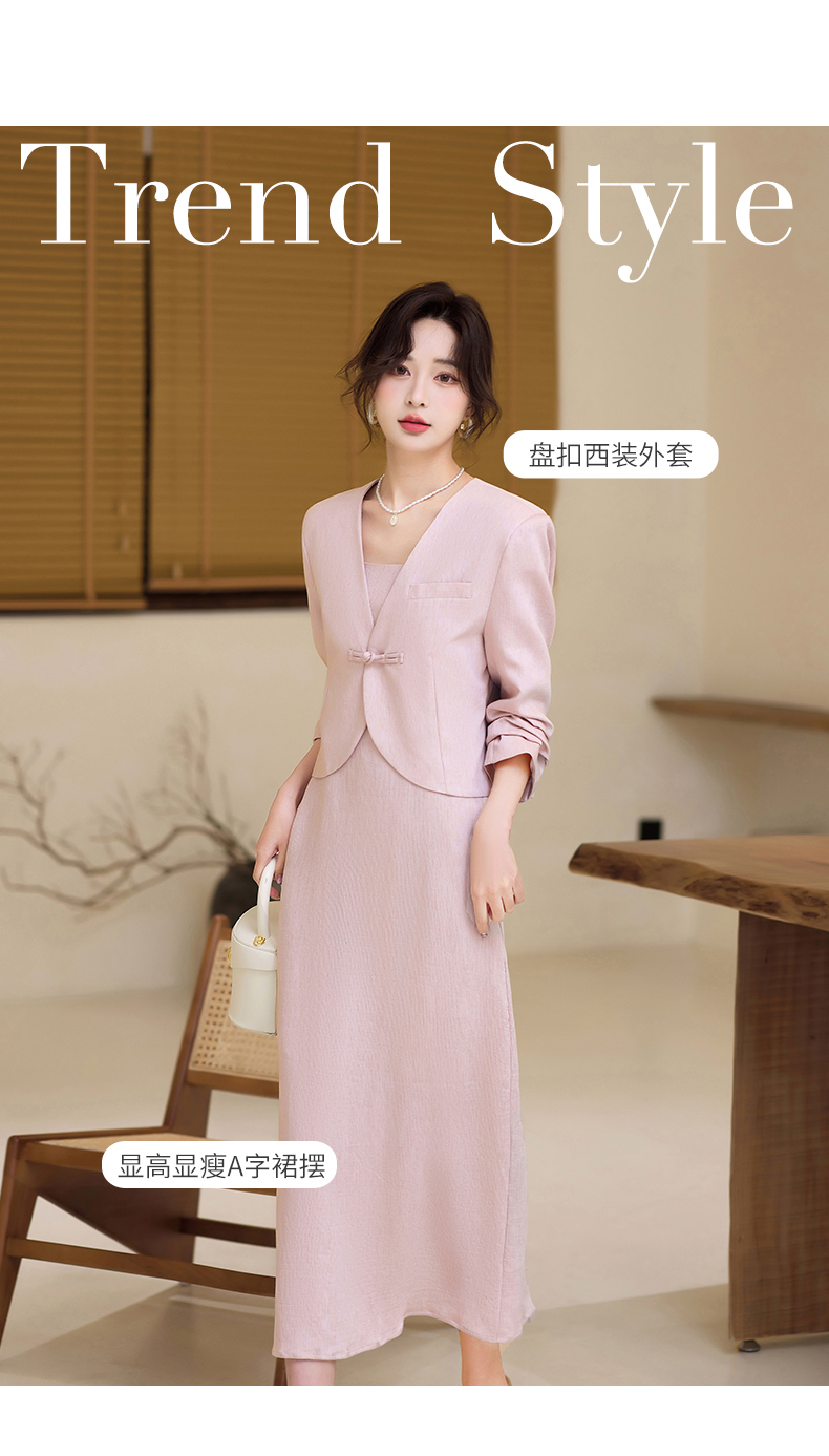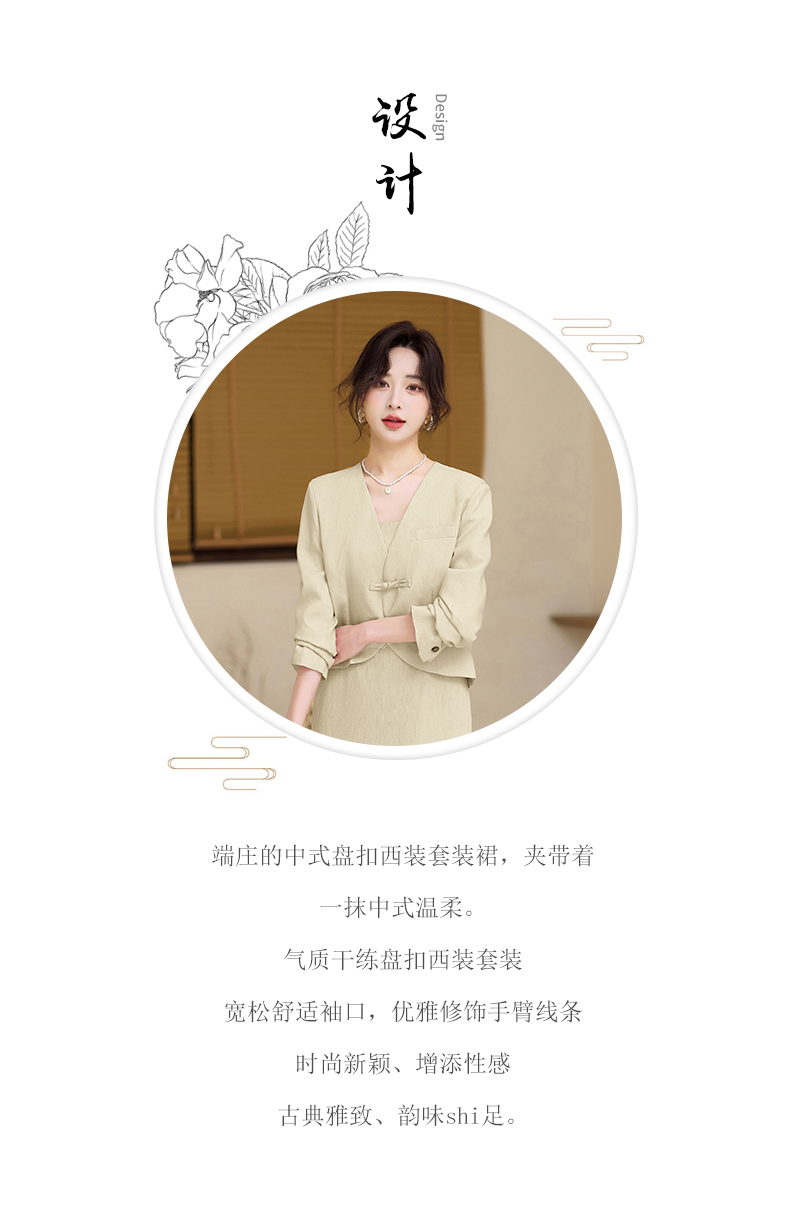 复古新中式,盘扣西装外套吊带裙两件套HR-MJ1001