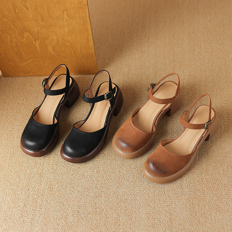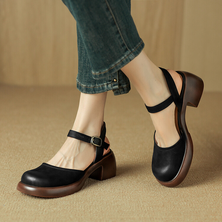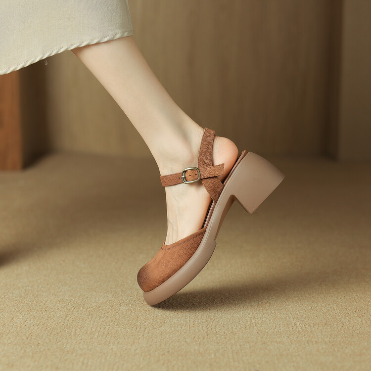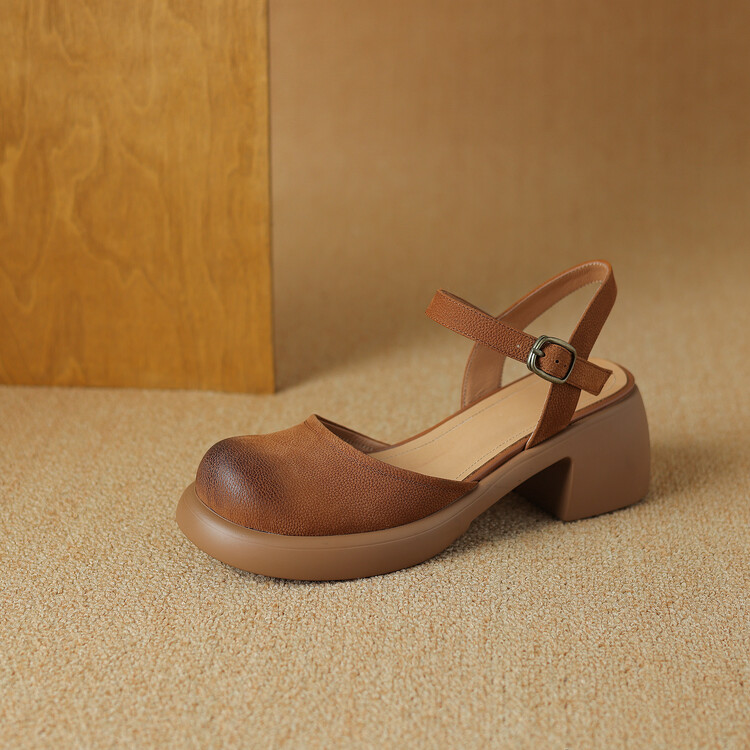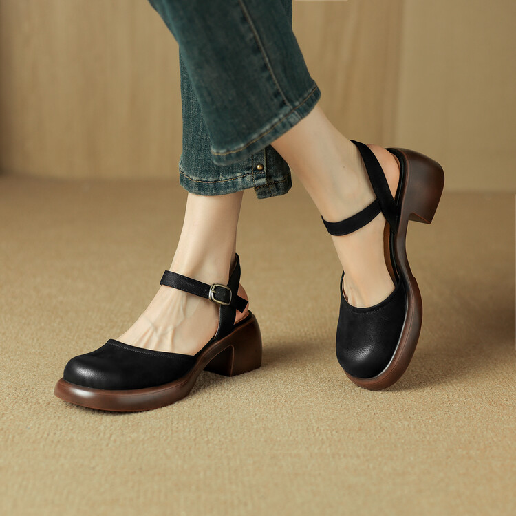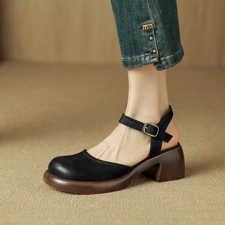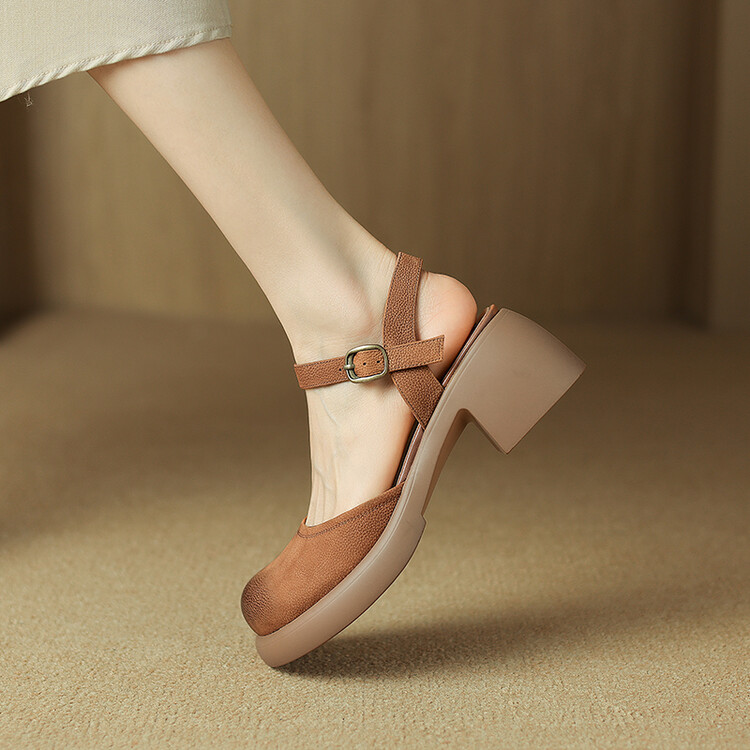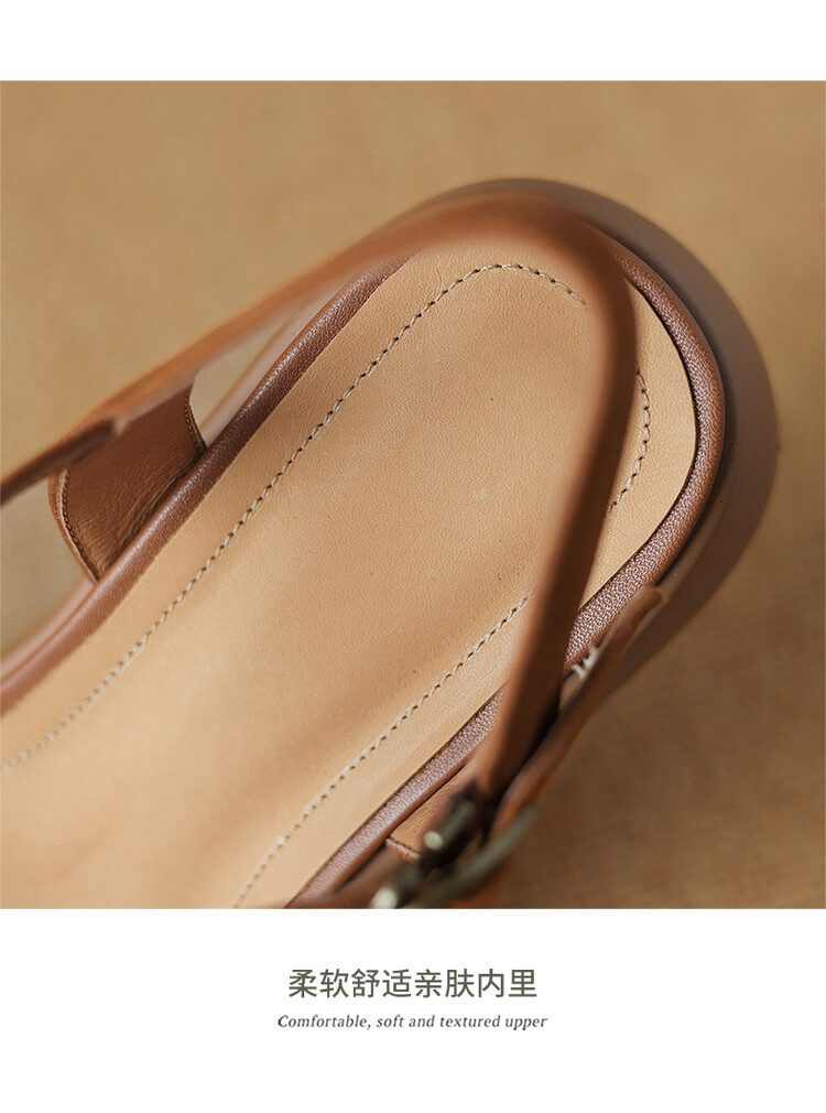 【预售5天】复古学院风轻熟简约,粗跟包头百搭休闲扣带凉鞋GP&2897