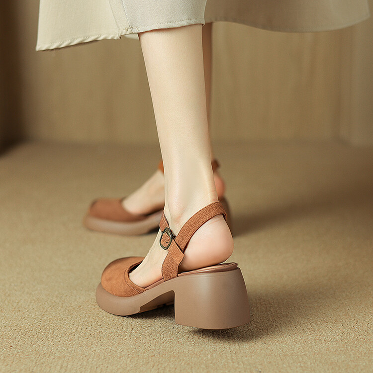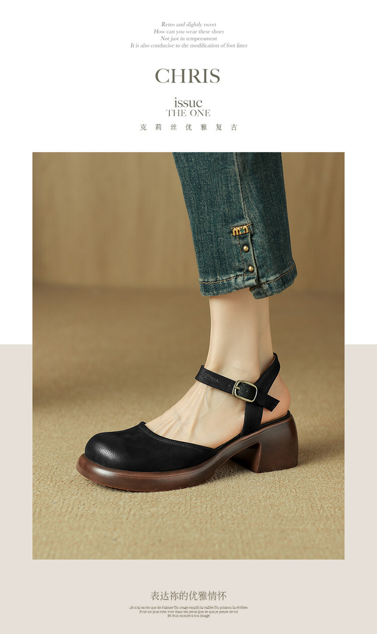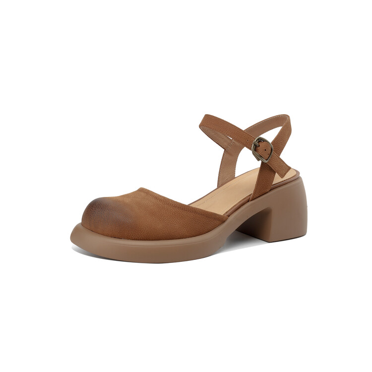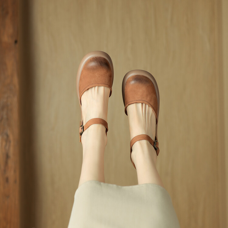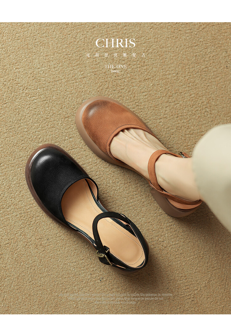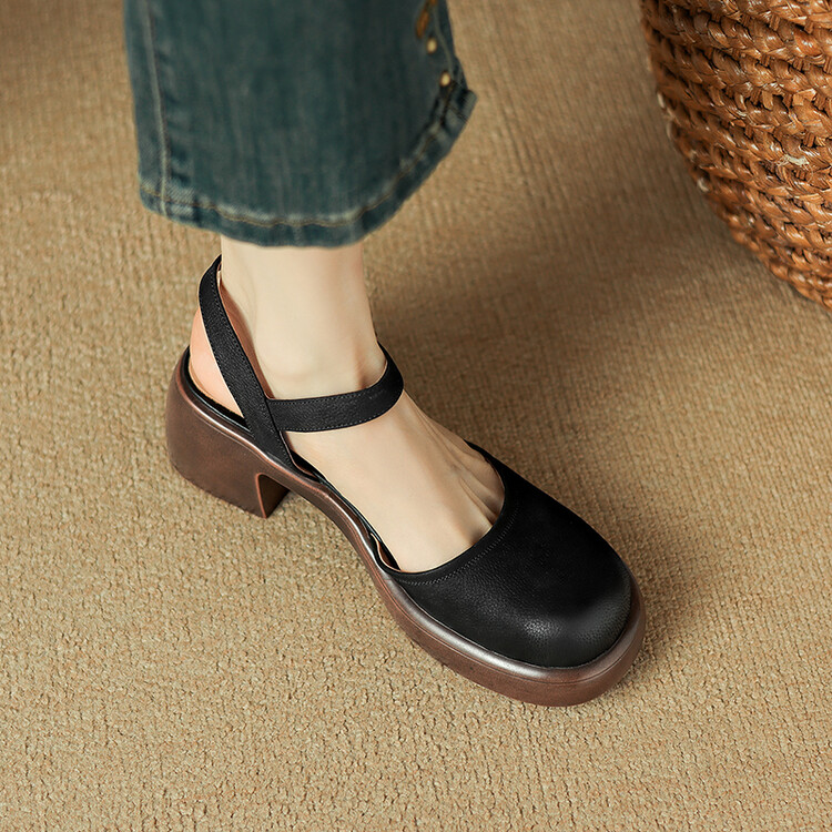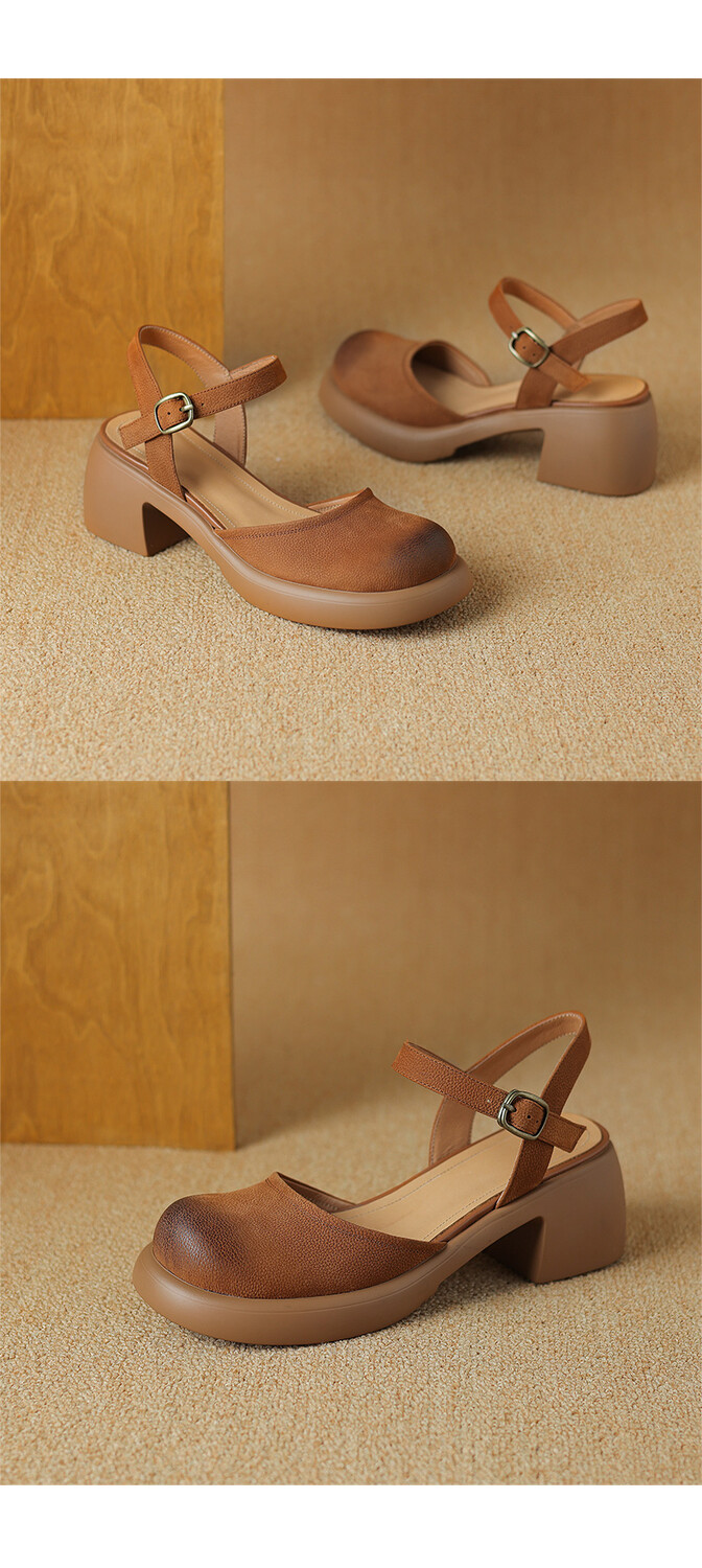 【预售5天】复古学院风轻熟简约,粗跟包头百搭休闲扣带凉鞋GP&2897