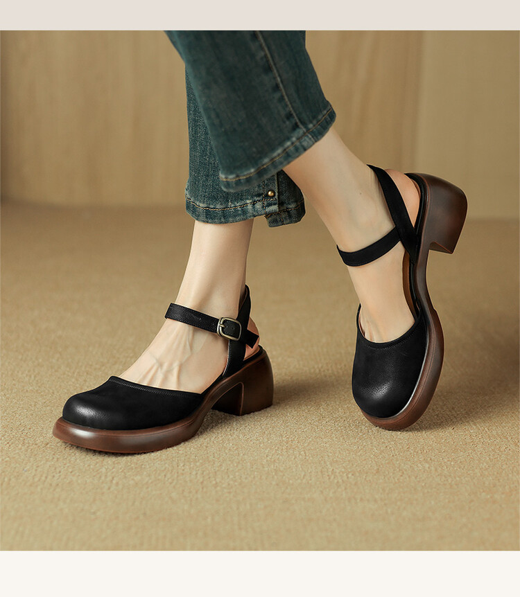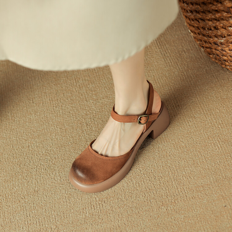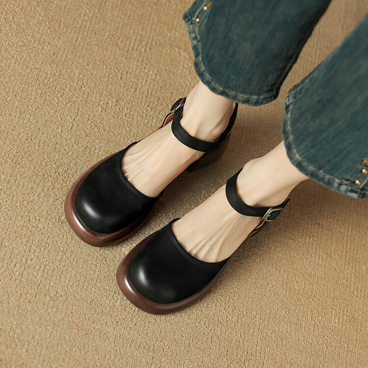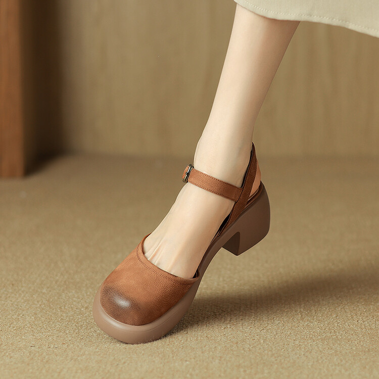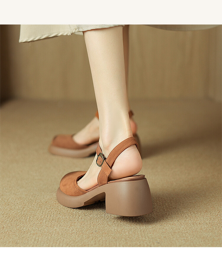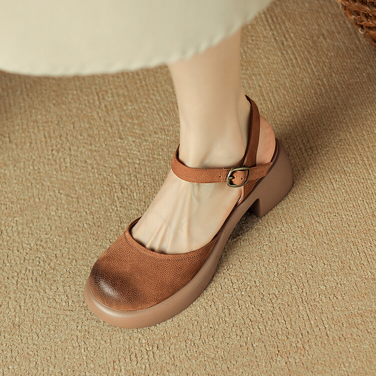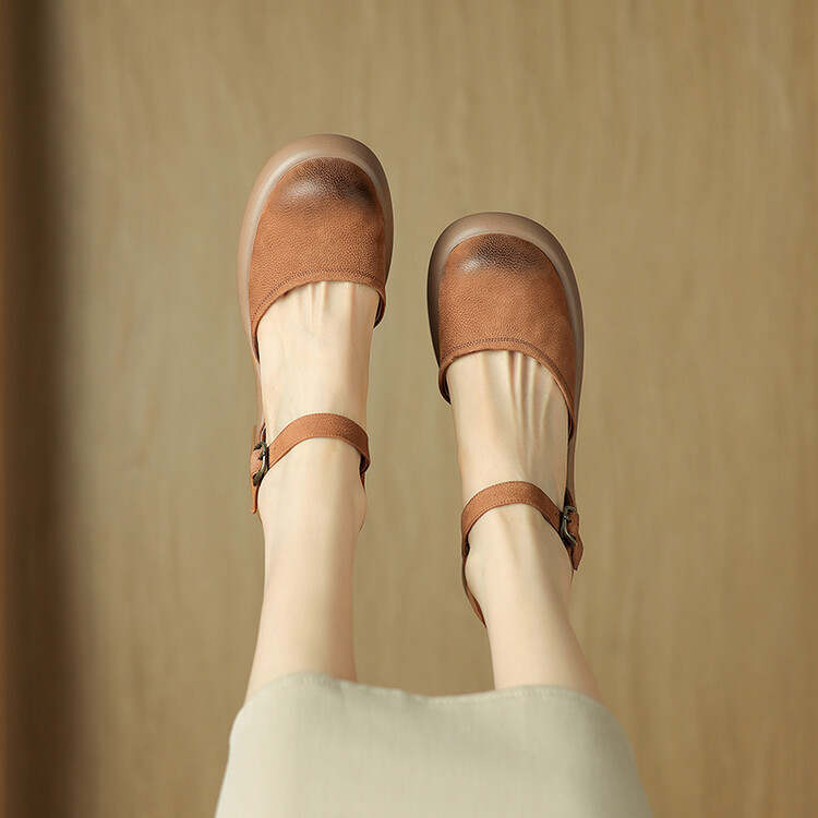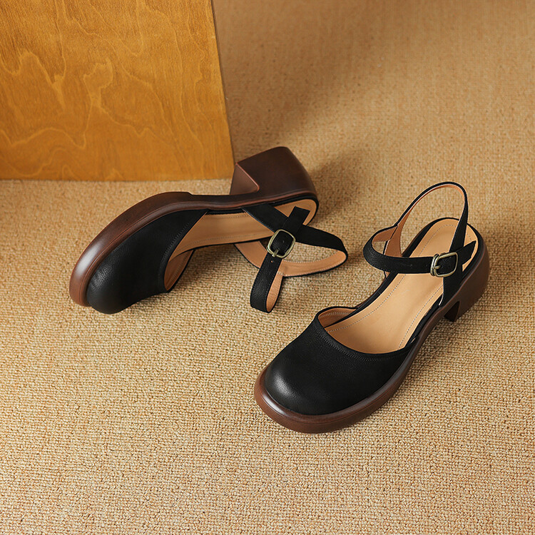 【预售5天】复古学院风轻熟简约,粗跟包头百搭休闲扣带凉鞋GP&2897