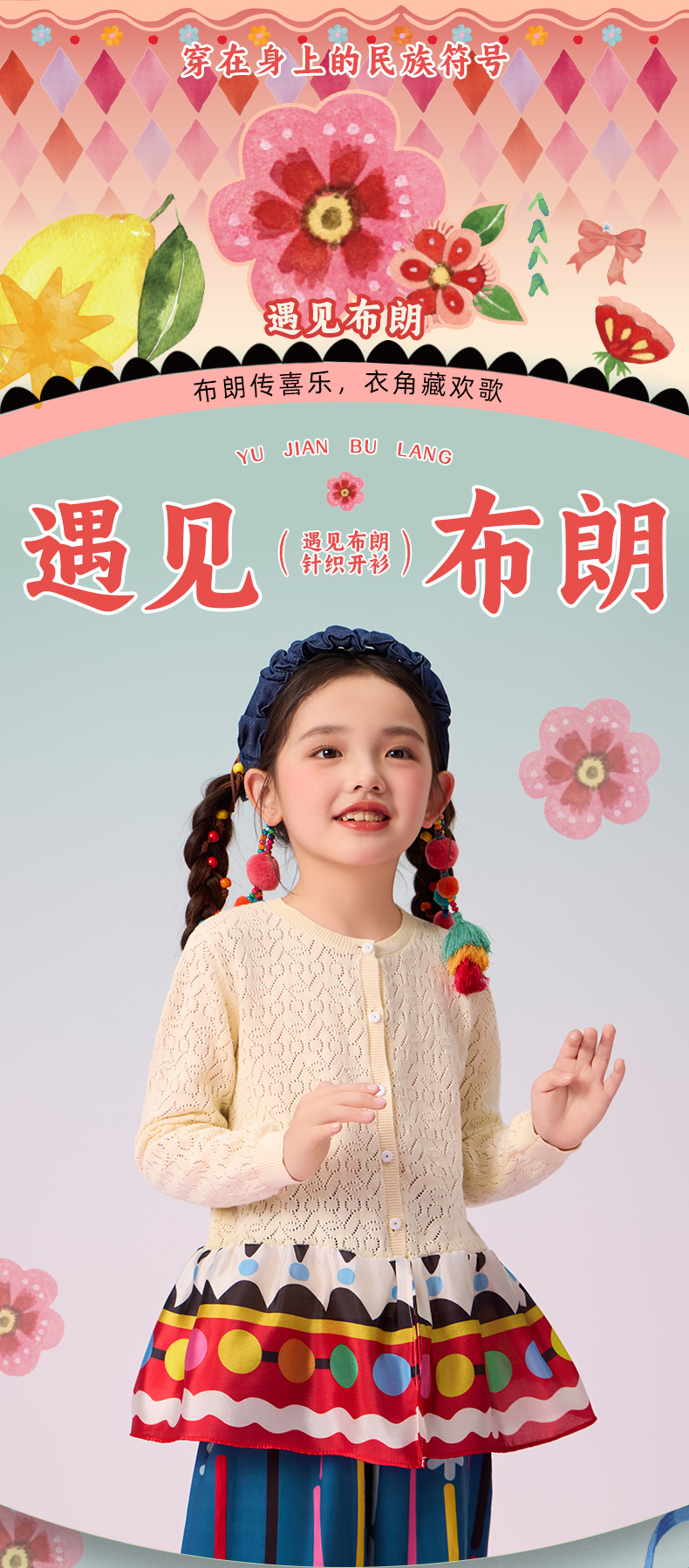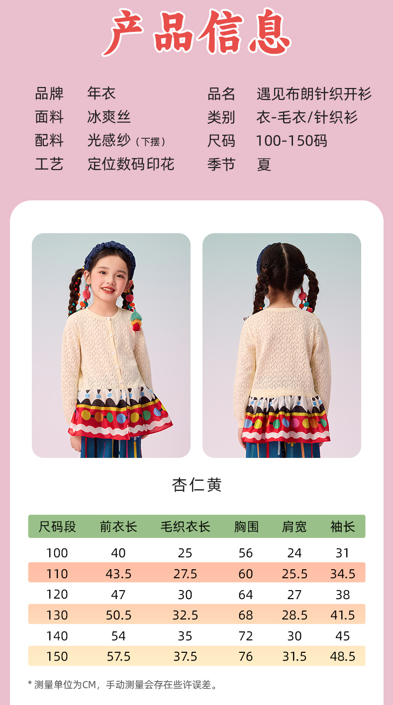 【年衣】童装女童针织衫2025新款夏季儿童民族风毛衣遇见布朗针织开衫