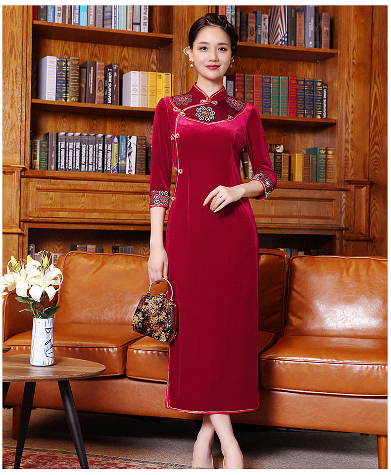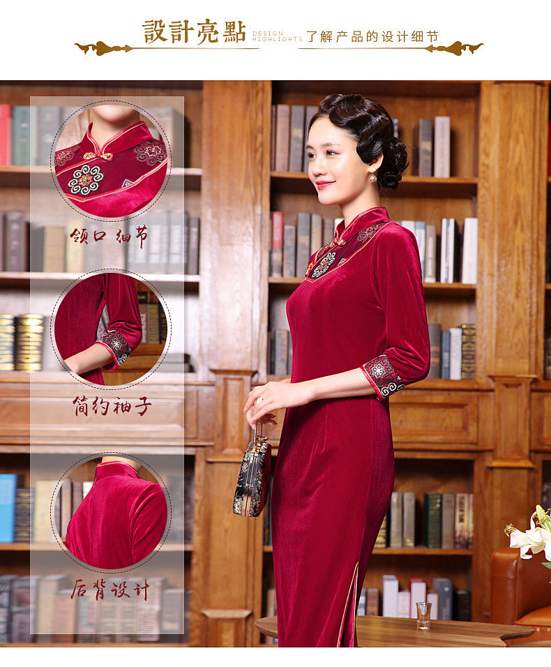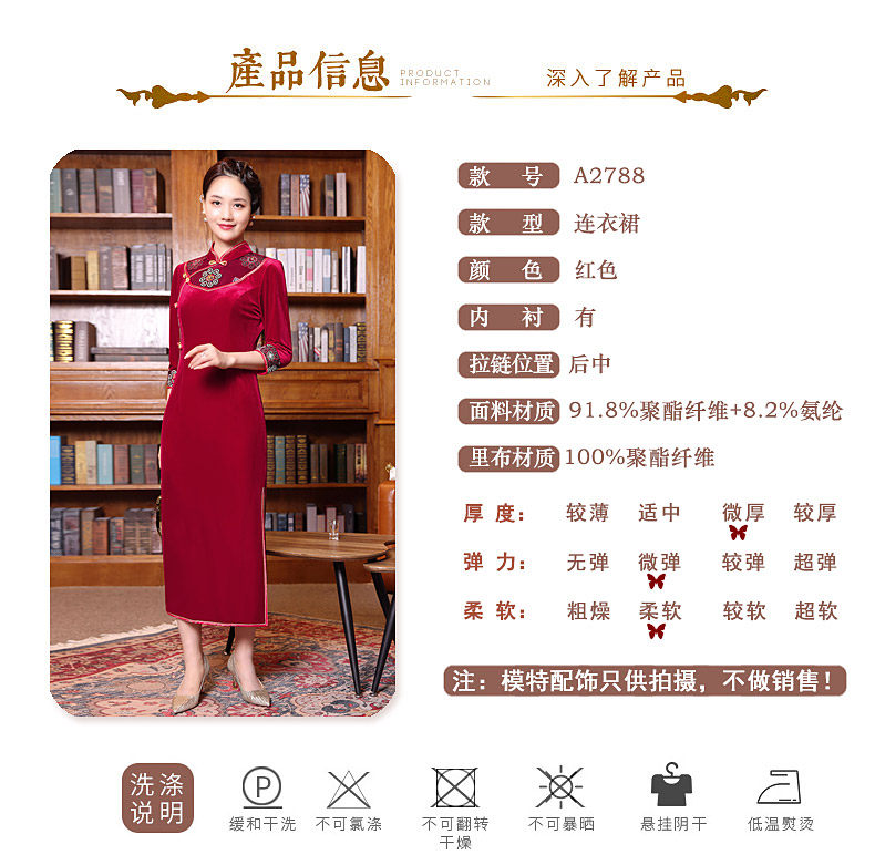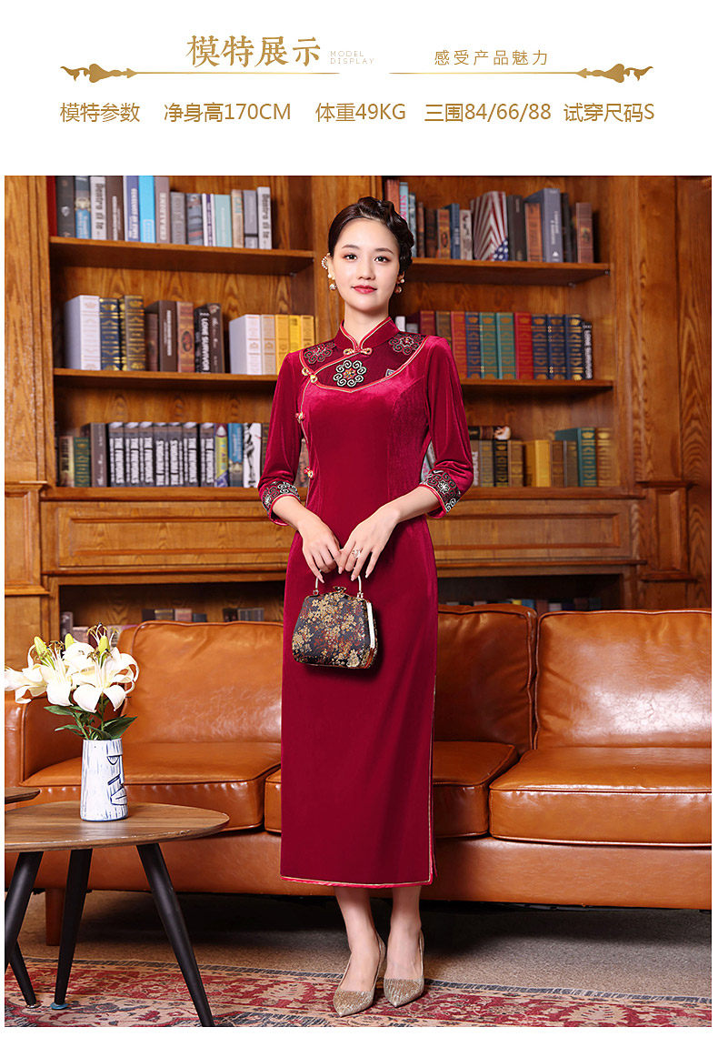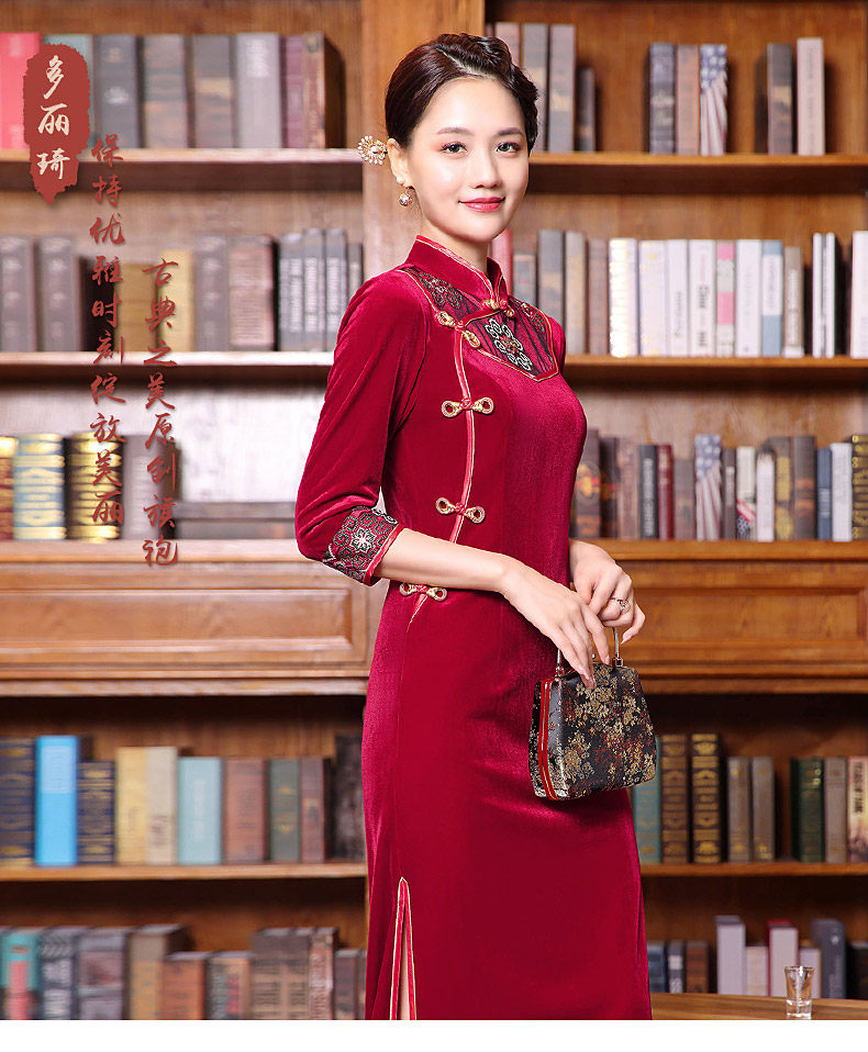 DLQ-A2788复古中国风改良旗袍秋冬丝绒款中年女妈妈装婚宴喜婆婆礼服